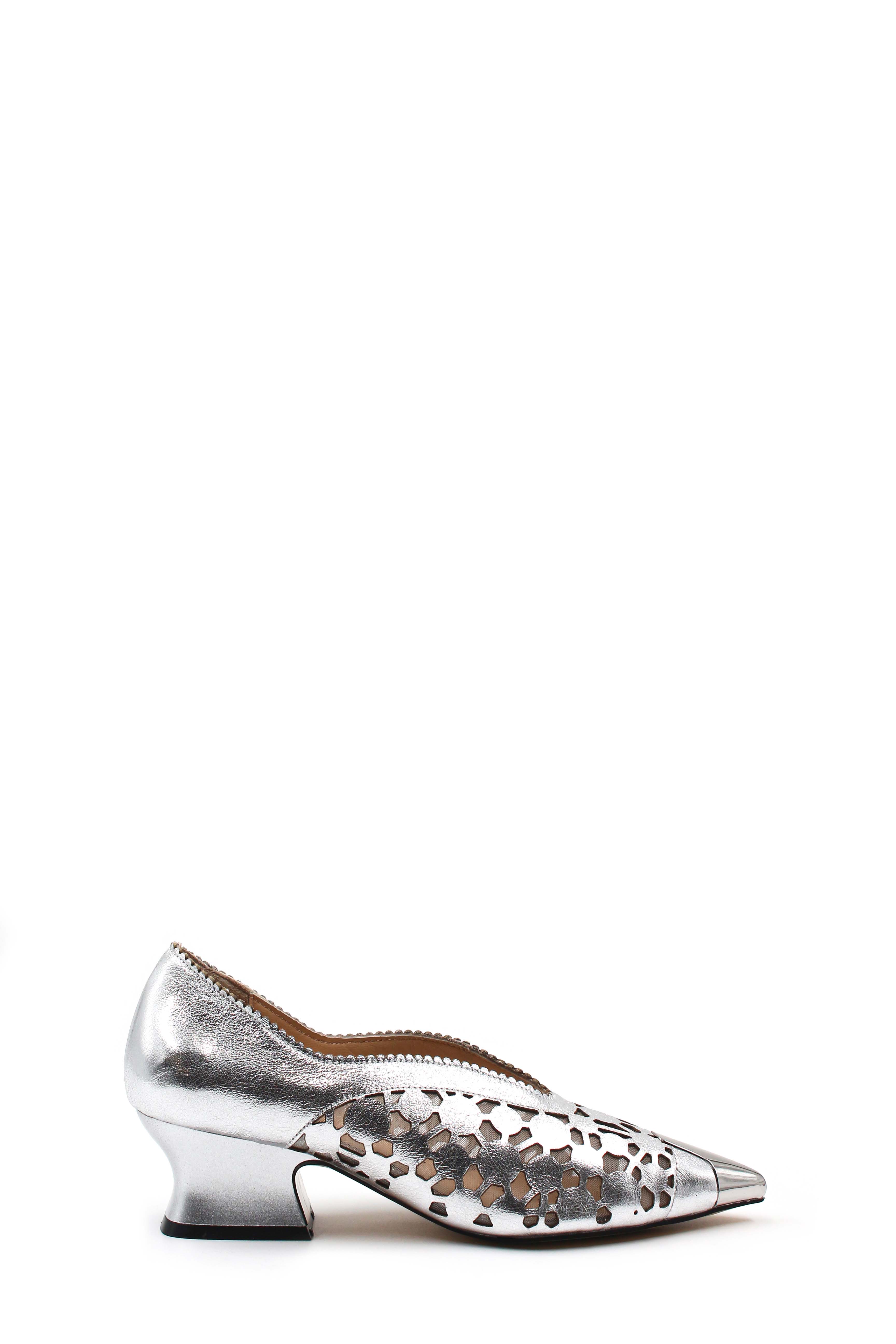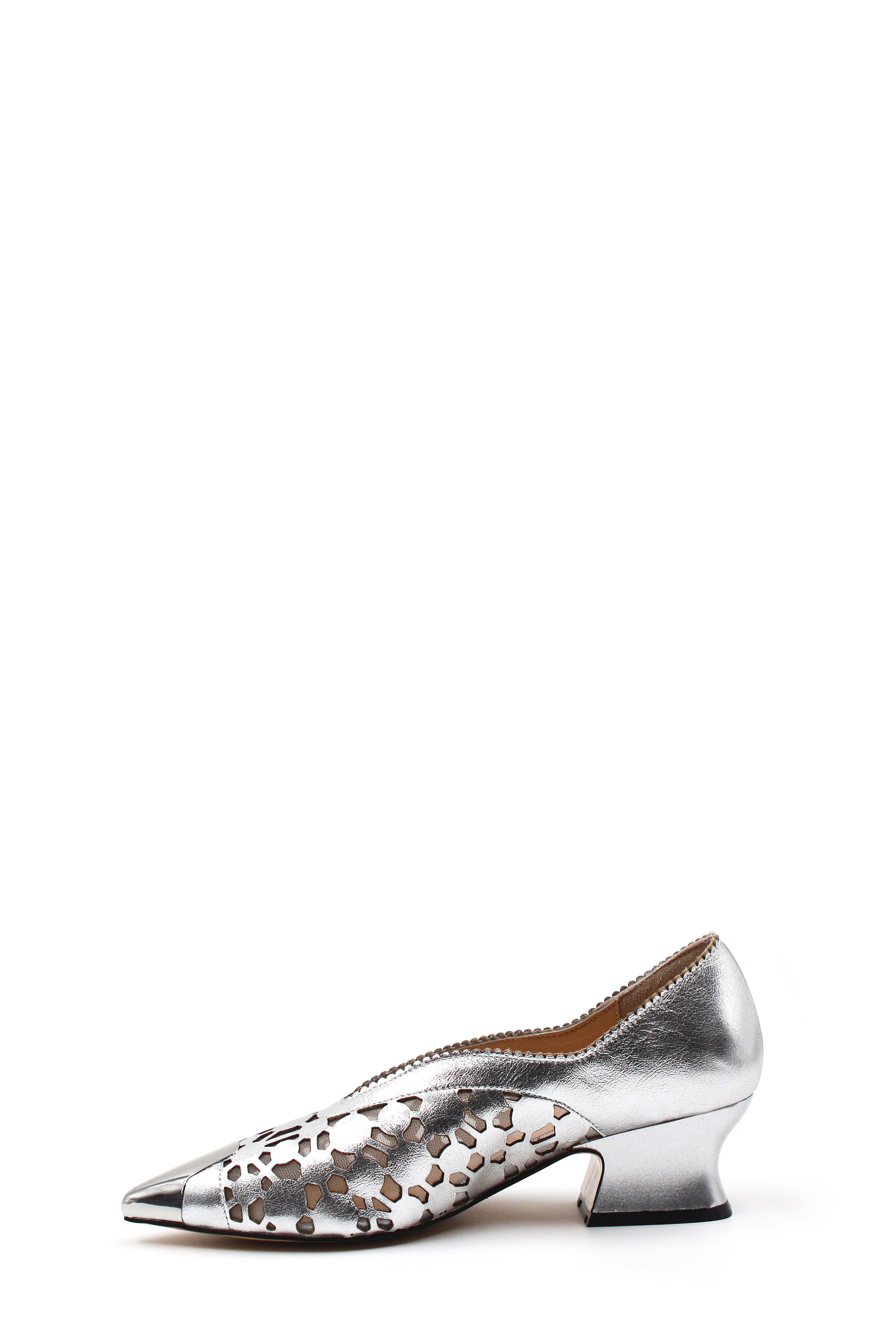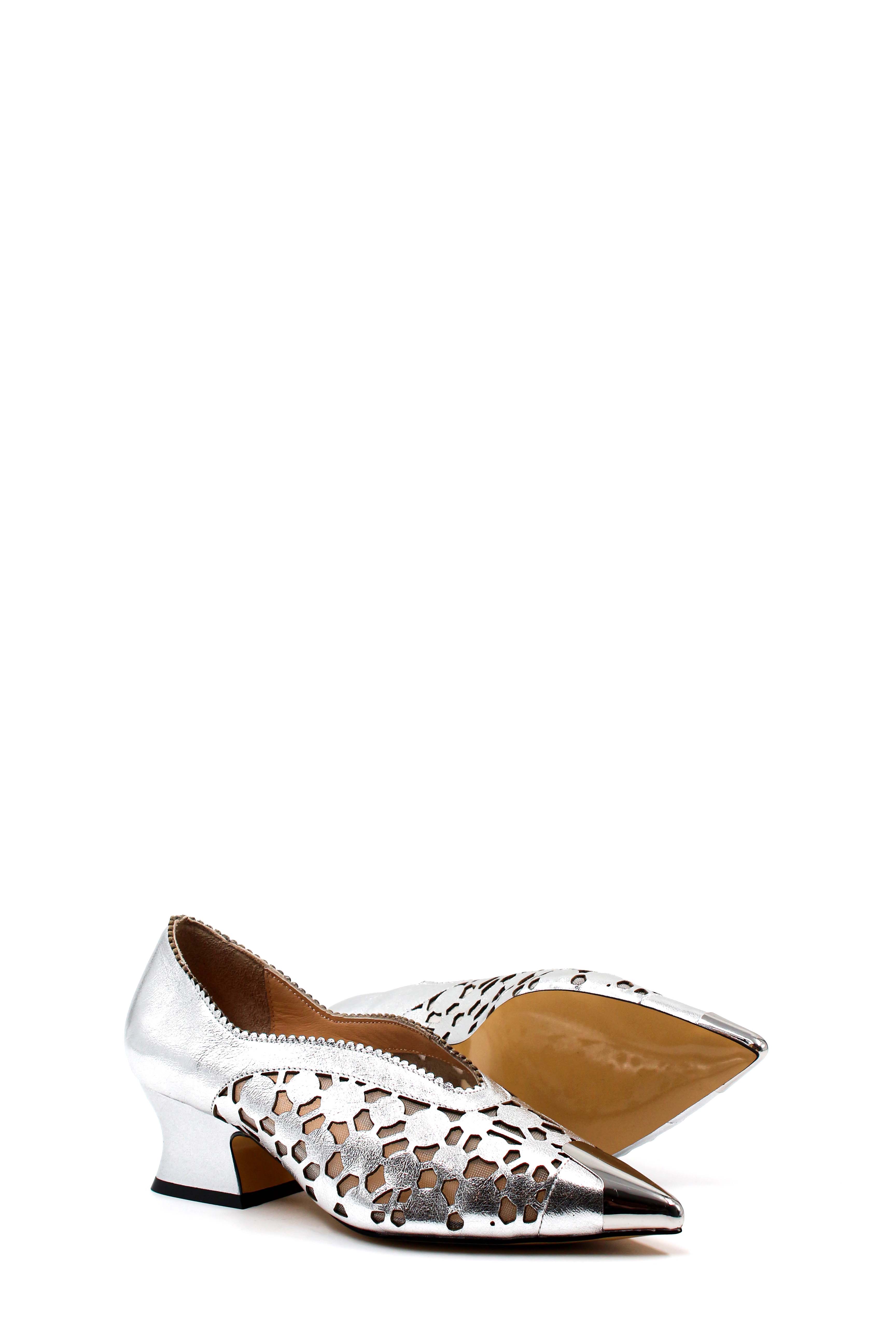 MirgeShoes Gümüş Kadın Kalın Topuklu Ayakkabı İçi Dışı Hakiki Deri MRG01194261583