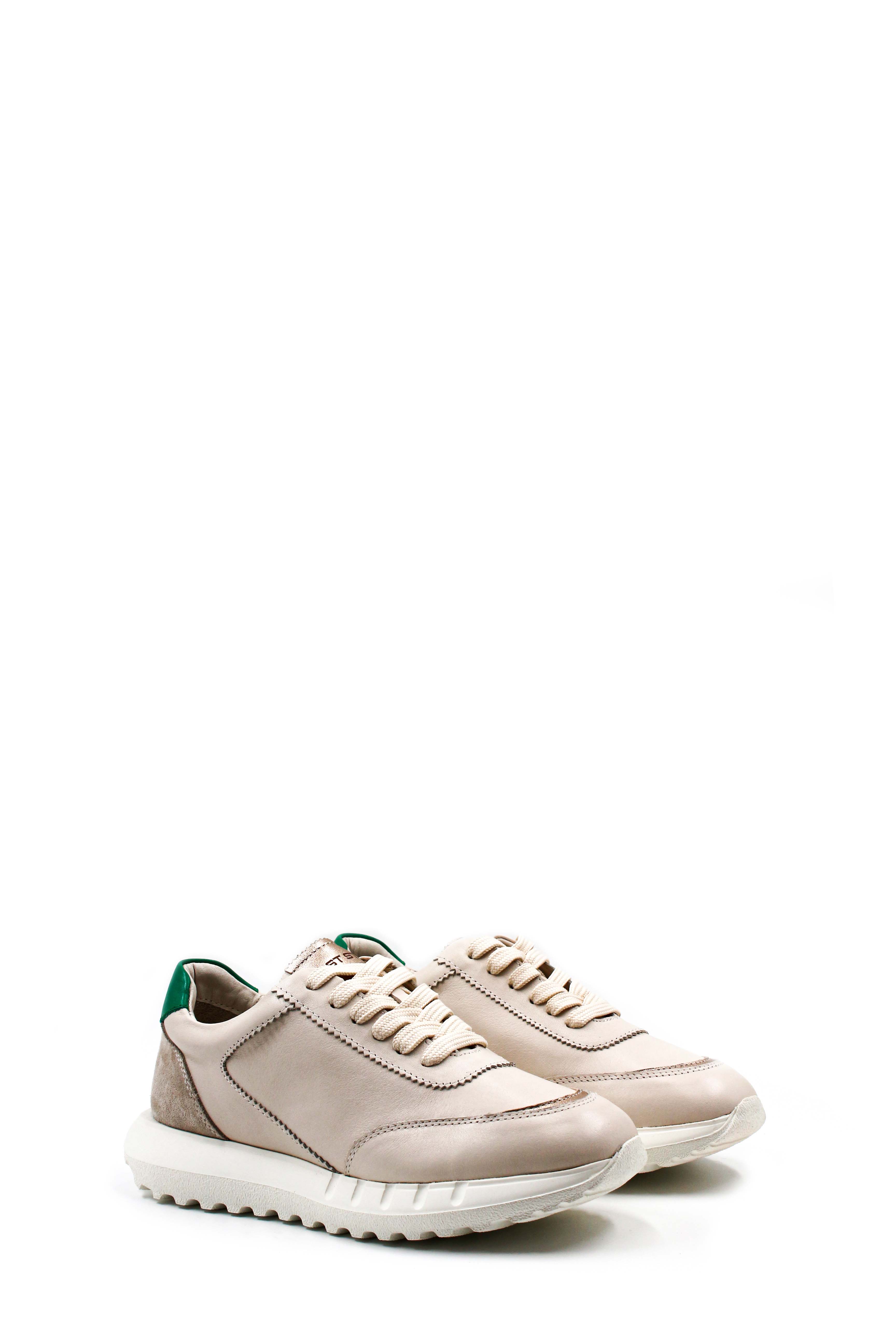 MirgeShoes Bej Bağcıklı Kadın Spor Ayakkabı İçi Dışı Hakiki Deri MRG011392610848