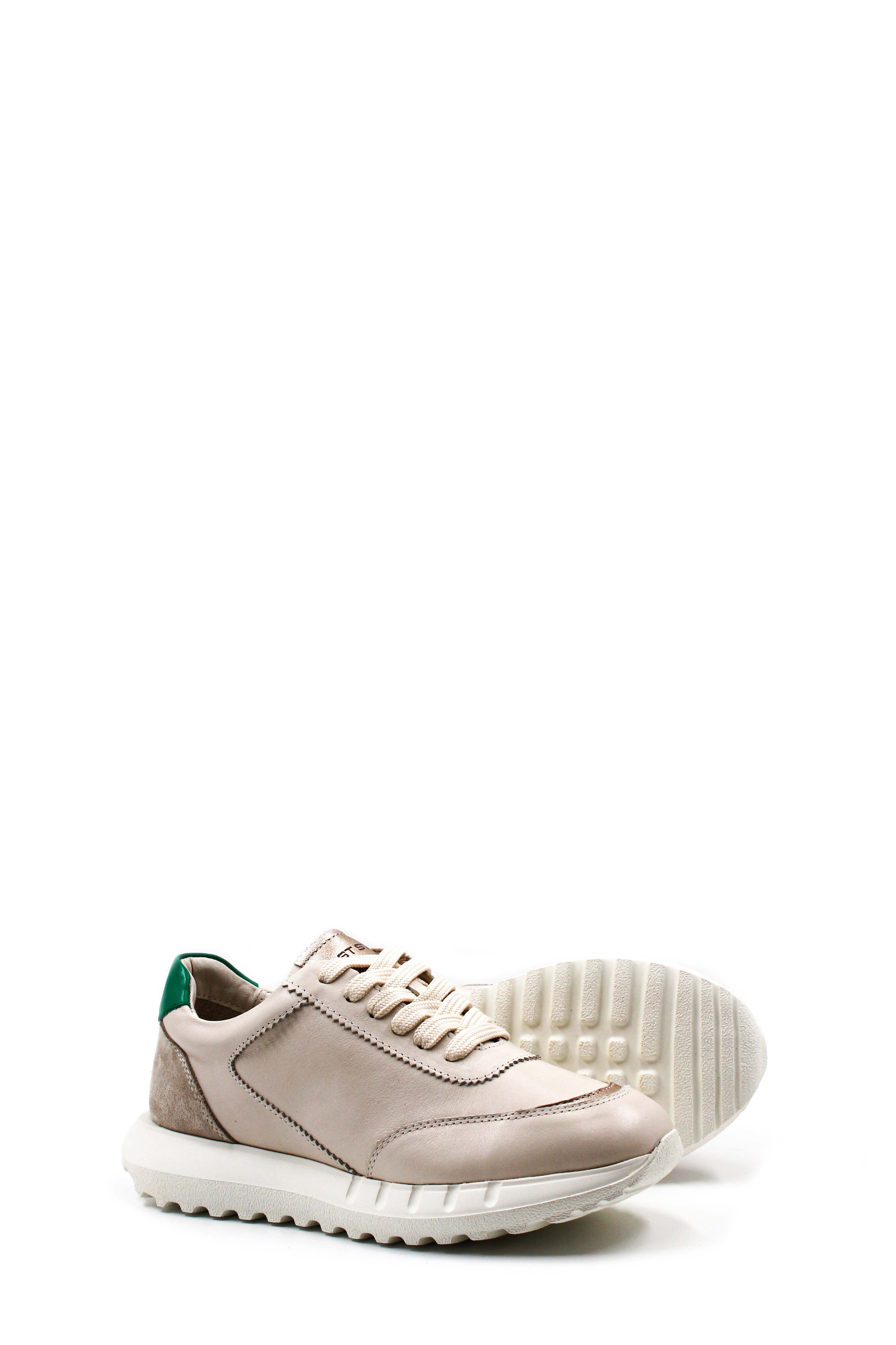 • MirgeShoes Bej Bağcıklı Kadın Spor Ayakkabı İçi Dışı Hakiki Deri MRG011392610848