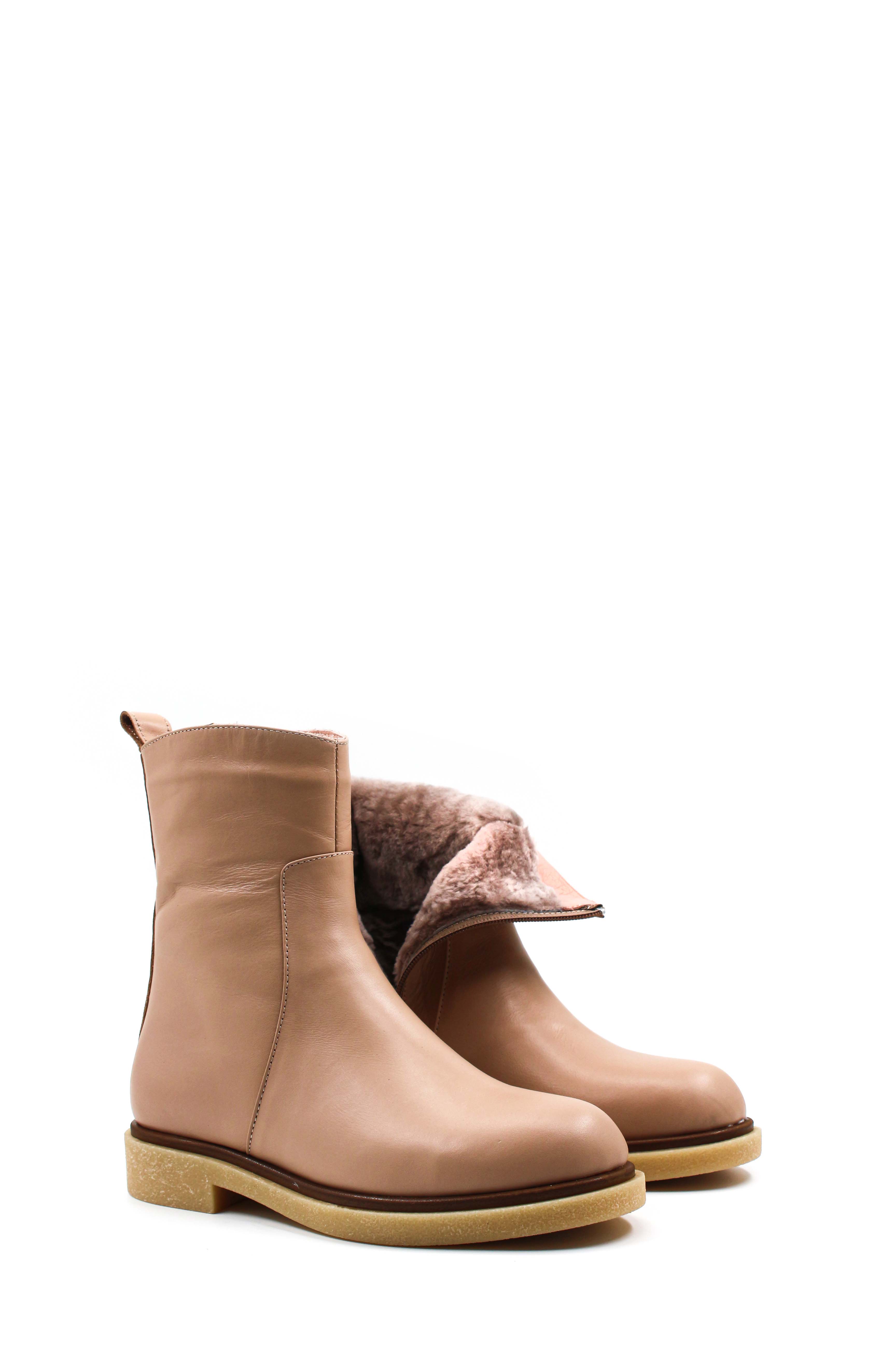 MirgeShoes Nohut Fermuarlı Kadın Klasik Bot İçi Kürklü Dışı Hakiki Deri MRG0199611261538
