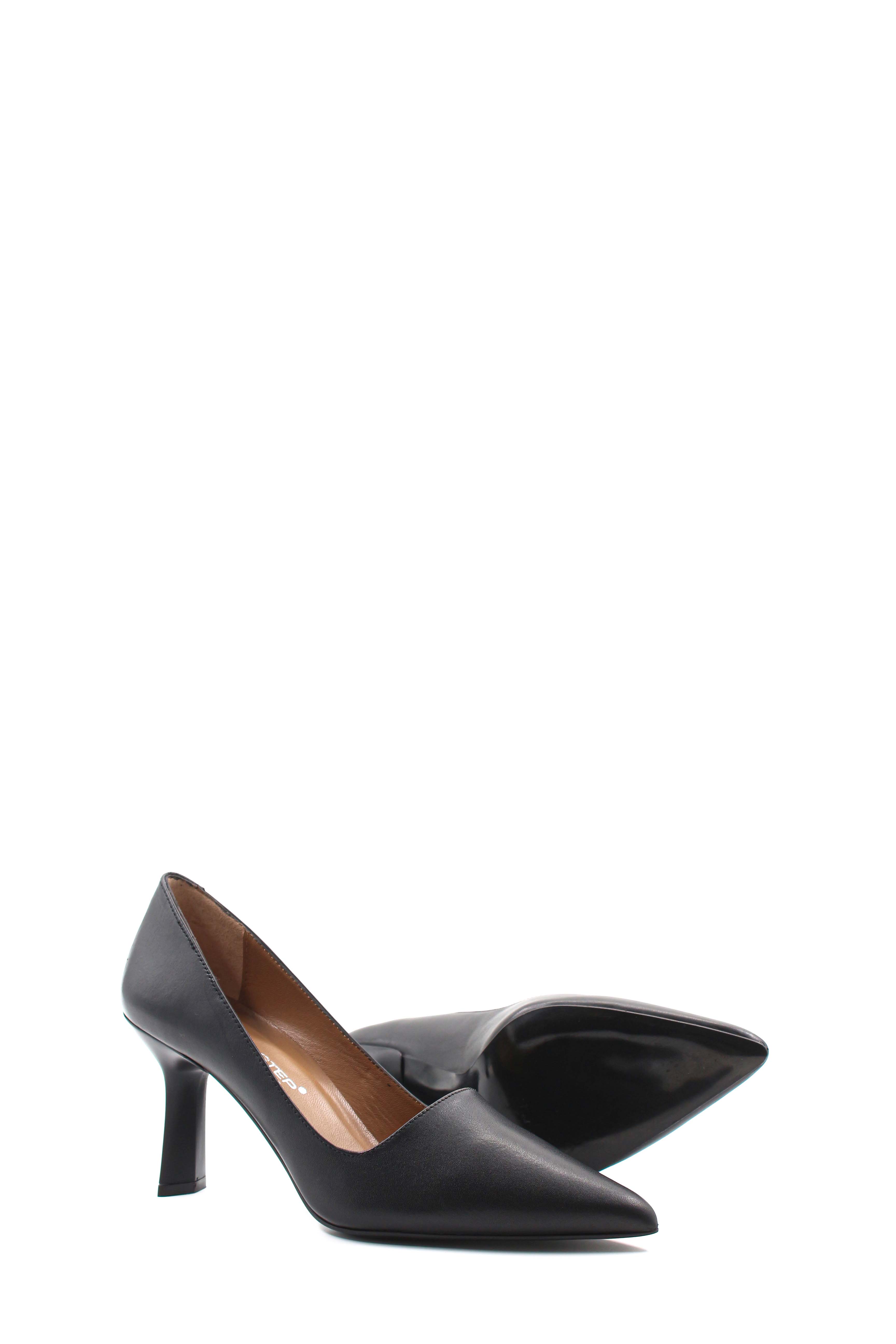 MirgeShoes Siyah Kadın İnce Topuk Ayakkabı İçi Dışı Hakiki Deri MRG0114926121855