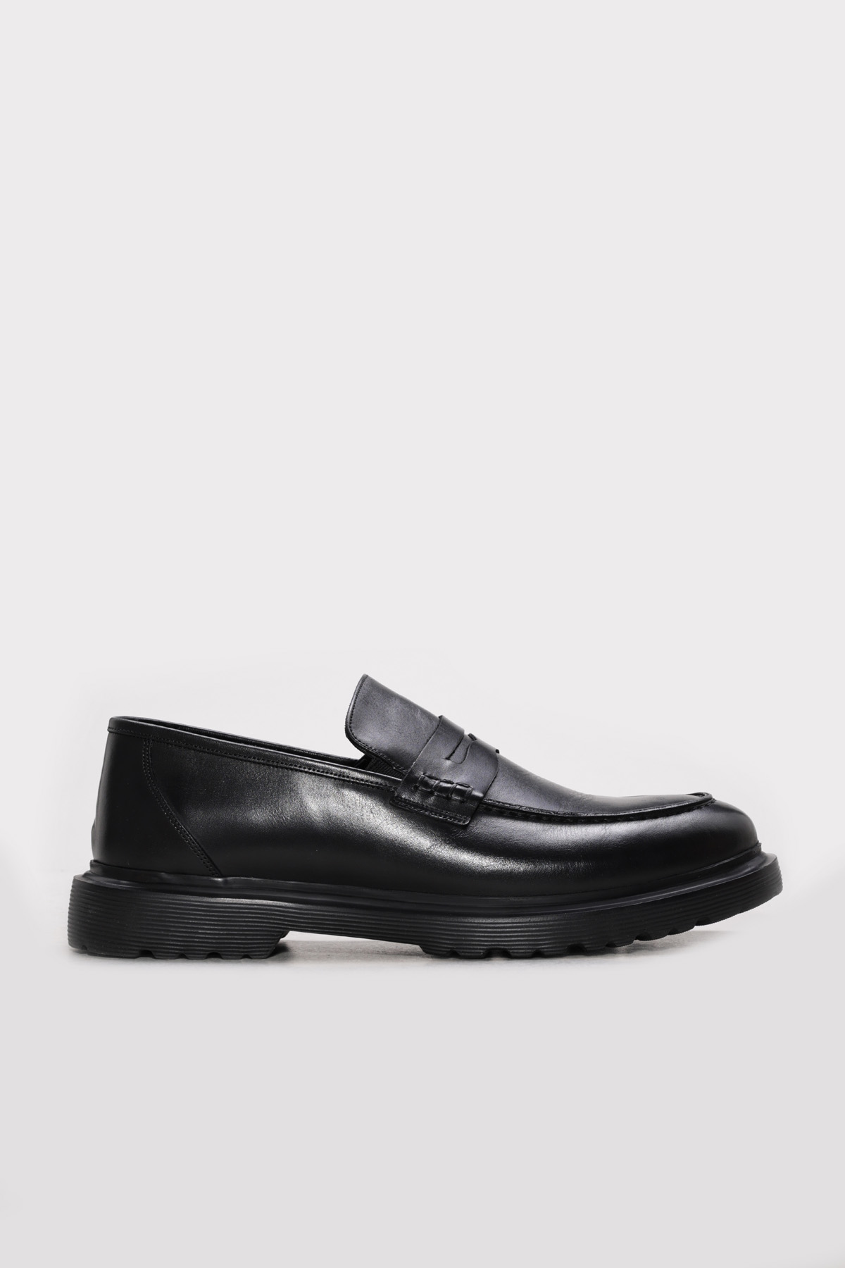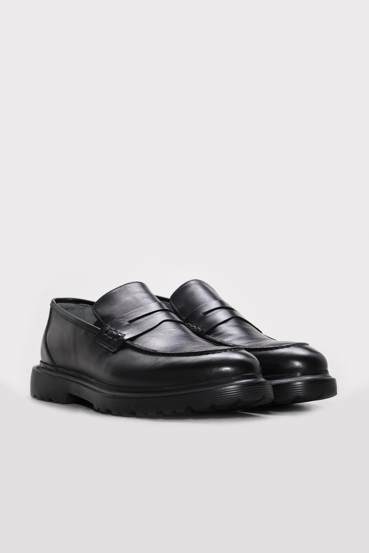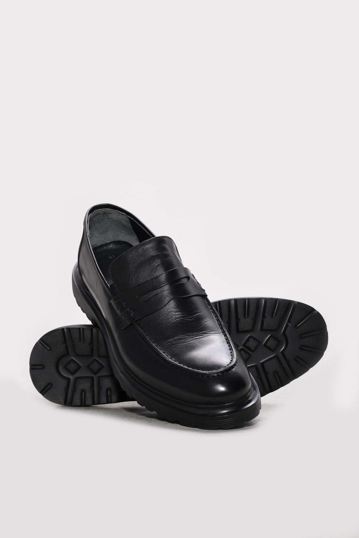 MirgeShoes Siyah Bağcıksız Erkek Klasik Ayakkabı İçi Dışı Hakiki Deri MRG01871131506747