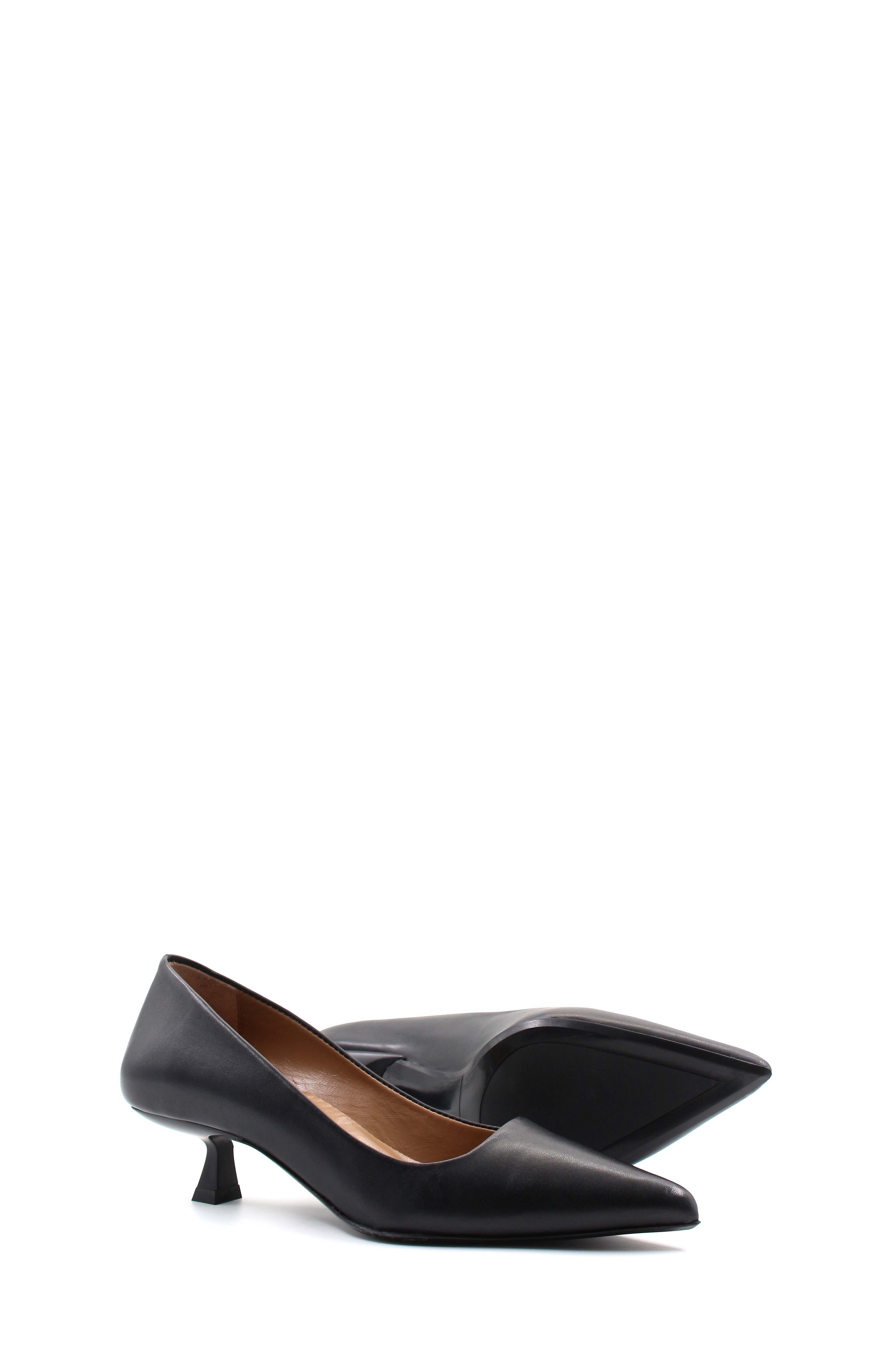 • MirgeShoes Siyah Kadın Kısa Topuklu Ayakkabı İçi Dışı Hakiki Deri MRG0114926122221