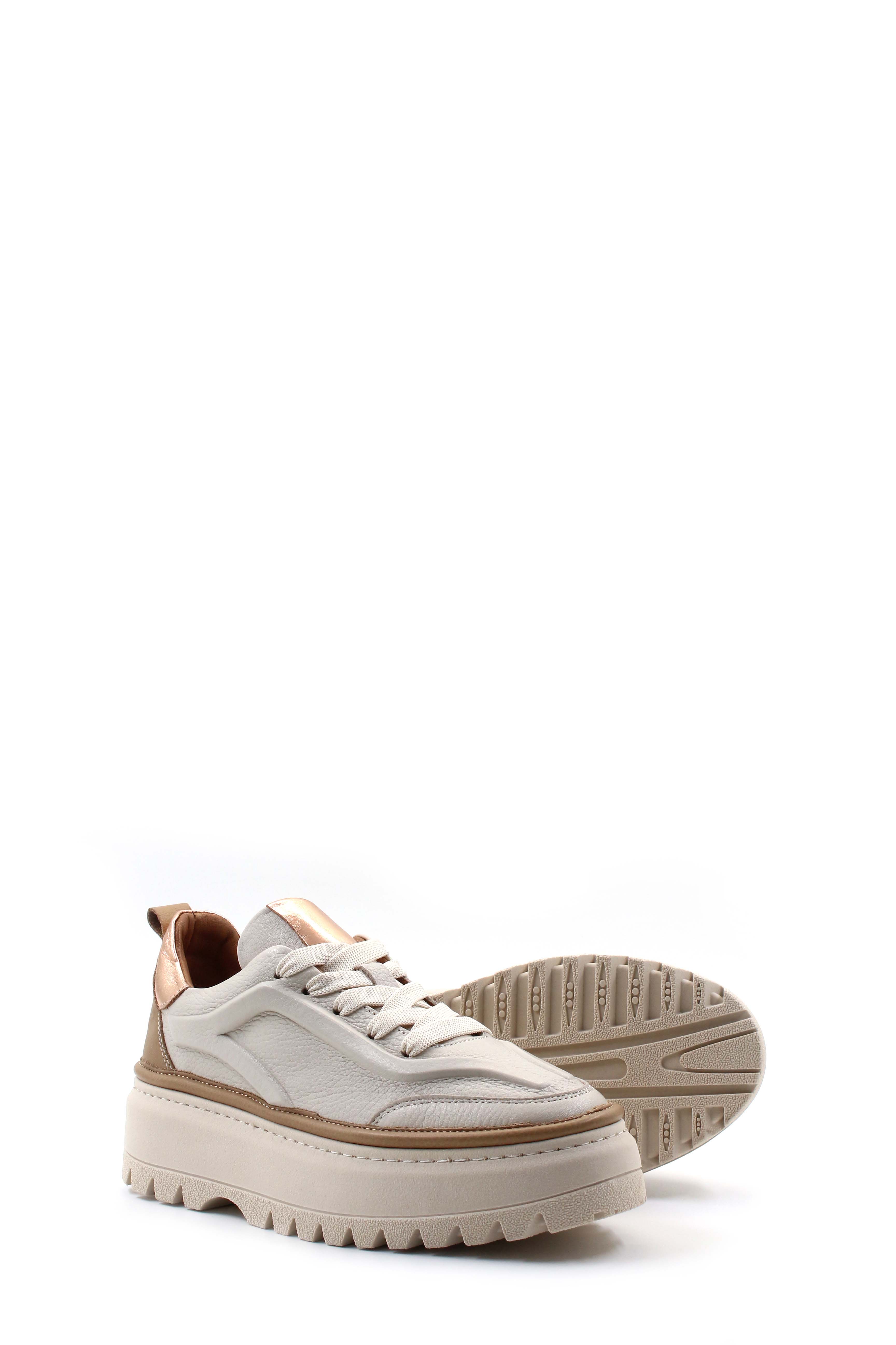 • MirgeShoes Bej Bağcıklı Kadın Casual Ayakkabı İçi Dışı Hakiki Deri MRG015392613321