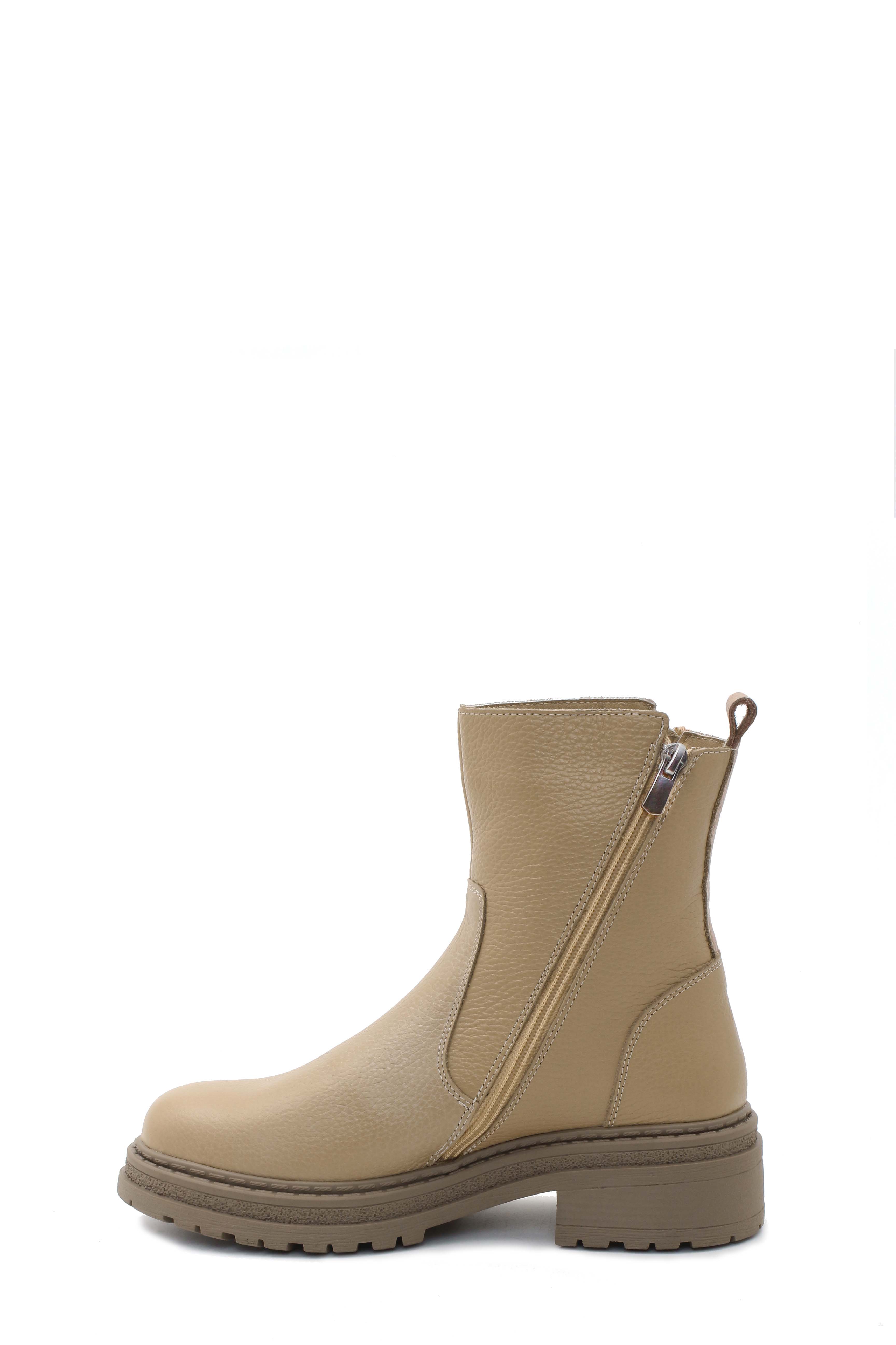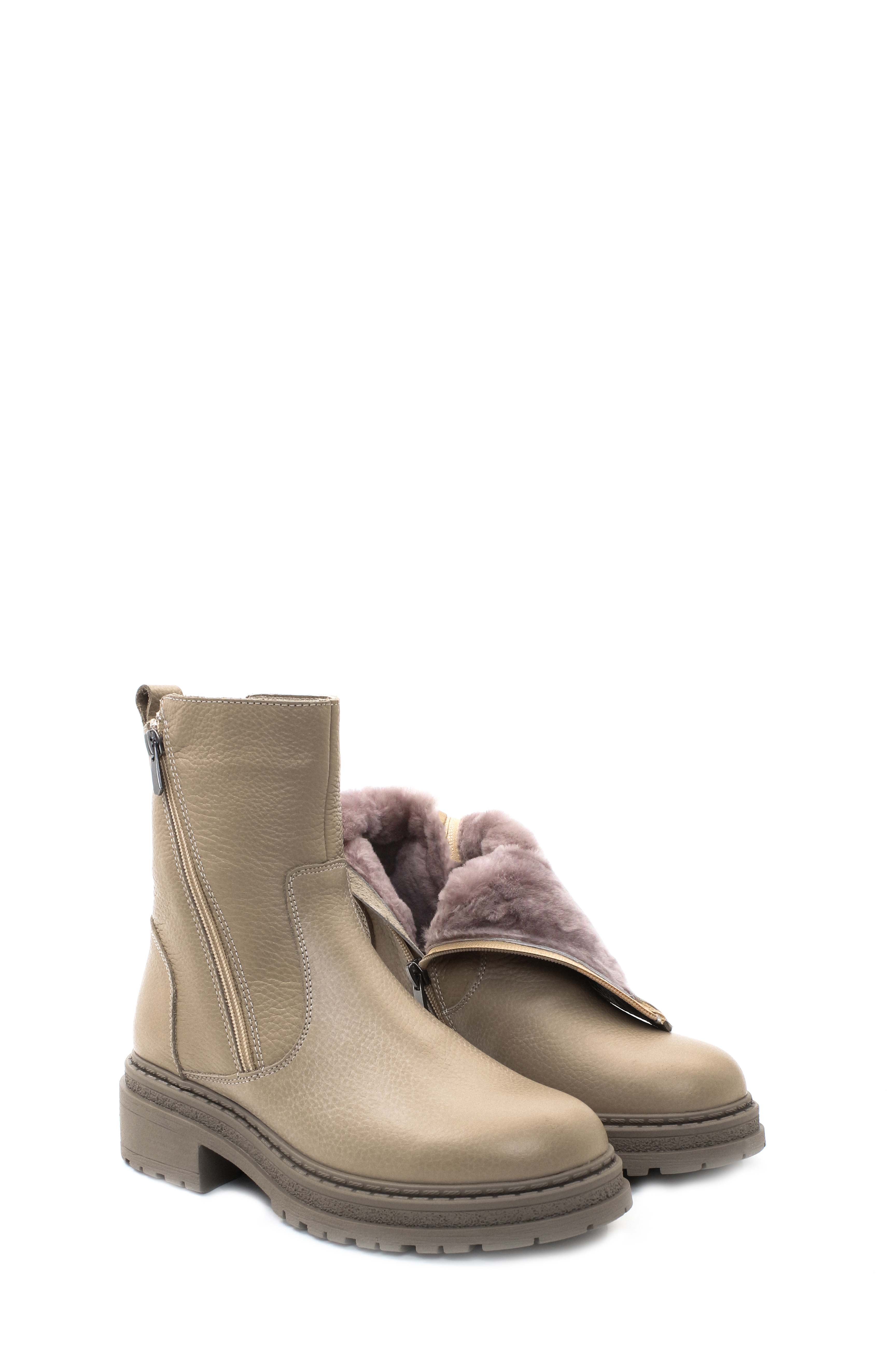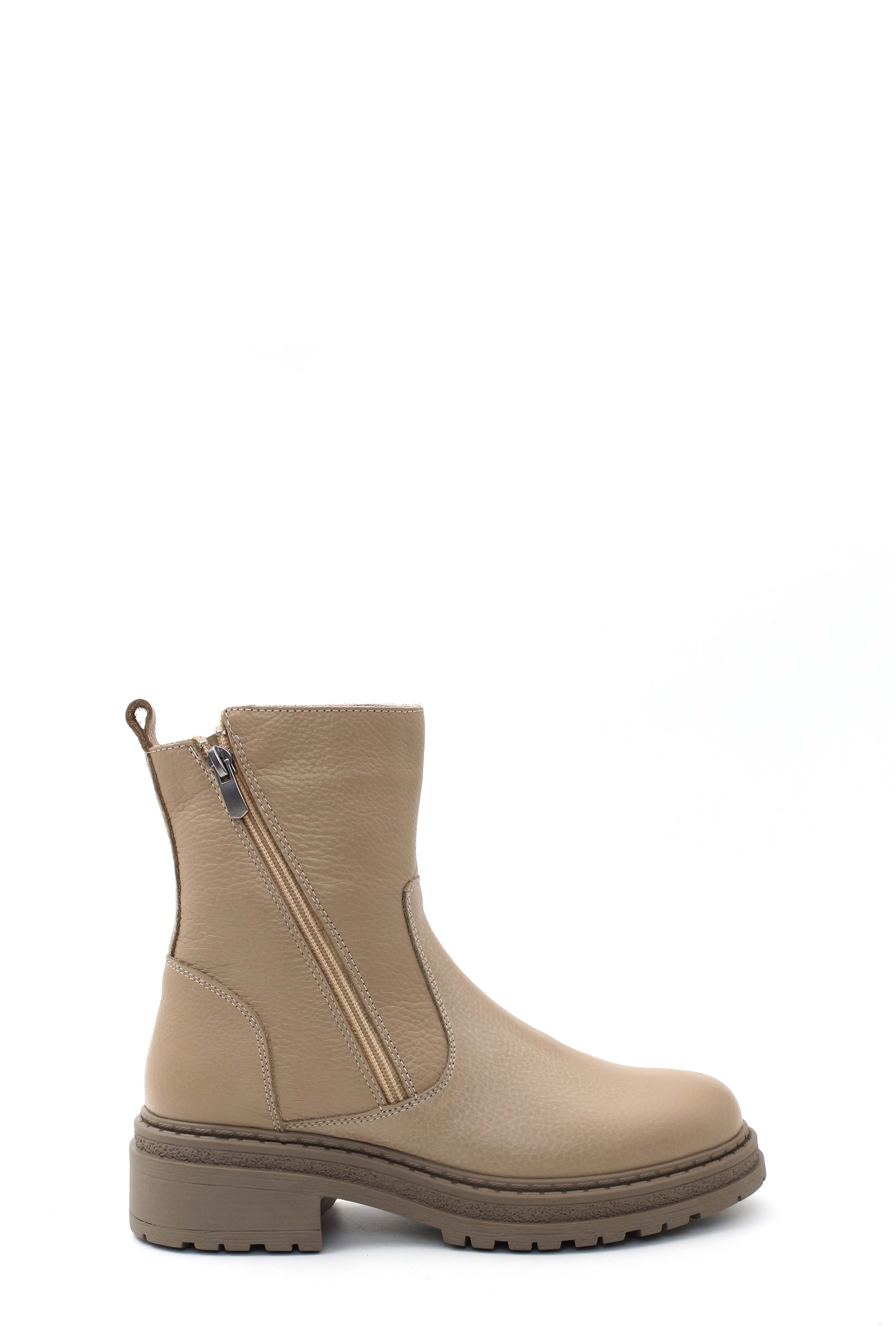MirgeShoes Vizon Fermuarlı Kadın Bot İçi Kürklü Dışı Hakiki Floter Deri MRG0138711261840