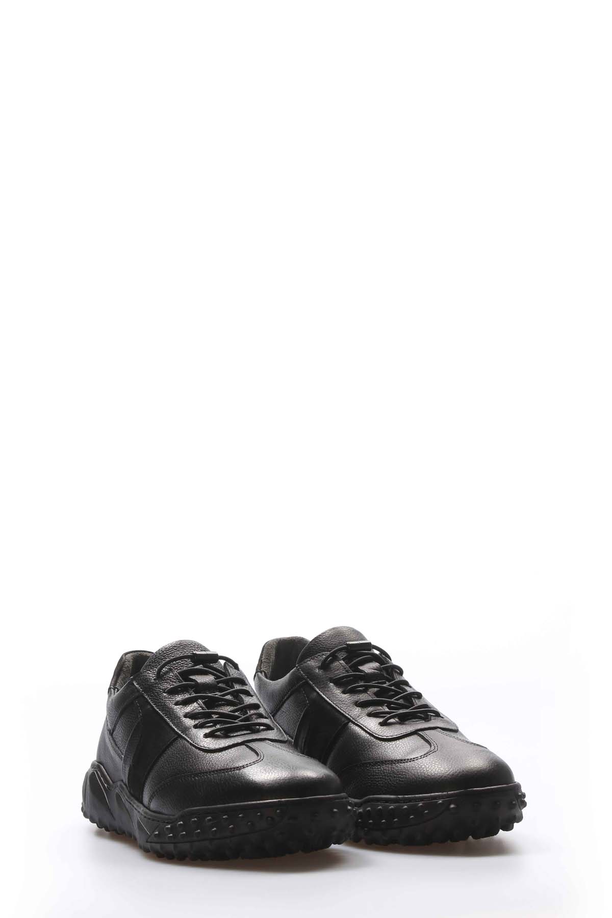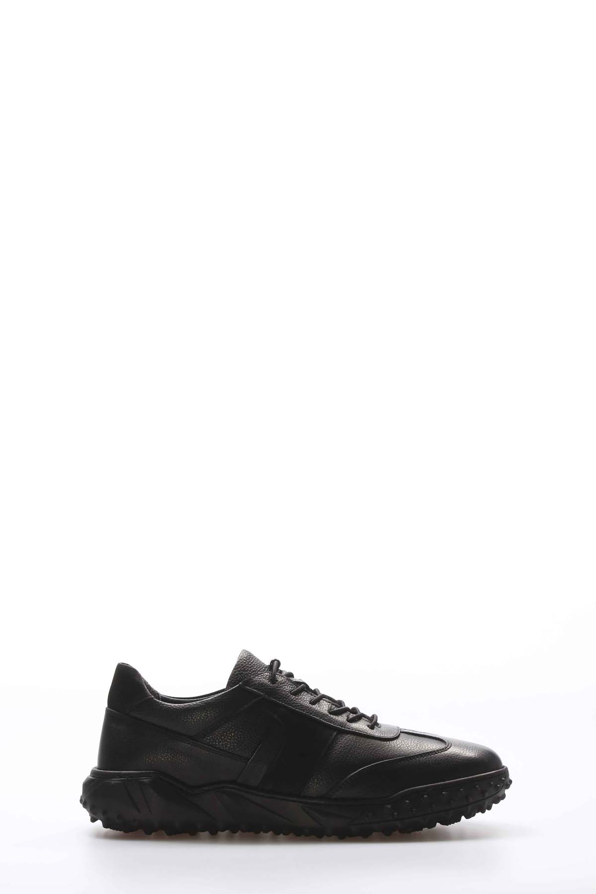 MirgeShoes Siyah Bağcıklı Erkek Spor Sneaker Ayakkabı İçi Dışı Hakiki Deri MRG01945131662