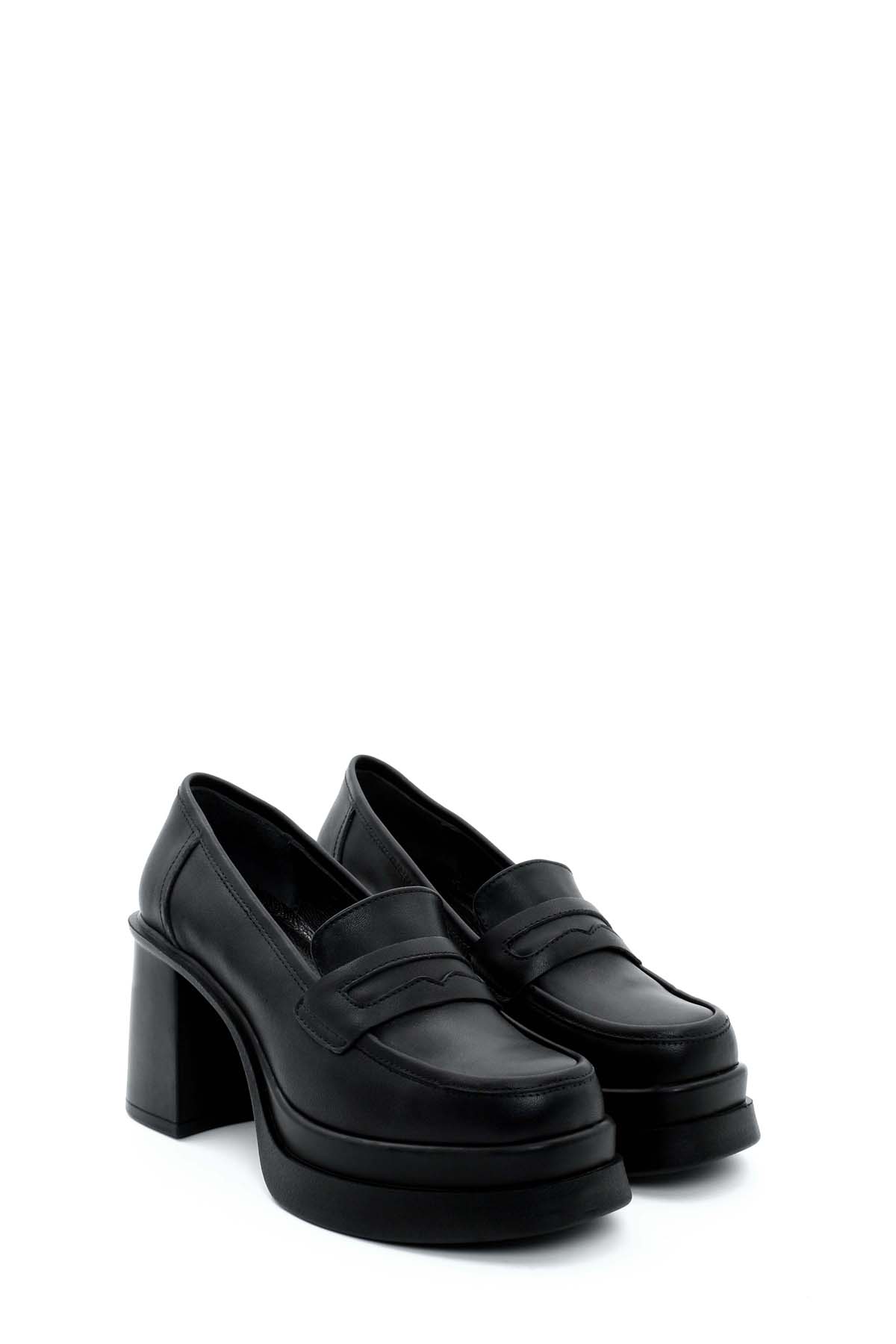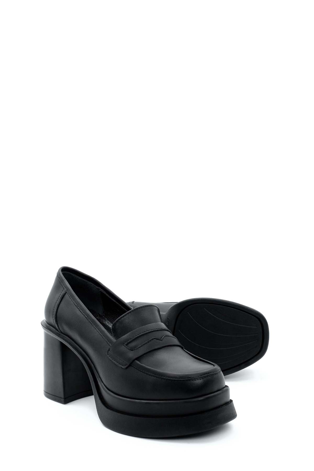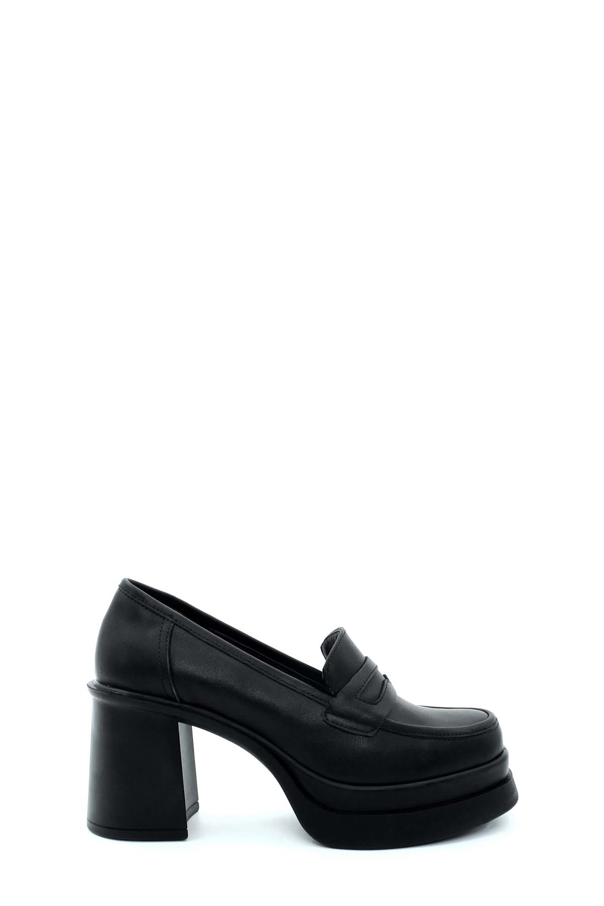 • MirgeShoes Siyah Kadın Kalın Topuklu Ayakkabı İçi Dışı Hakiki Deri MRG014112612622