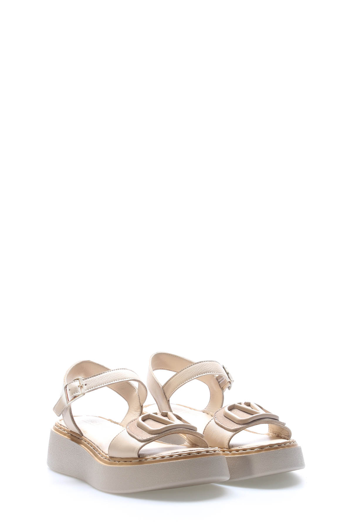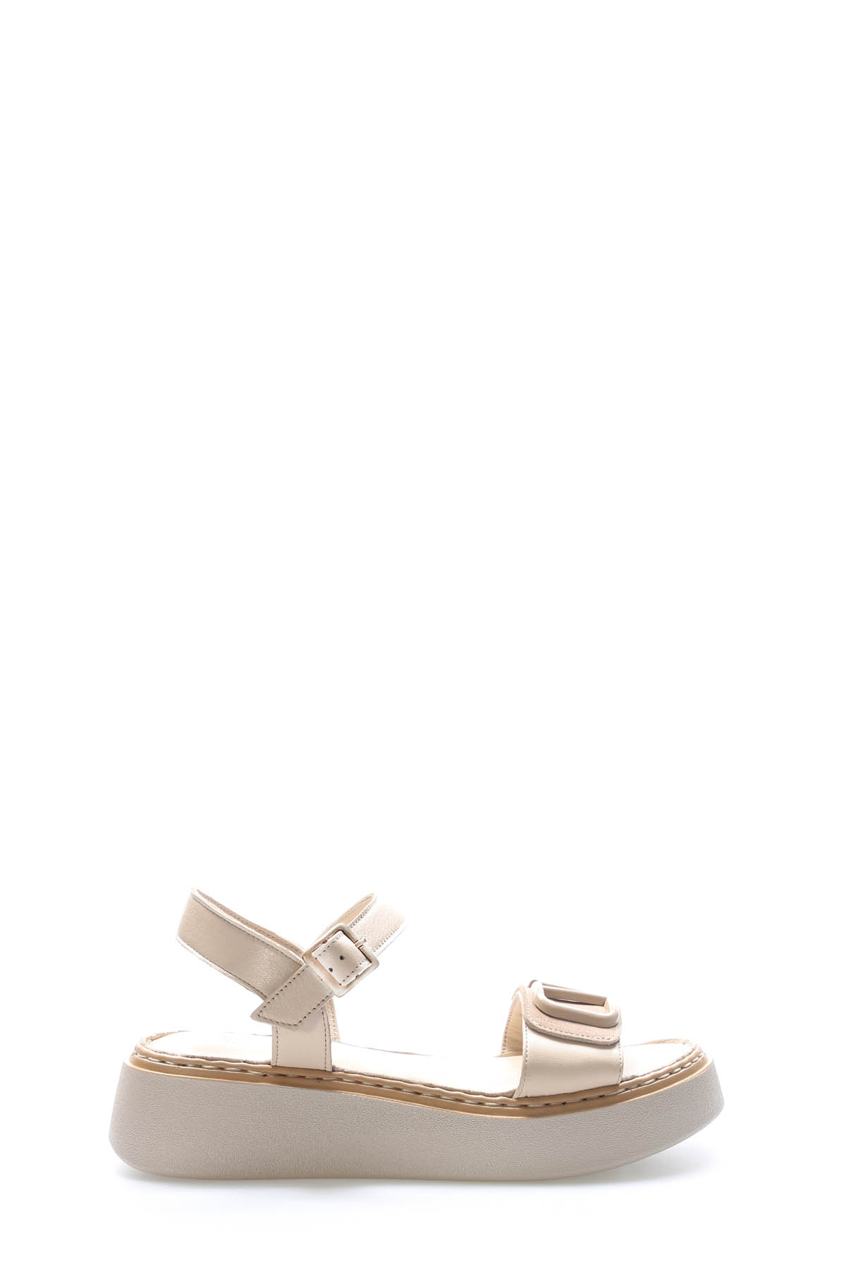 MirgeShoes Kadın Klasik Sandalet İçi Dışı Hakiki Deri Bej MRG017512611366