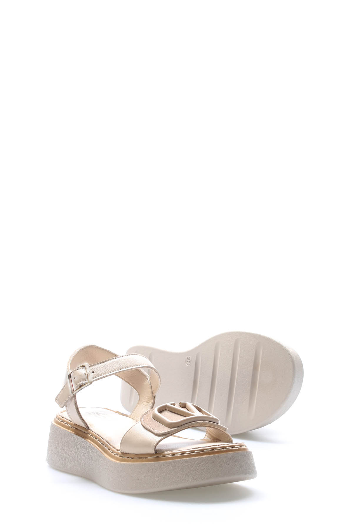 • MirgeShoes Kadın Klasik Sandalet İçi Dışı Hakiki Deri Bej  MRG017512611366