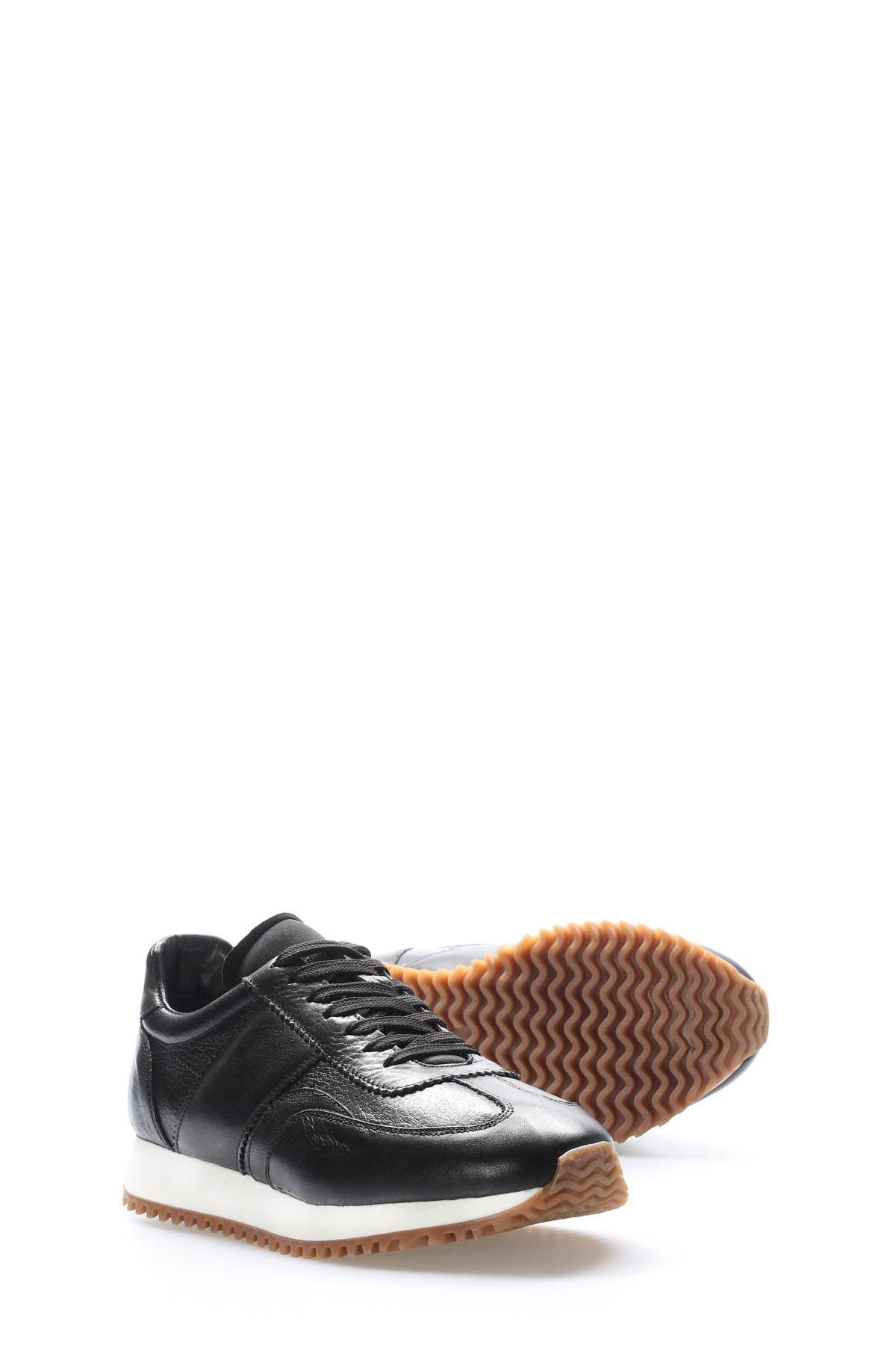 • MirgeShoes Siyah Bağcıklı Erkek Spor Sneaker Ayakkabı İçi Dışı Hakiki Deri MRG01949131478