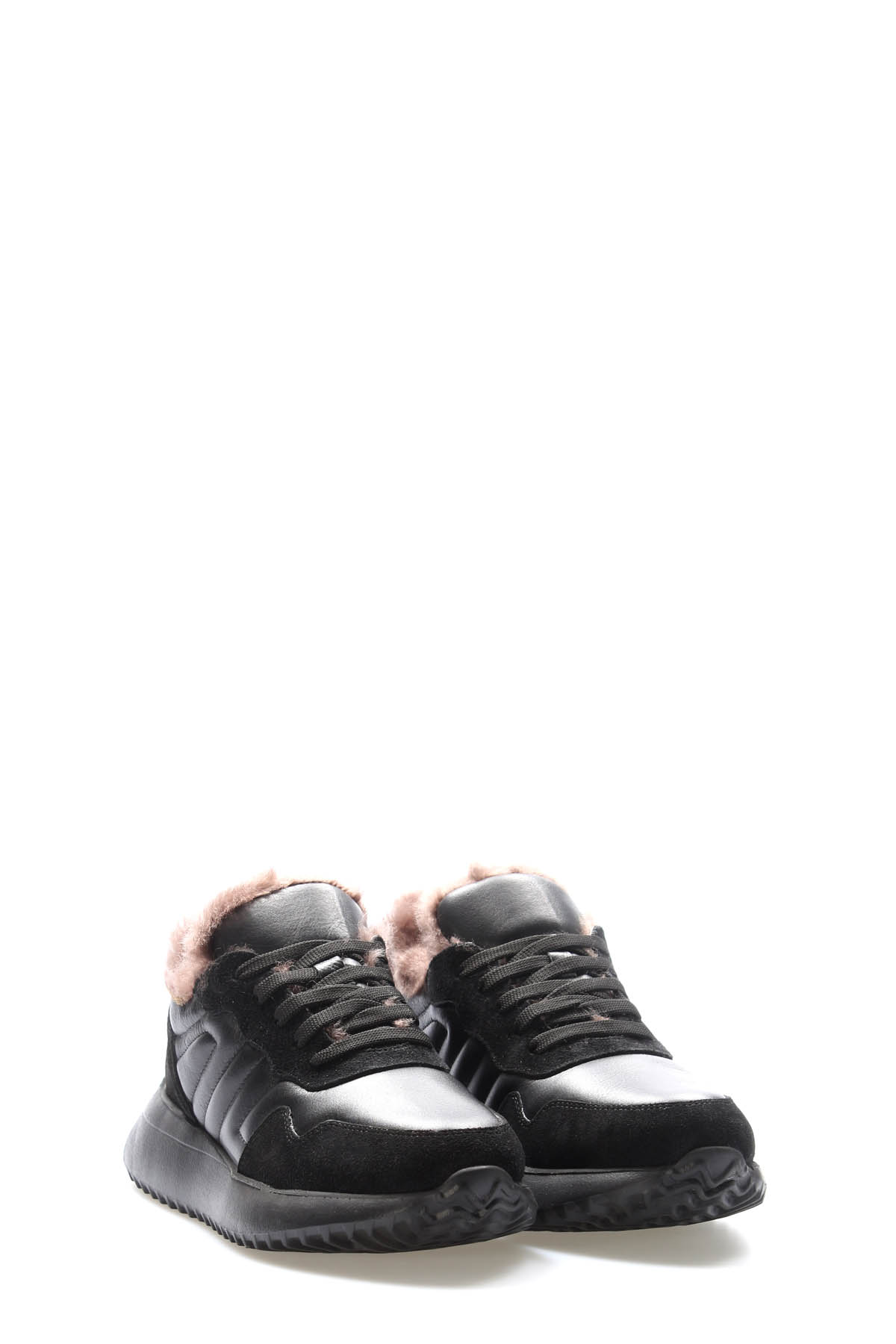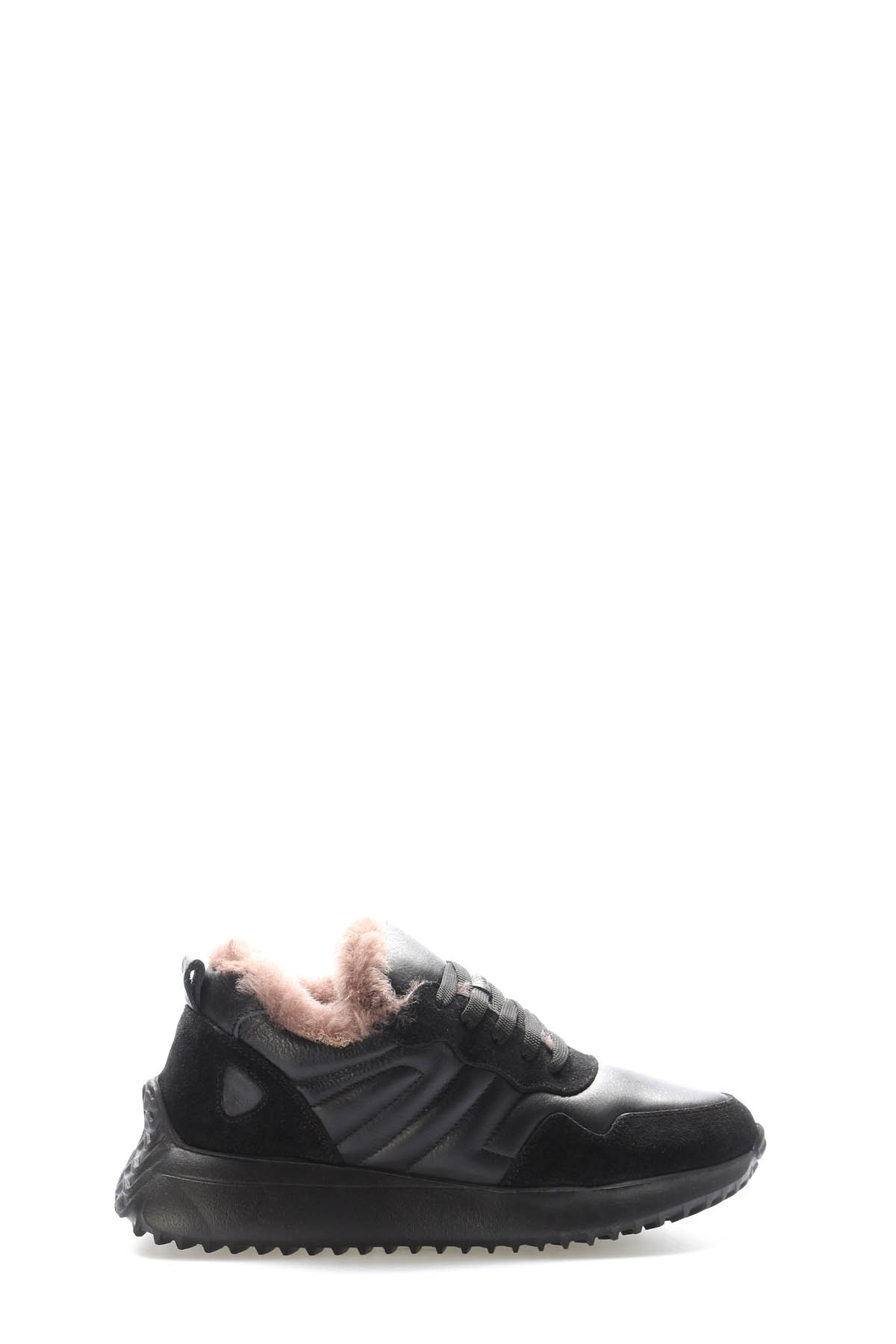 • MirgeShoes Siyah Bağcıklı Kadın Casual Ayakkabı İçi Kürklü Dışı Hakiki Deri MRG01266112619228