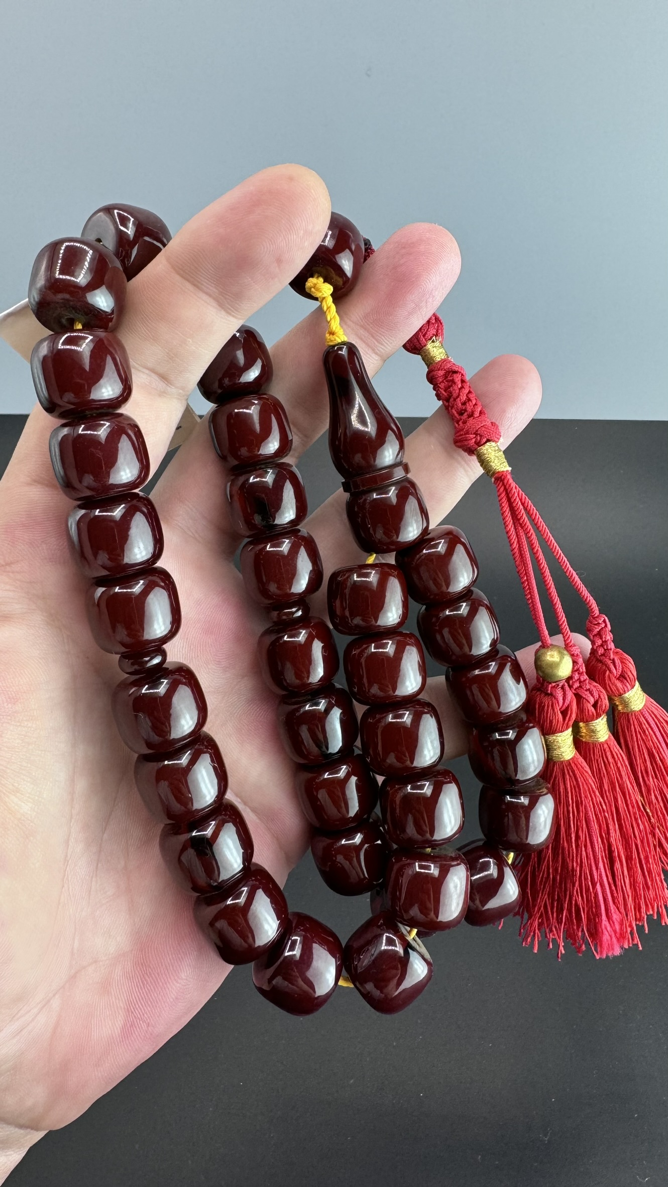 MirgeShoes Eski Döküm Rüzgar Gülü Hareli Vişne 118 Gr Sıkma Kehribar Tesbih AHTES2133