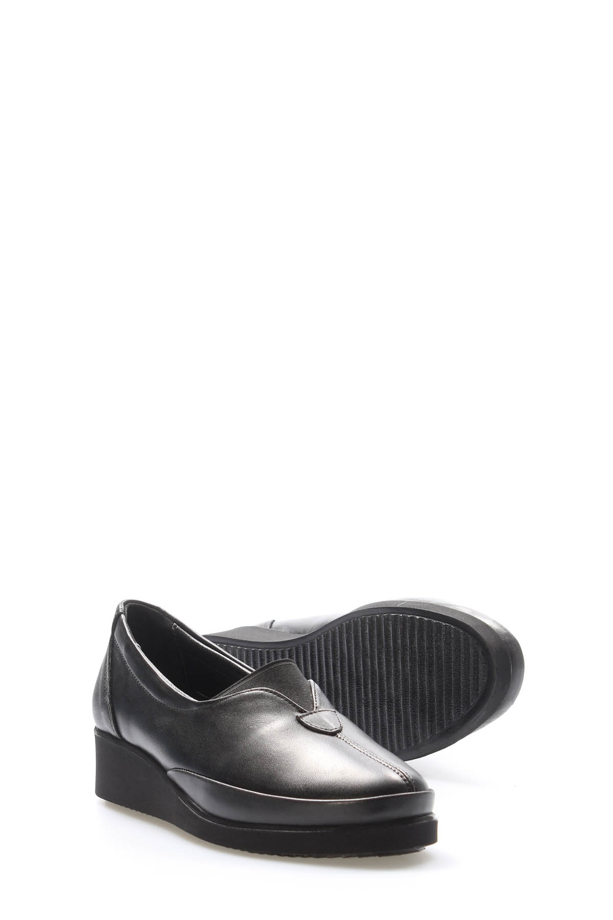 • MirgeShoes Siyah Bağcıksız Kadın Casual Ayakkabı İçi Dışı Hakiki Deri MRG01110226171122