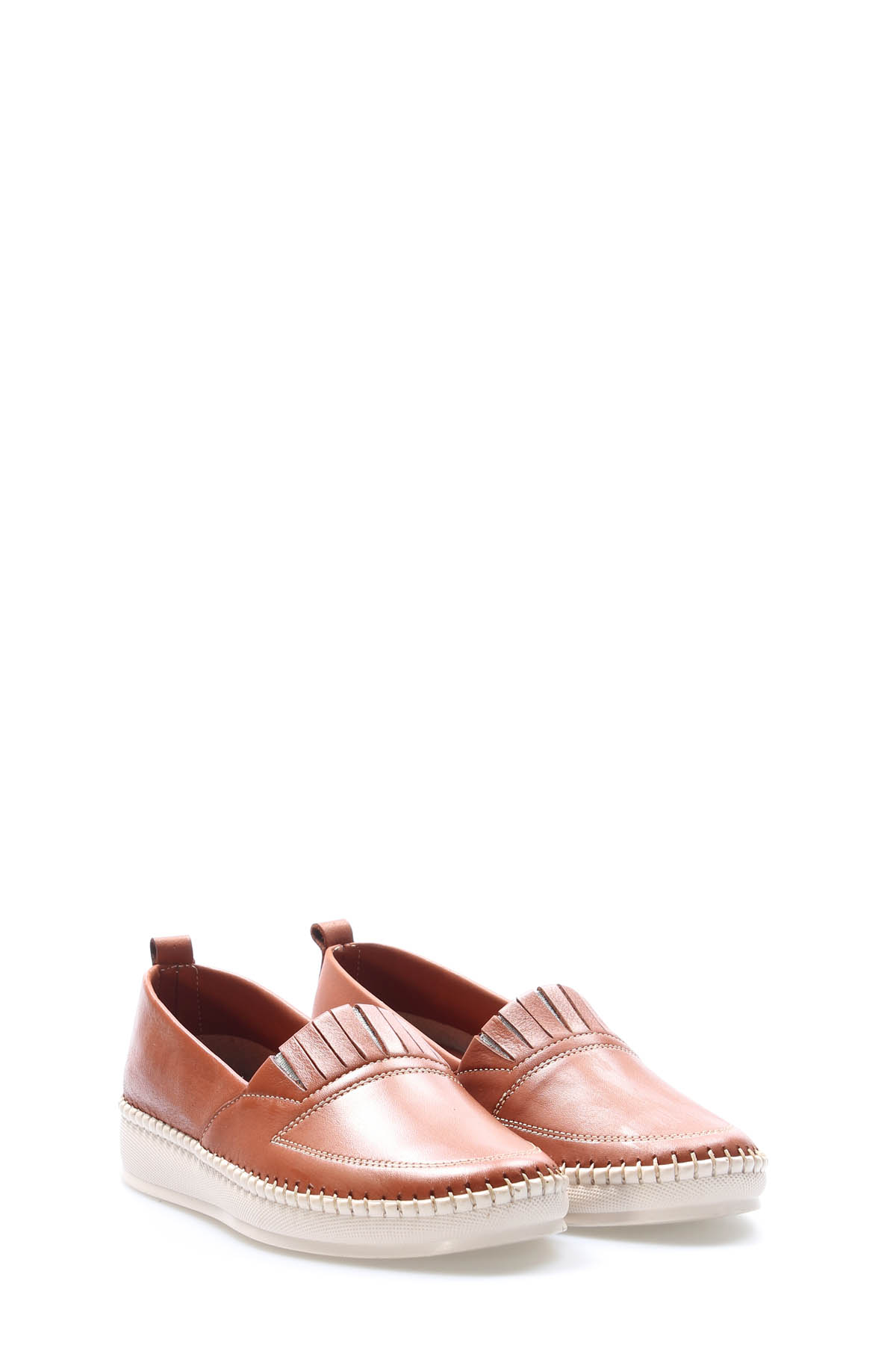 MirgeShoes Taba Bağcıksız Kadın Casual Ayakkabı İçi Dışı Hakiki Deri MRG012942612227