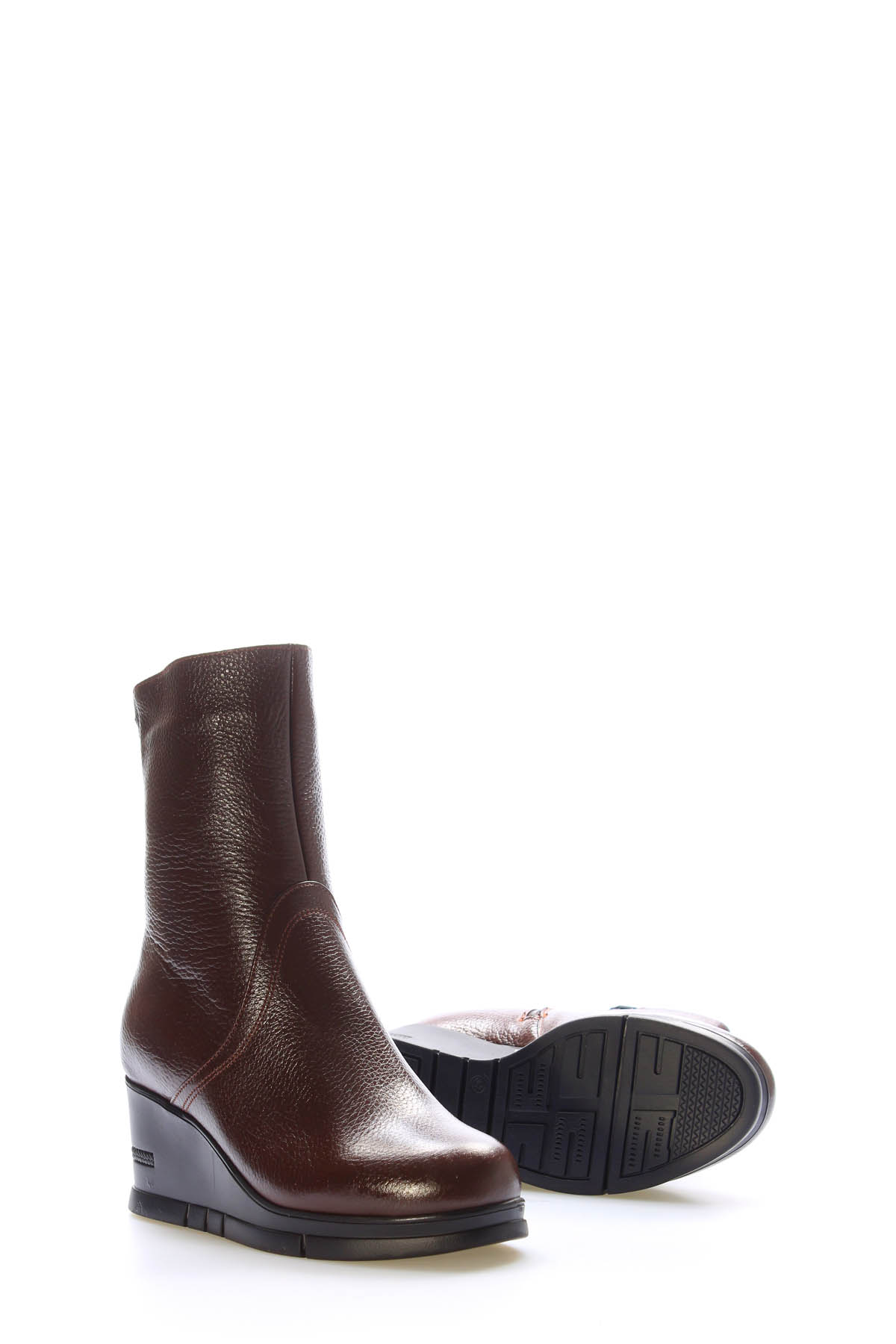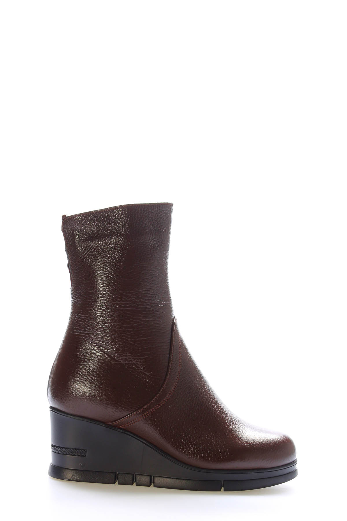 MirgeShoes Kahve Fermuarlı Kadın Dolgu Topuk Bot İçi Kürklü Dışı Hakiki Floter Deri MRG01194112611256
