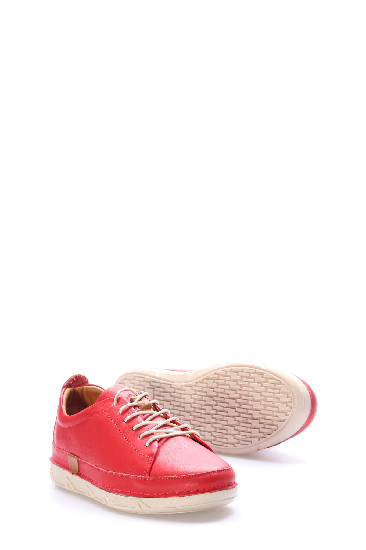 MirgeShoes Kırmızı Bağcıklı Kadın Casual Ayakkabı İçi Dışı Hakiki Deri MRG0129026111167