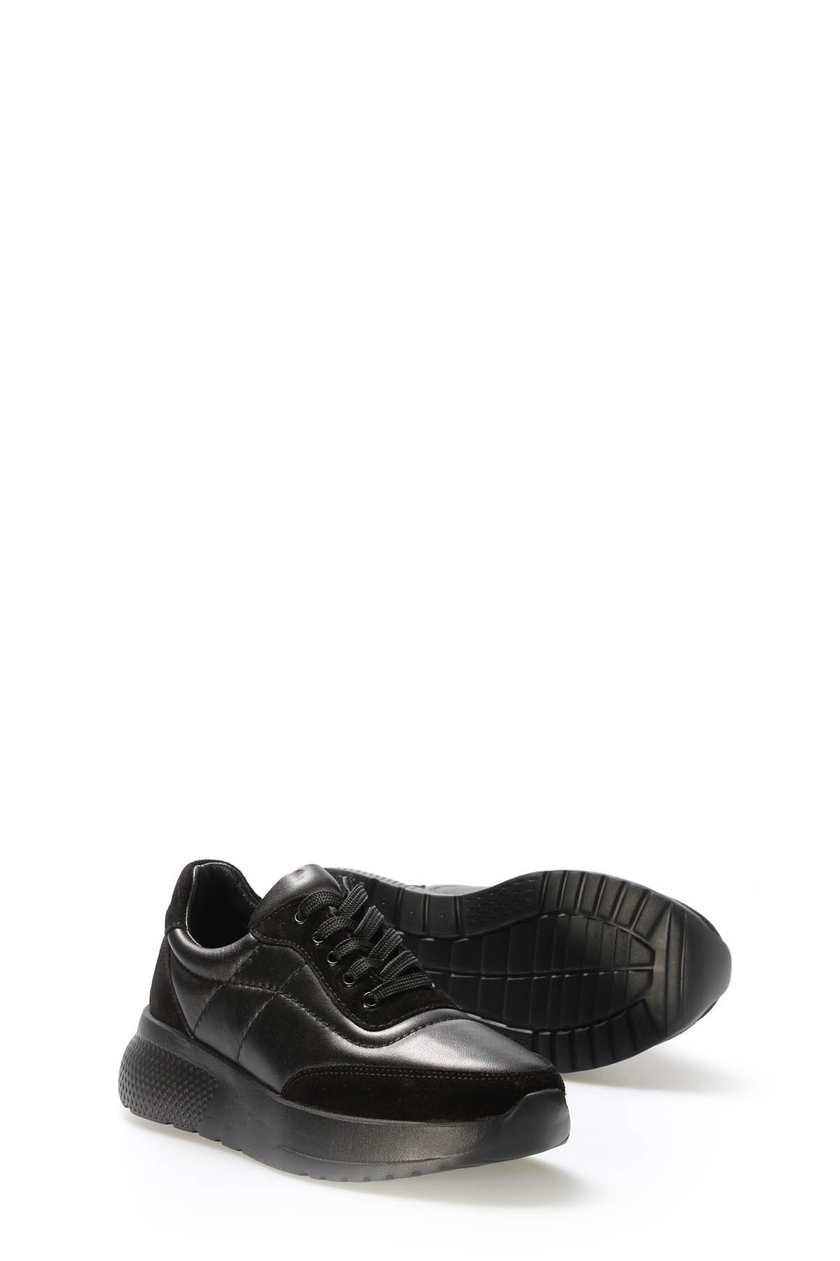 • MirgeShoes Siyah Bağcıklı Kadın Casual Ayakkabı İçi Dışı Hakiki Deri MRG0111122611218