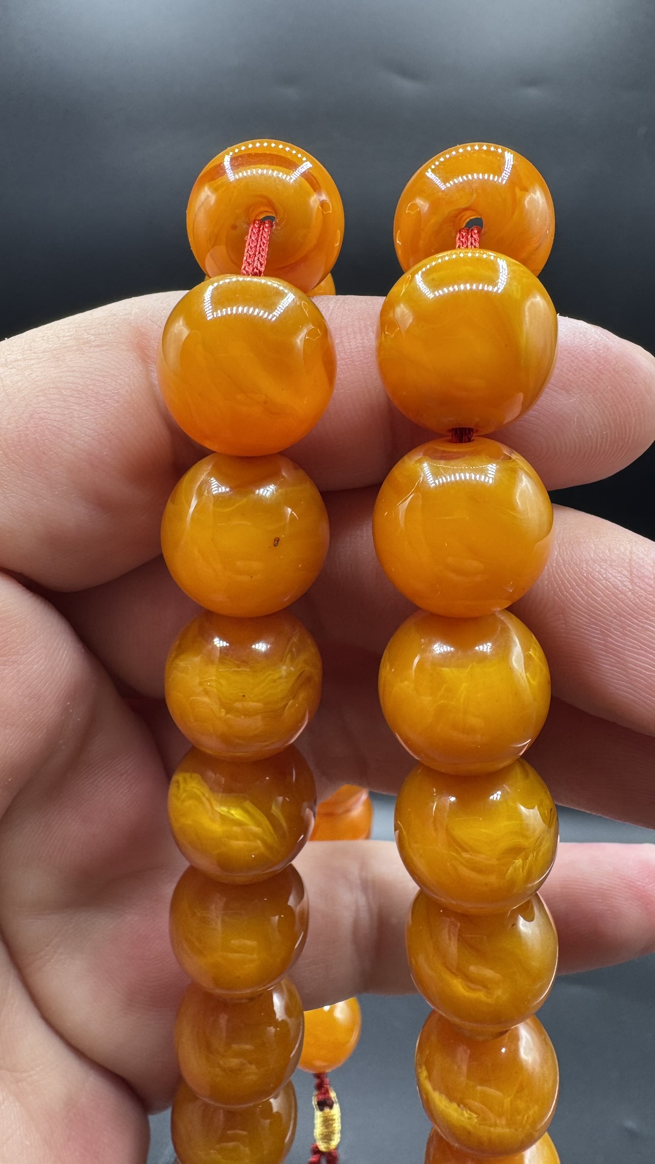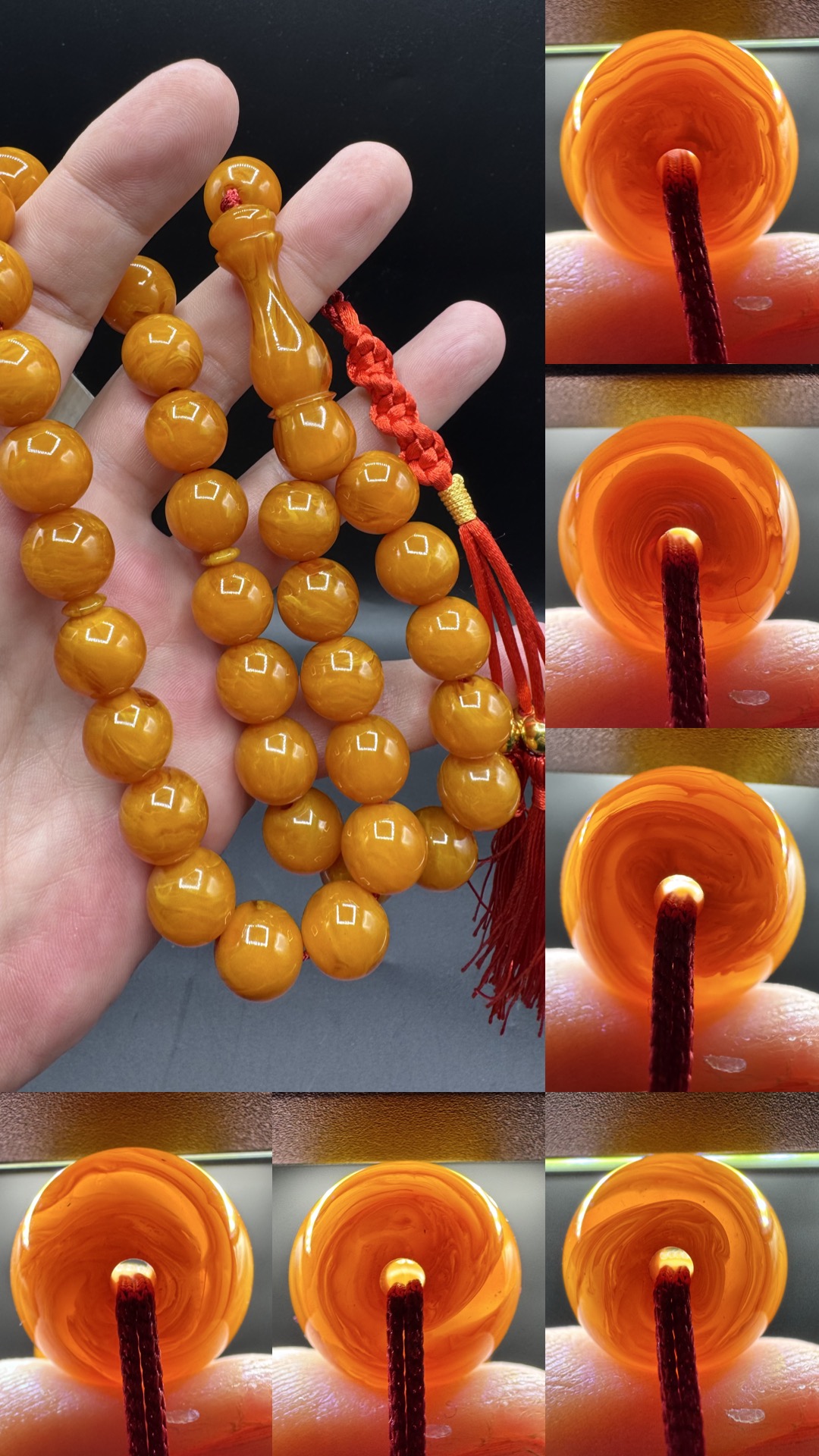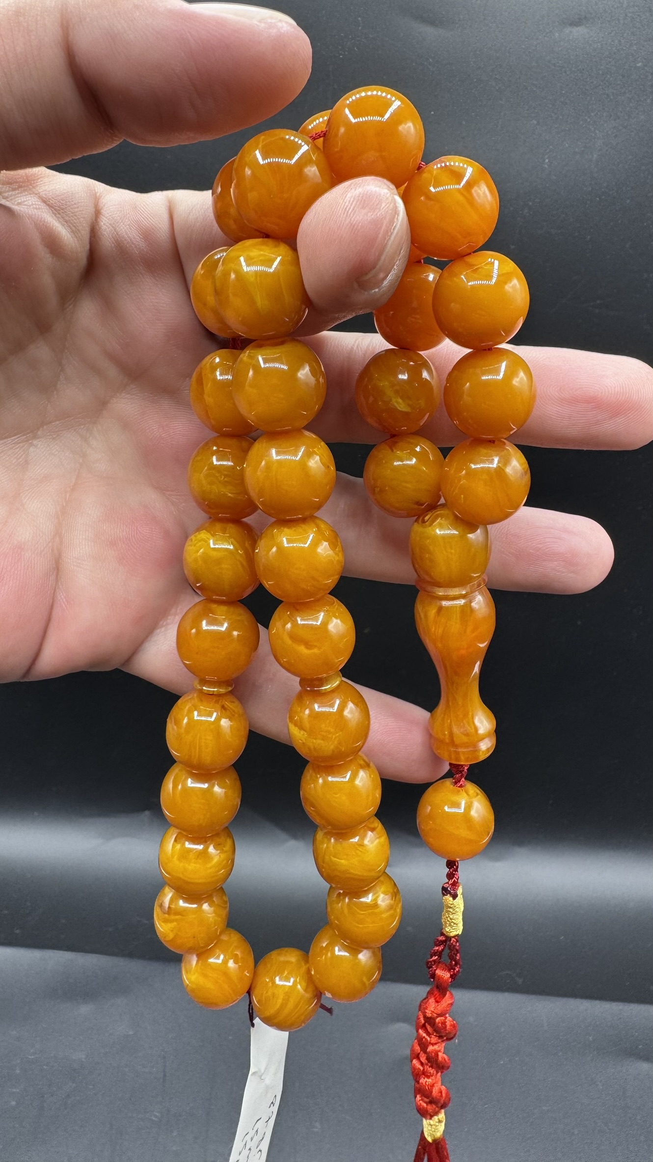 • Tespihimiz iç hare yapısı olarak hamur döküm kalitesi olarak Osmanlı sıkmadan ayırt edemeyeceğiniz dokuda ve güzelliktedir. Hamuru sert çıtır çıtırdır kesinlikle boya yoktur. hare yapısı bu şekilde firfirik veya rüzgargülü yapısında en son Osmanlı döneminde dökülmüş sıkma kehribarlarda mevcuttur. üst düzey koleksiyonluk üründür yıllar geçtikçe değerine değer katacak güzelliktedir.