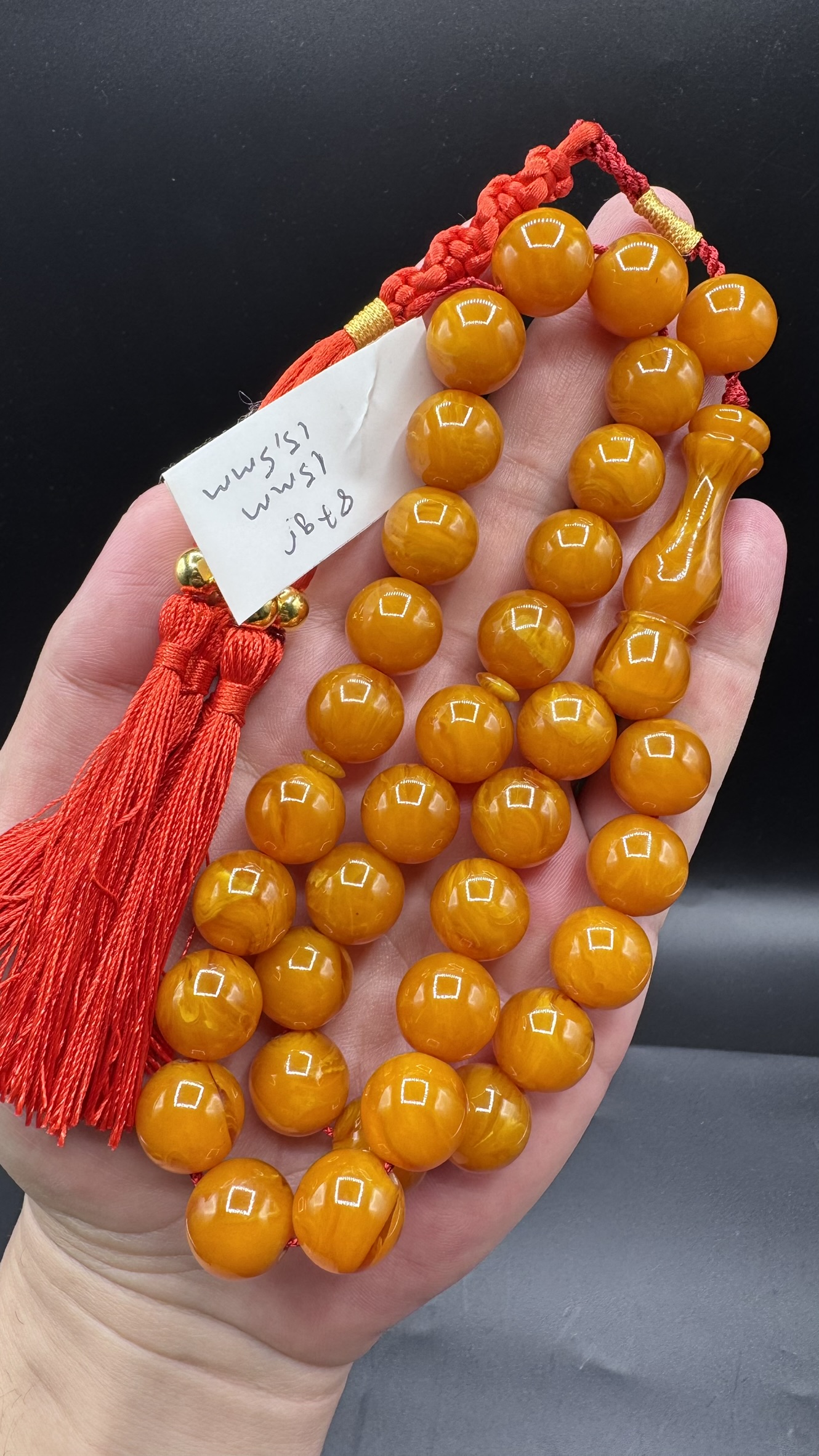 MirgeShoes Üst Düzey Firfirik Hareli Portakal 87 Gr Faturan Sıkma Kehribar Tespih AHTES2509