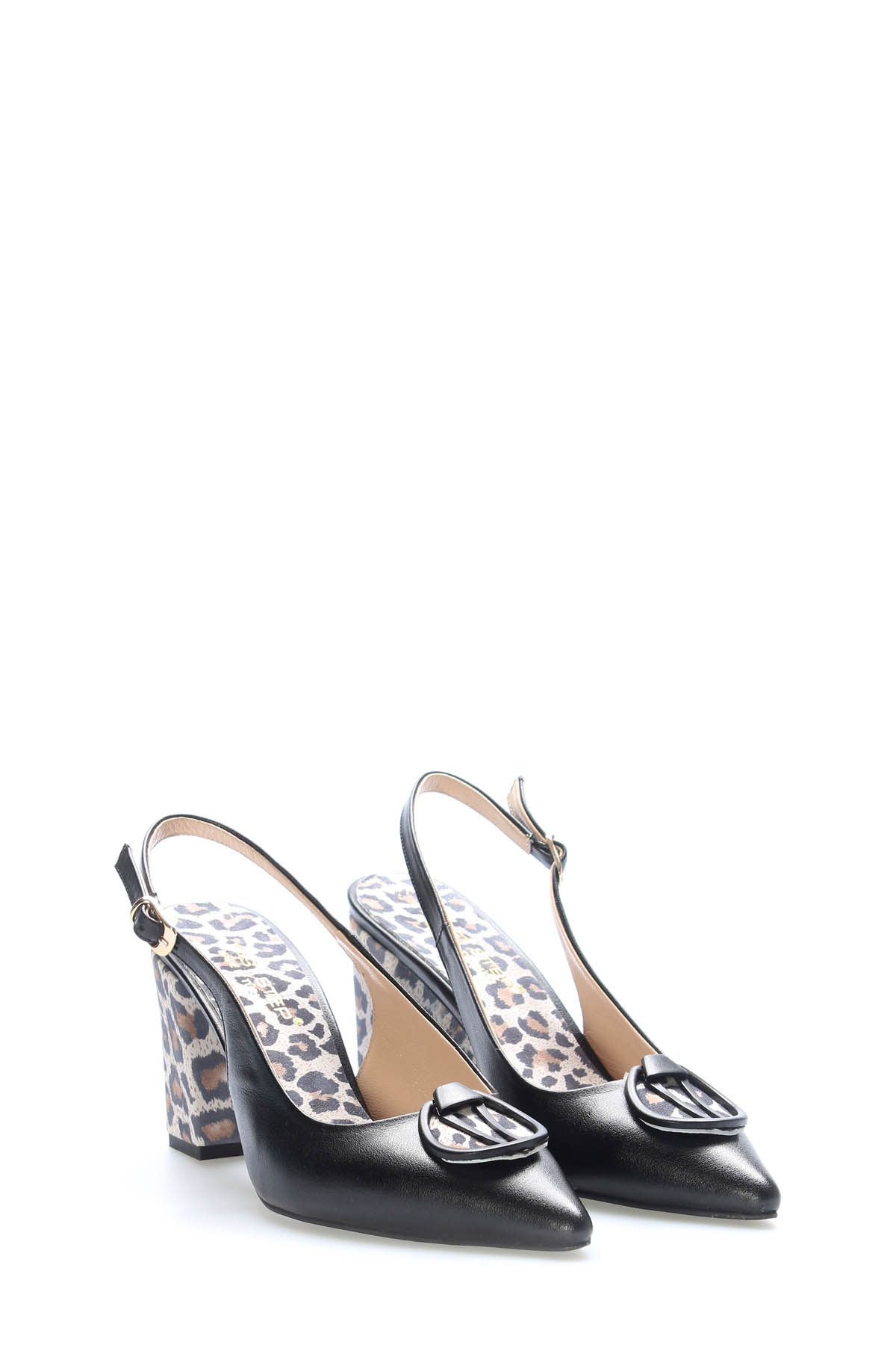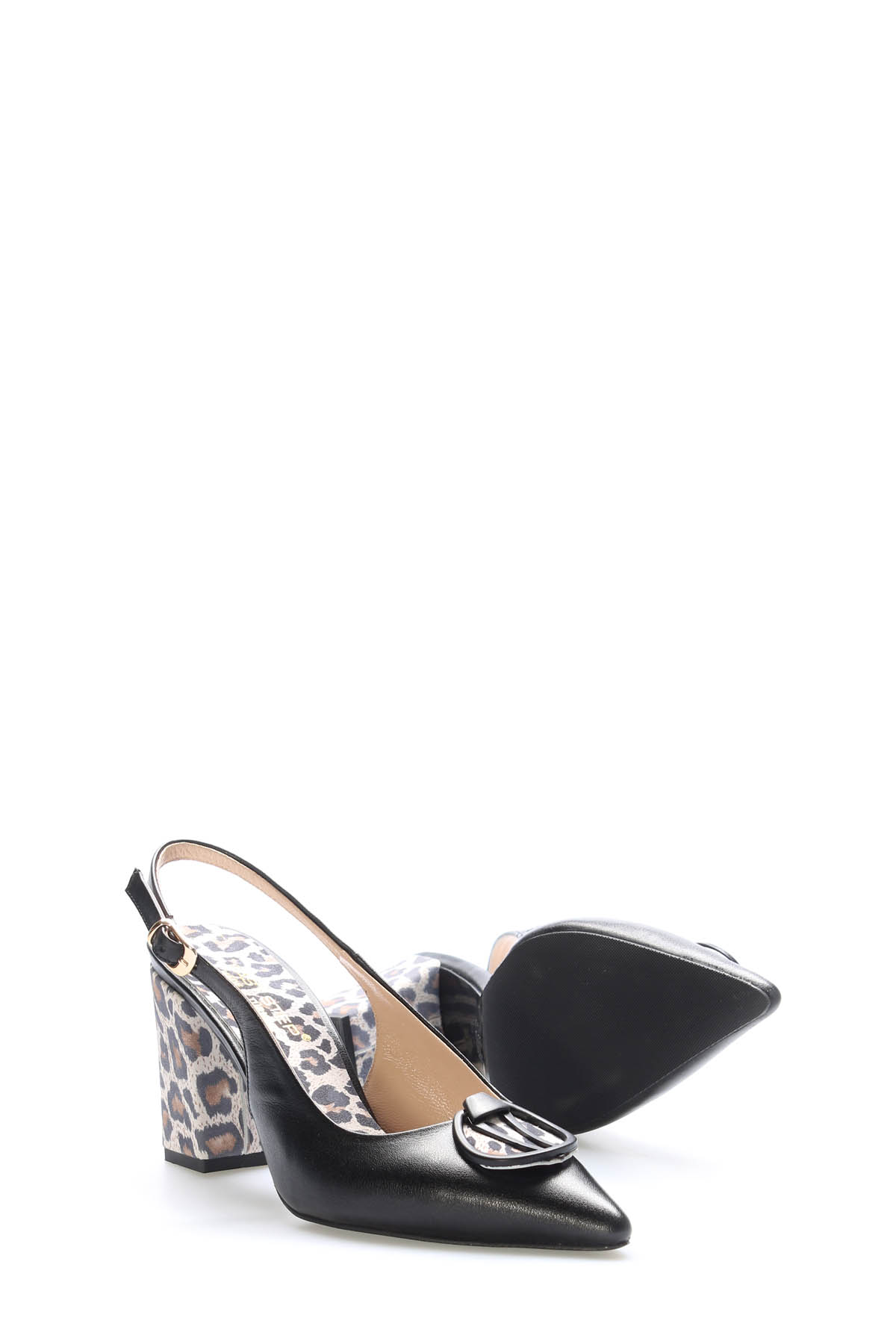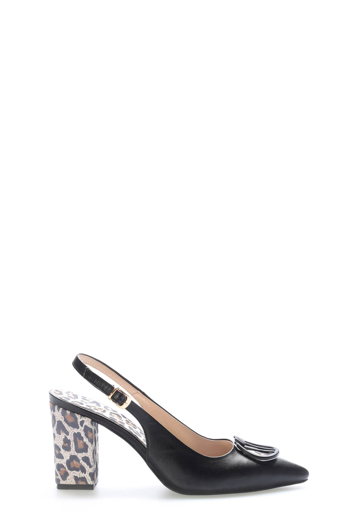 • MirgeShoes Siyah-Leopar Kadın Kalın Topuklu  Ayakkabı İçi Dışı Hakiki Deri MRG013452612958