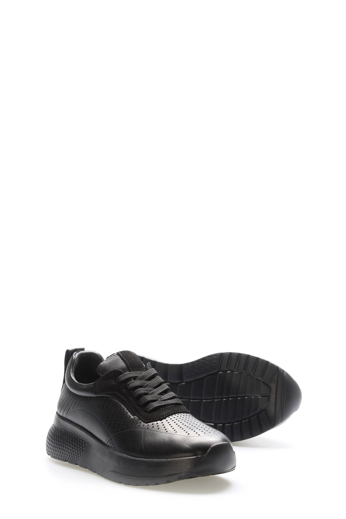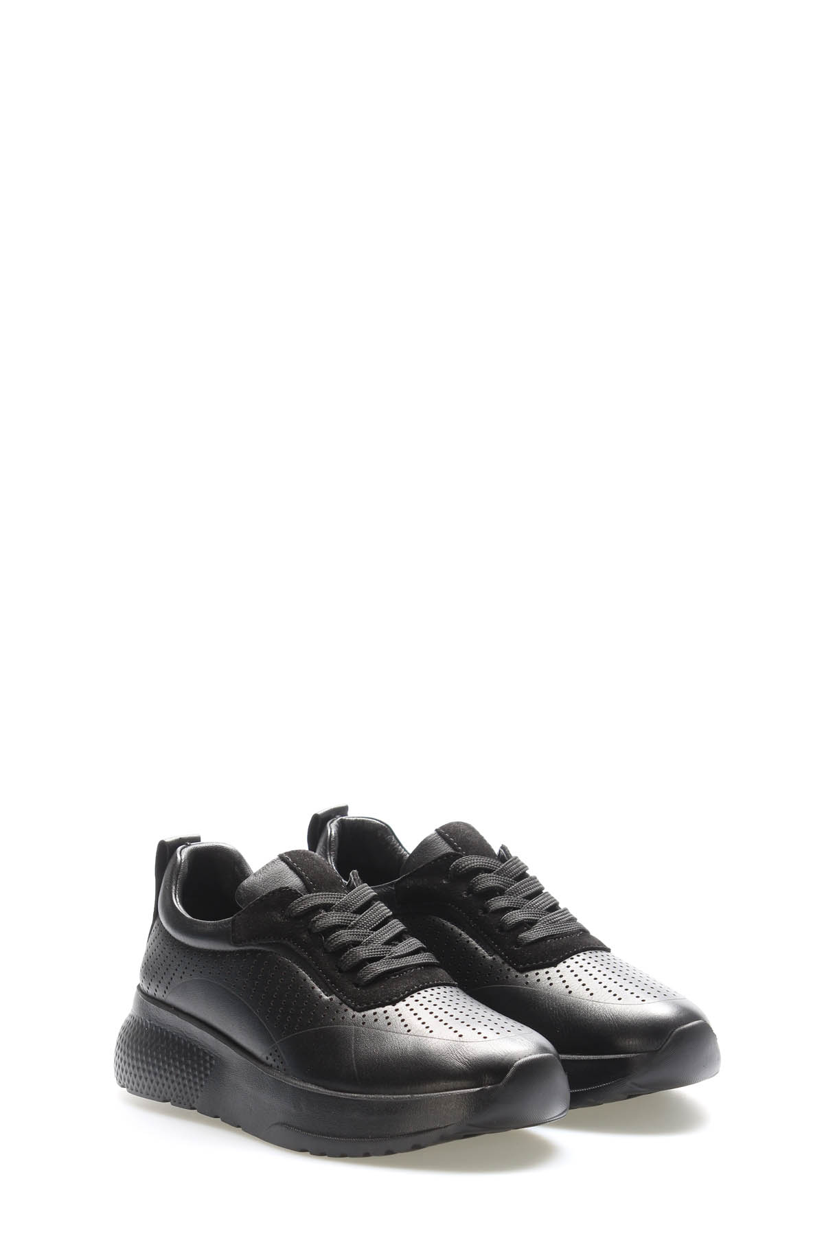 MirgeShoes Siyah Bağcıklı Kadın Casual Ayakkabı İçi Dışı Hakiki Deri MRG0111122611227