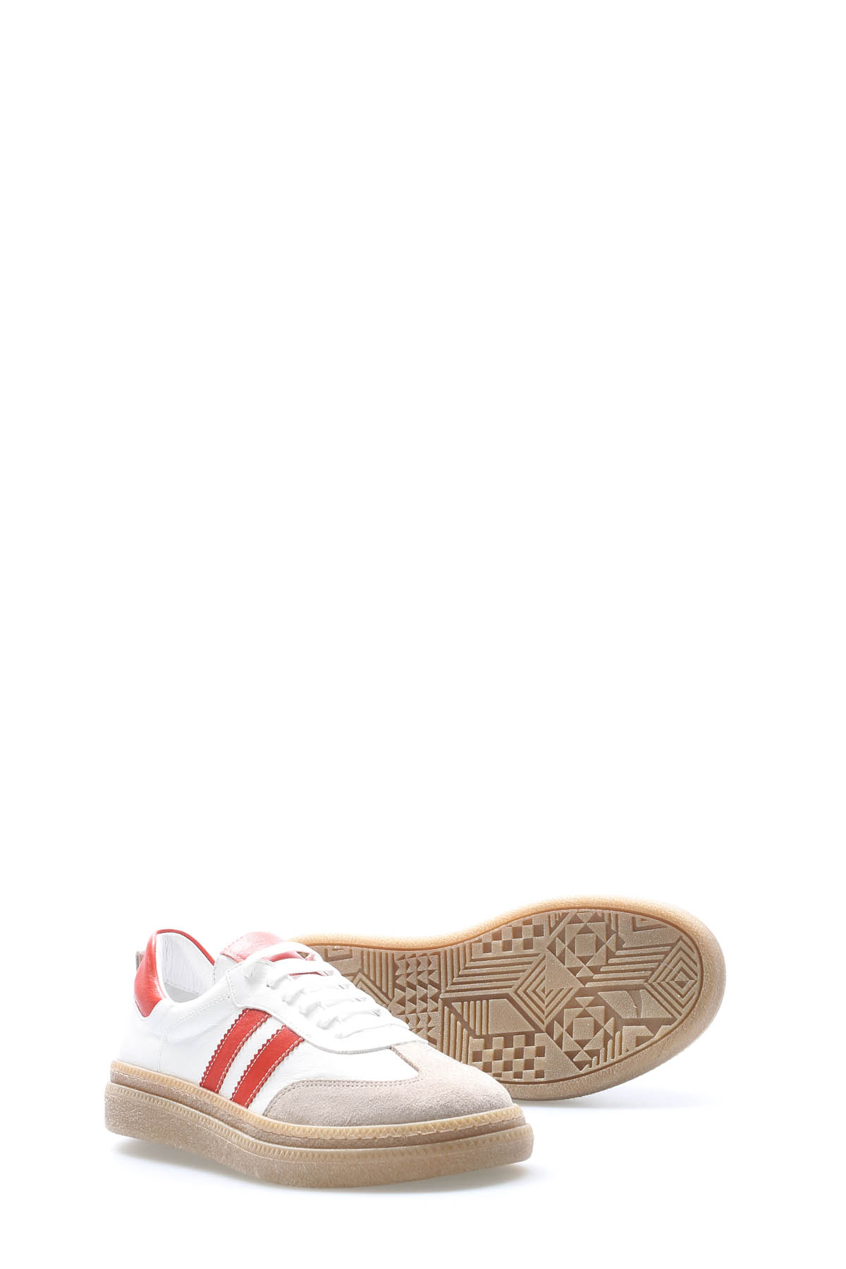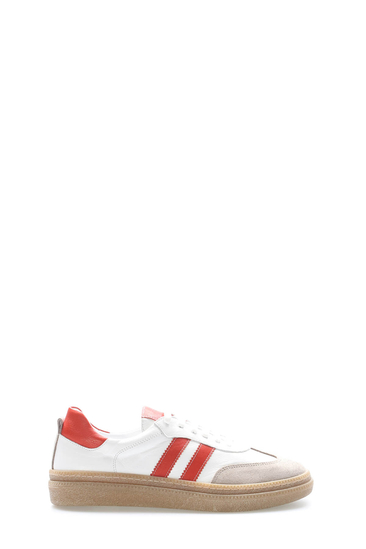 MirgeShoes Beyaz-Kırmızı Bağcıklı Kadın Casual Ayakkabı İçi Dışı Hakiki Deri MRG01347261989