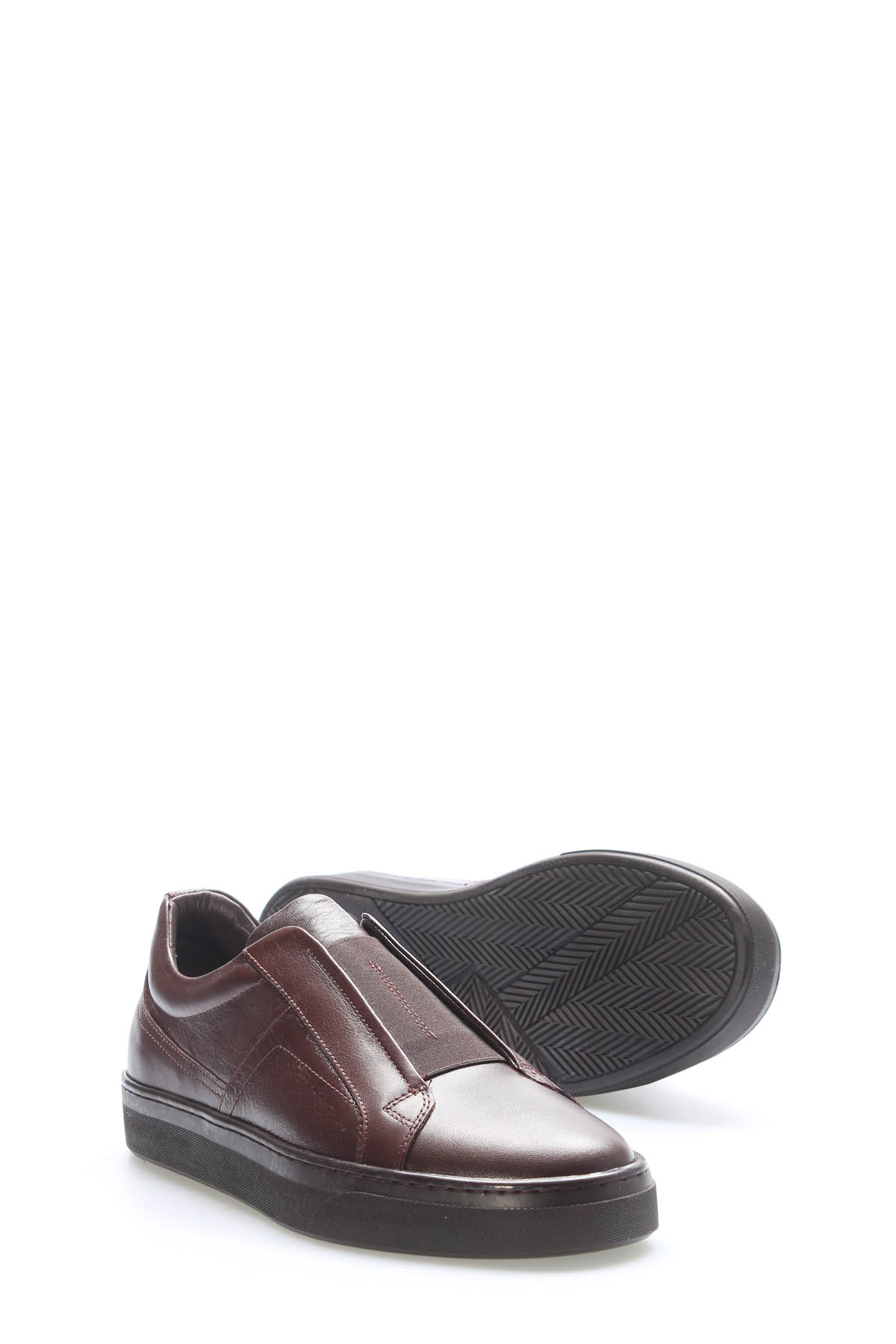 MirgeShoes Kahve Lastikli Erkek Casual Ayakkabı İçi Dışı Hakiki Deri MRG01949131442