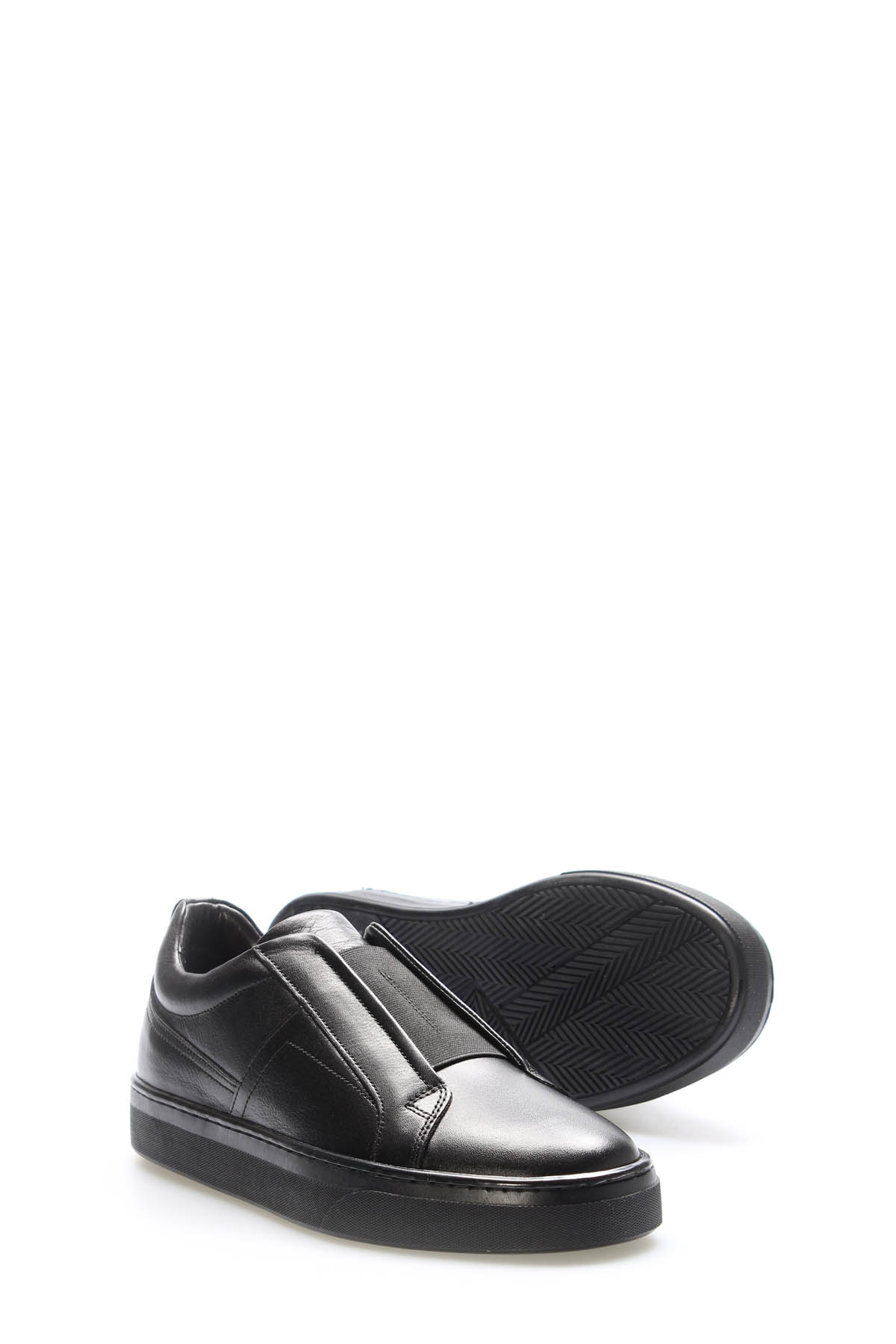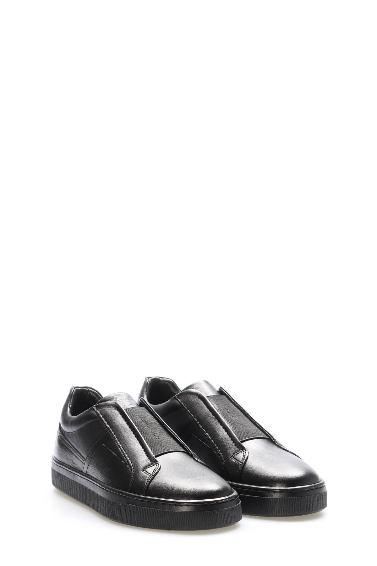 MirgeShoes Siyah Lastikli Erkek Casual Ayakkabı İçi Dışı Hakiki Deri MRG01949131442