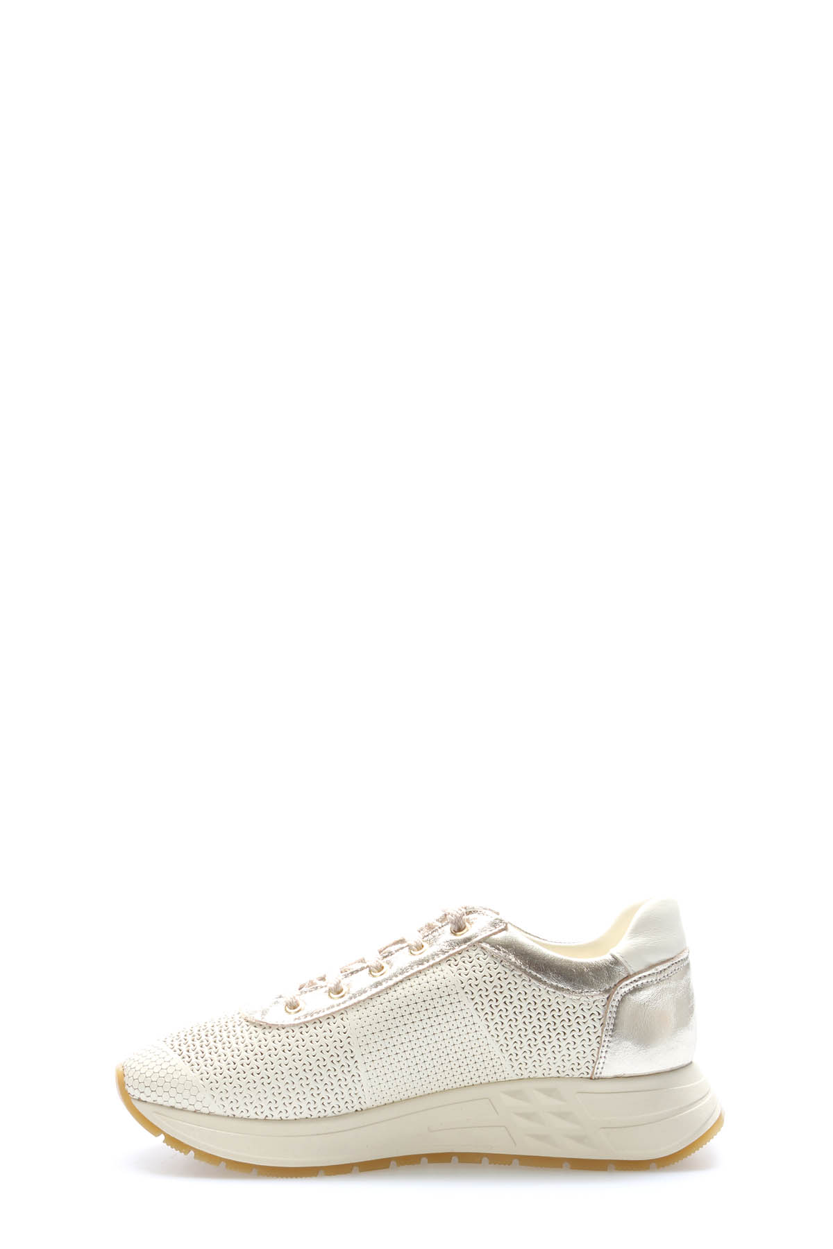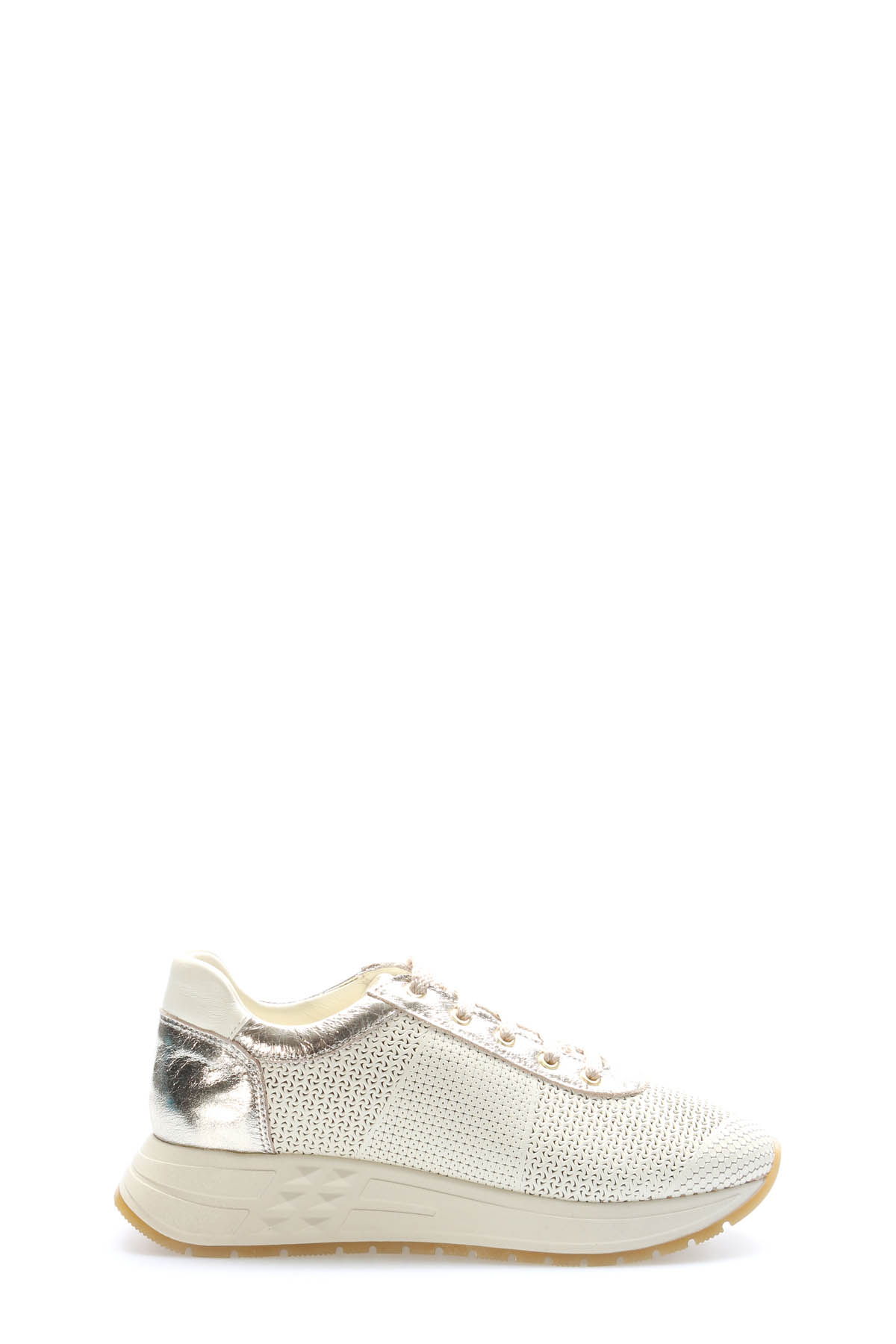 • MirgeShoes Bej-Altın Bağcıklı Kadın Casual Ayakkabı İçi Dışı Hakiki Deri MRG0114026185810