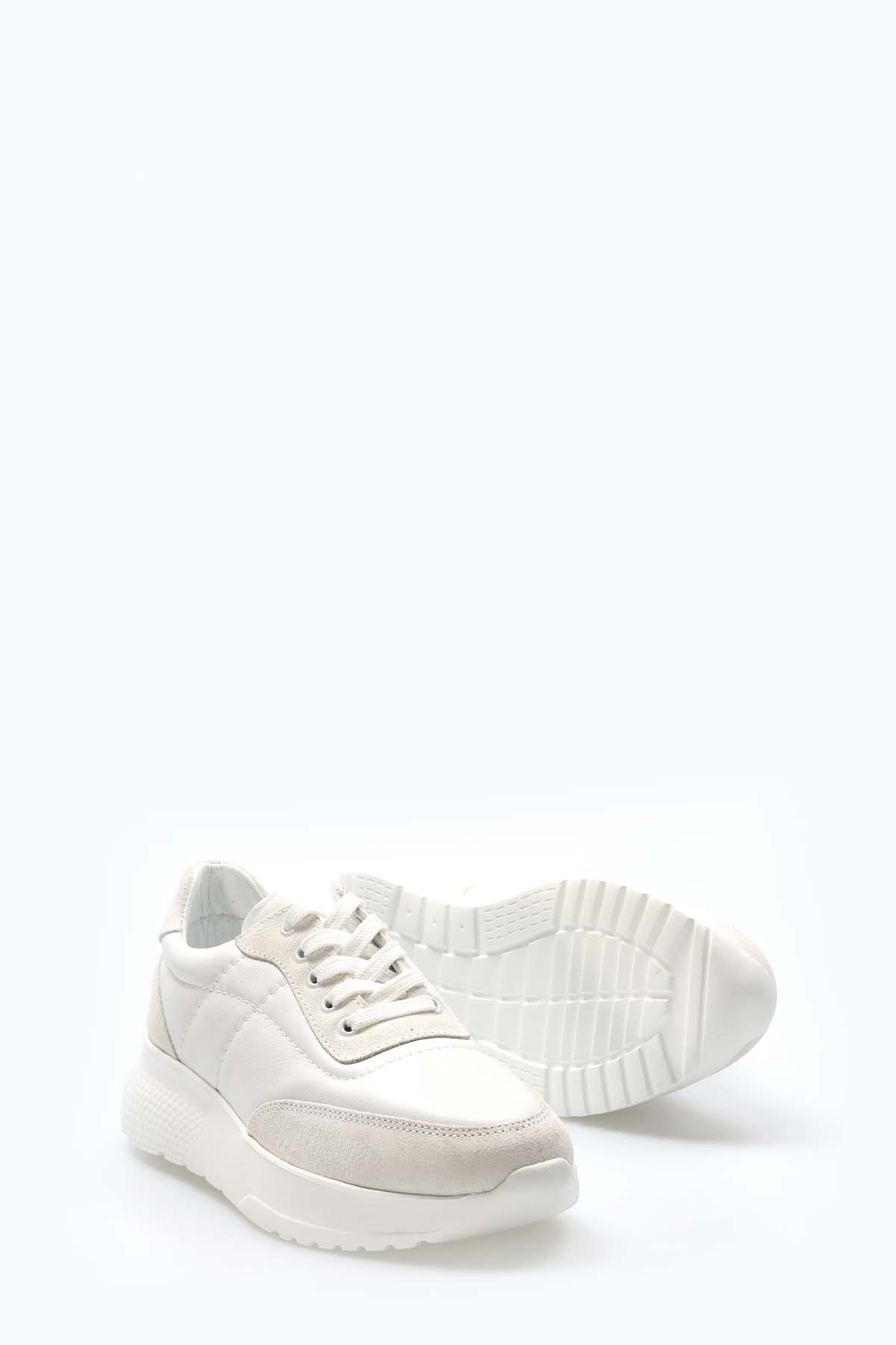 • MirgeShoes Beyaz Bağcıklı Kadın Casual Ayakkabı İçi Dışı Hakiki Deri MRG0111122611218