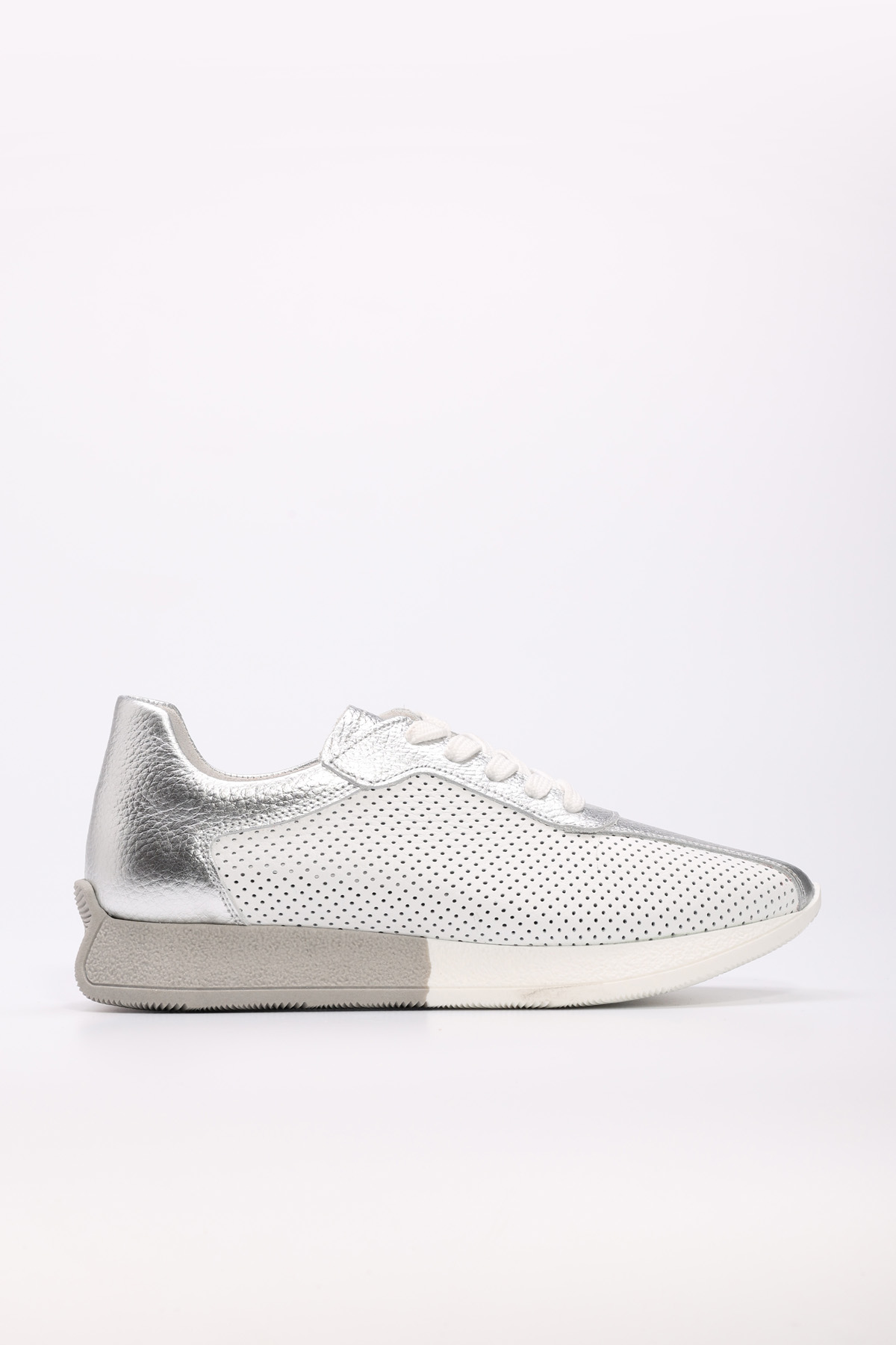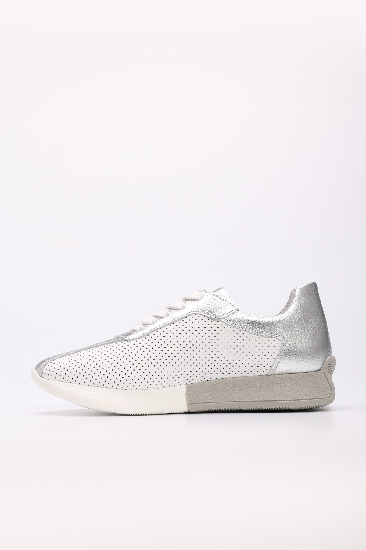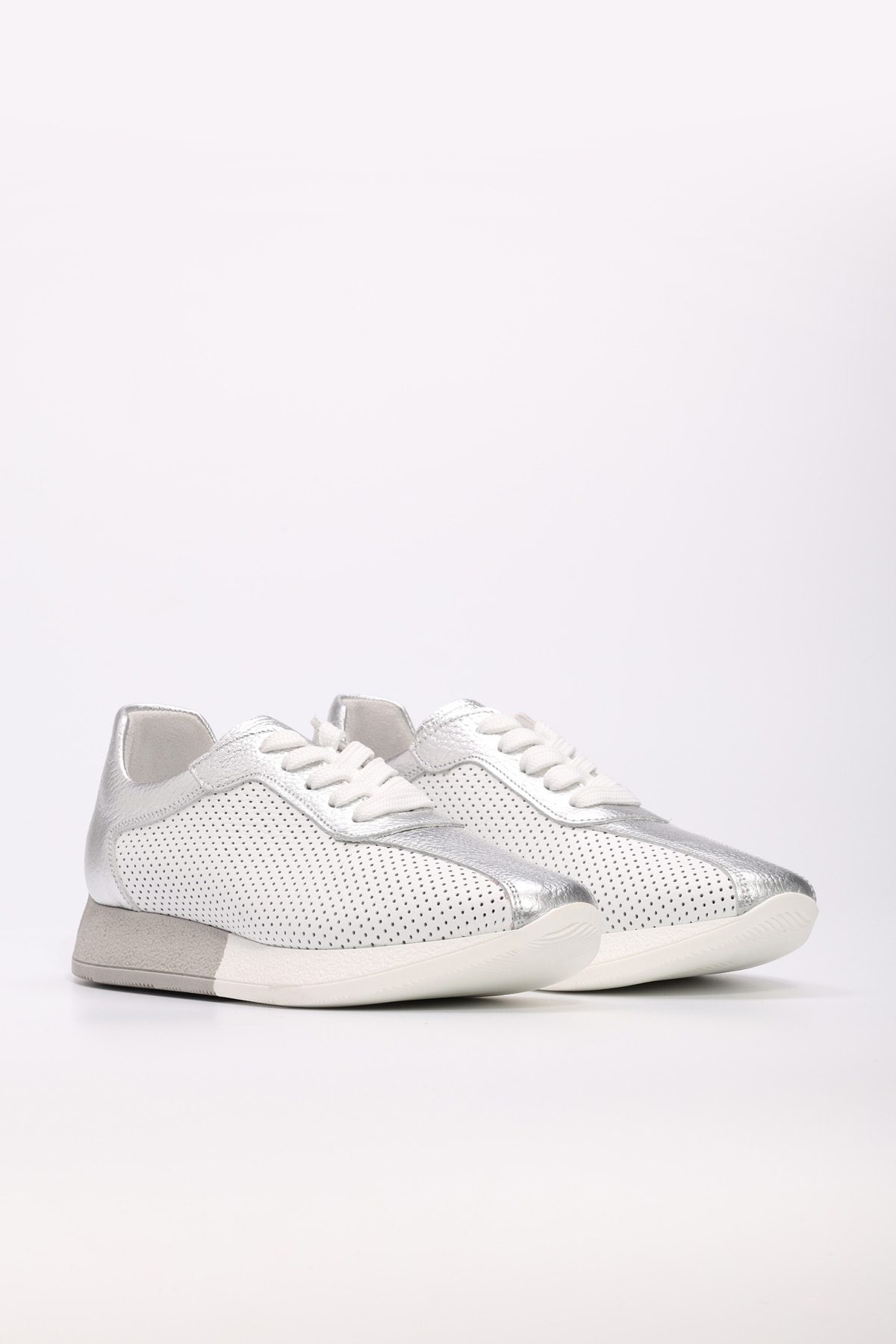 MirgeShoes Beyaz-Gümüş Bağcıklı Kadın Spor Ayakkabı İçi Dışı Hakiki Deri MRG014862611780