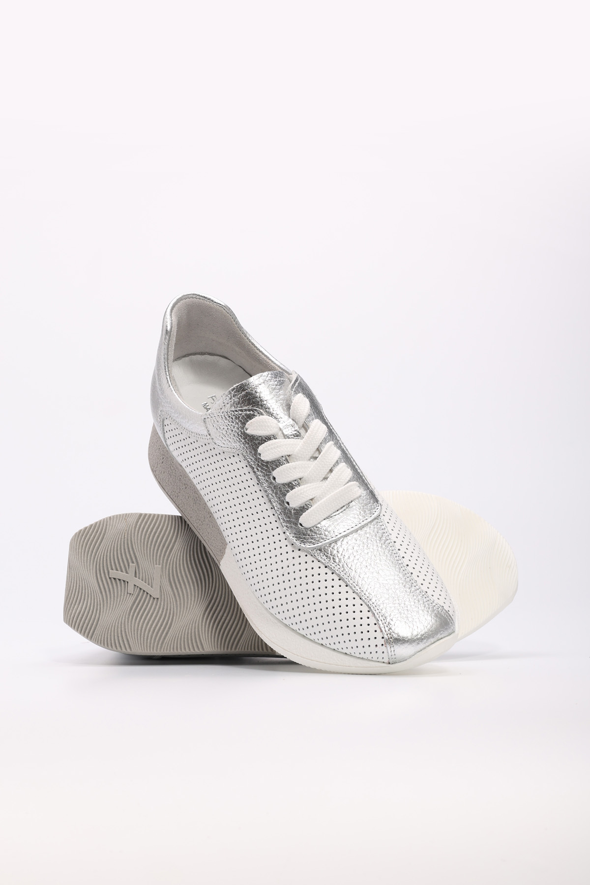 • MirgeShoes Beyaz-Gümüş Bağcıklı Kadın Spor Ayakkabı İçi Dışı Hakiki Deri MRG014862611780