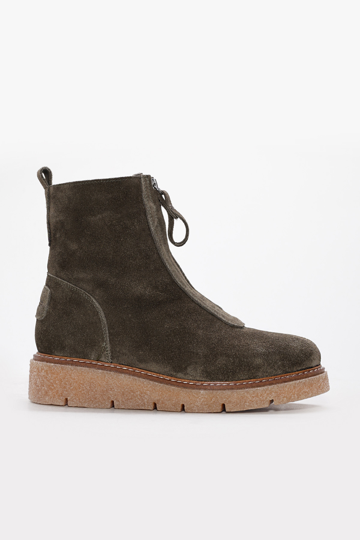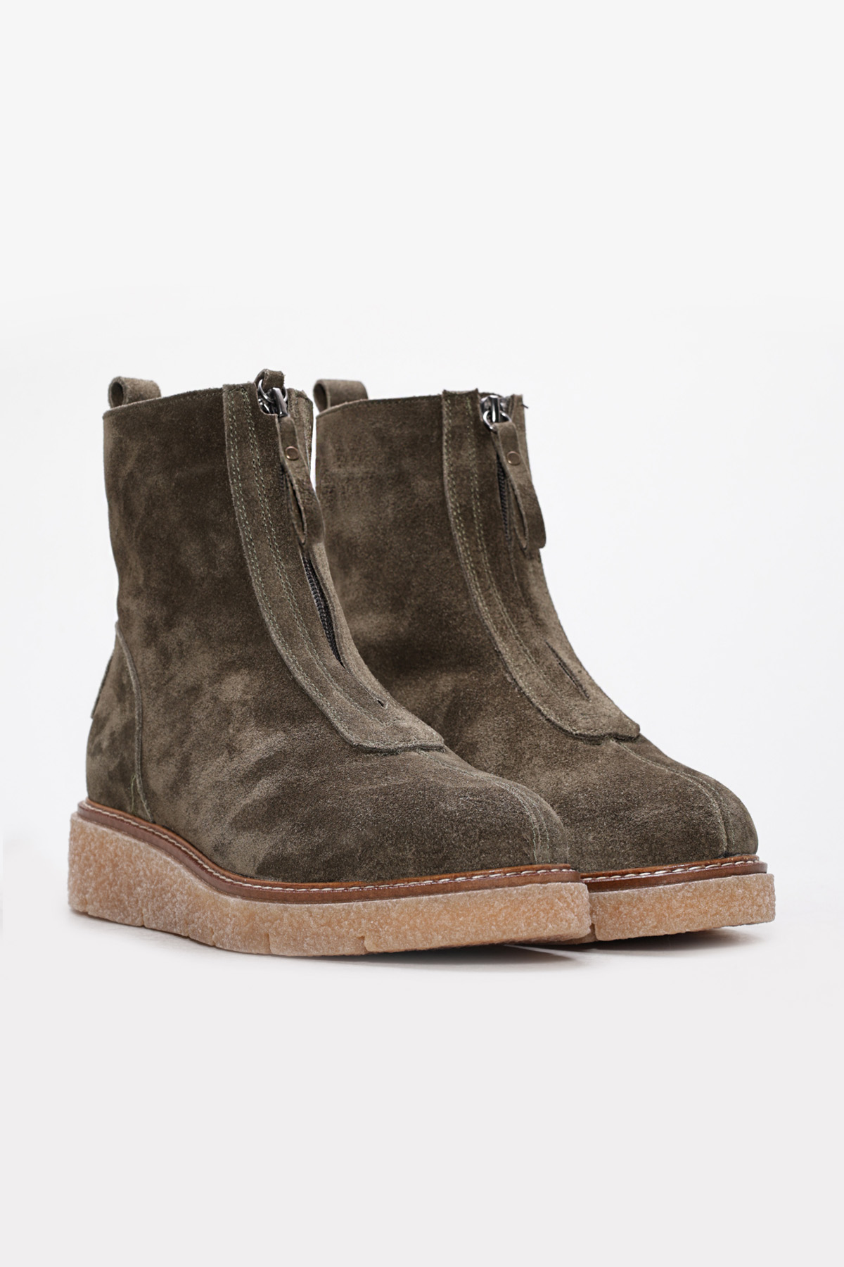 MirgeShoes İçi Kürklü Dışı Hakiki Süet Deri Haki Tarz Kadın Klasik Bot AH08657112612607