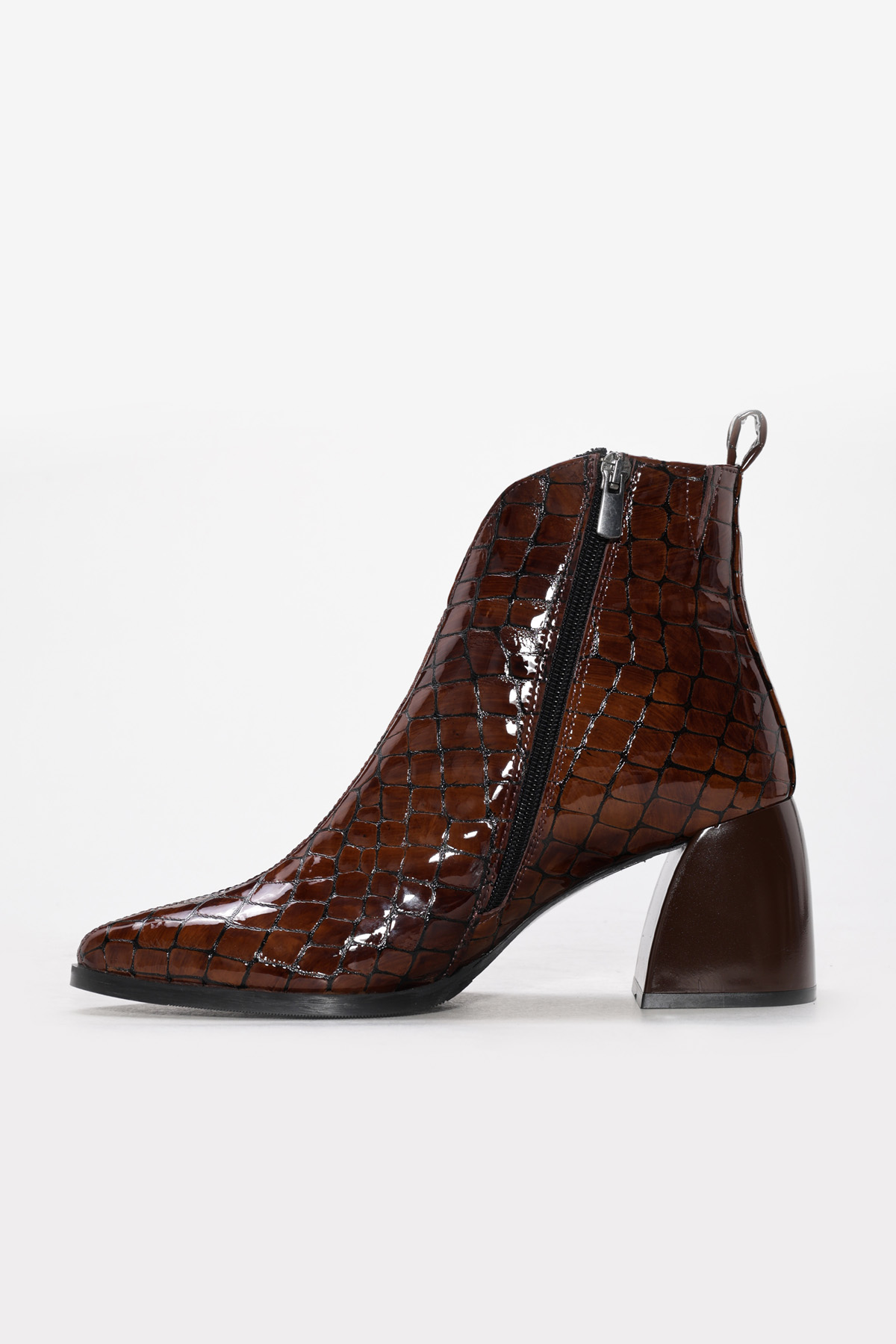 • MirgeShoes Kahve Fermuarlı Kadın Kalın Topuklu Bot İçi Kürklü Dışı Hakiki Deri MRG01194192611022