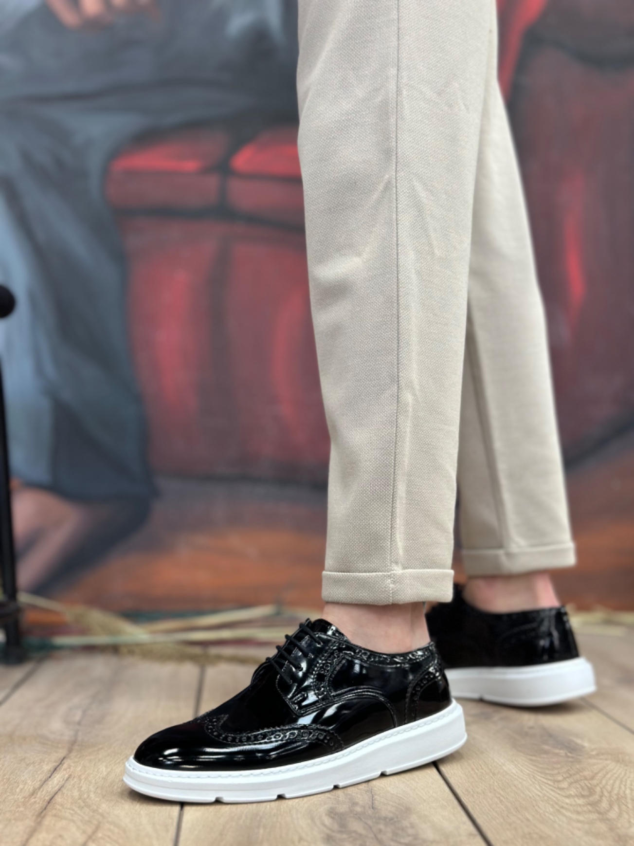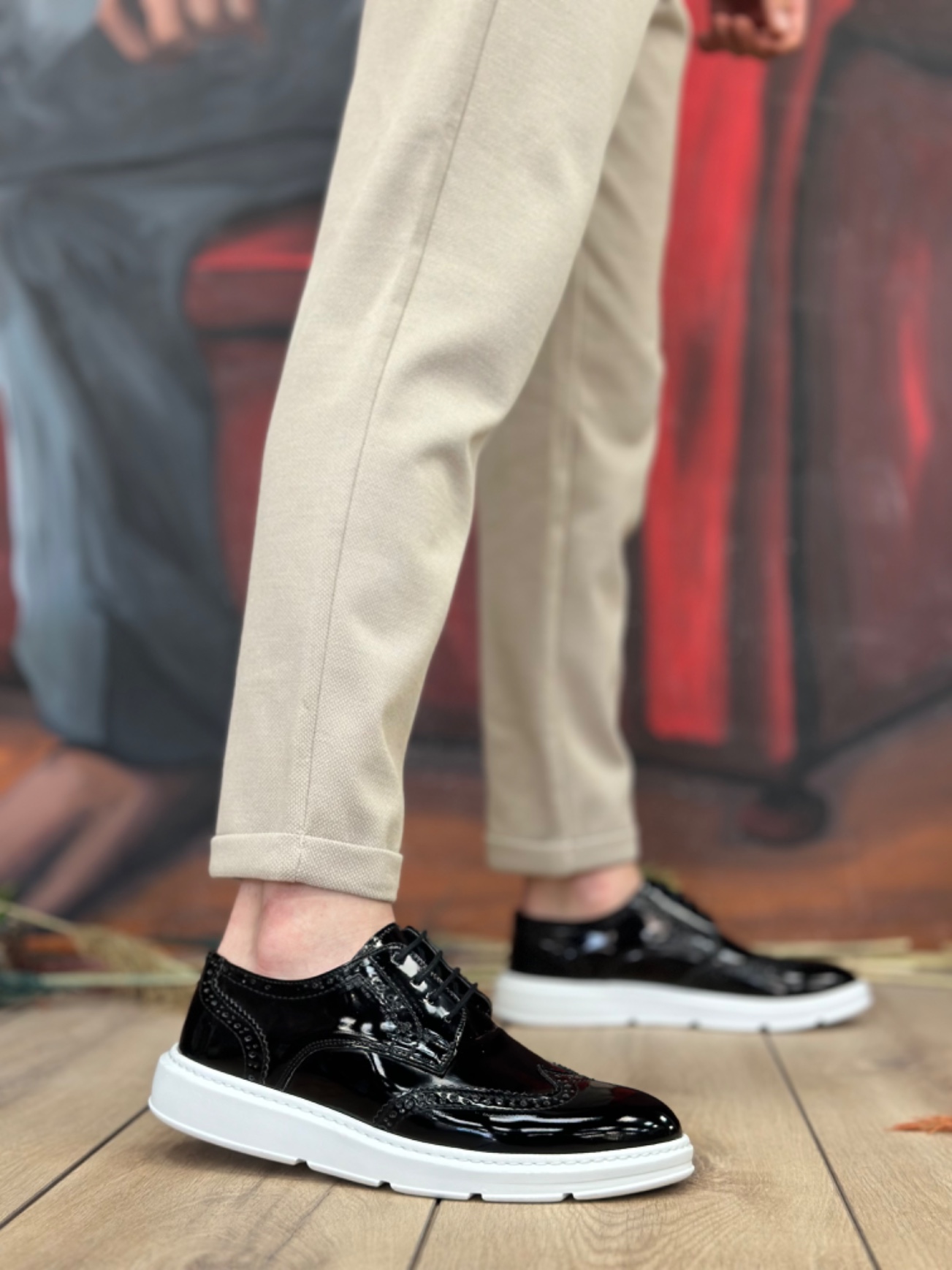 MirgeShoes Siyah Bağcıklı Klasik Rugan Casual Erkek Ayakkabı Yüksek BYZ Taban MRG01060002321