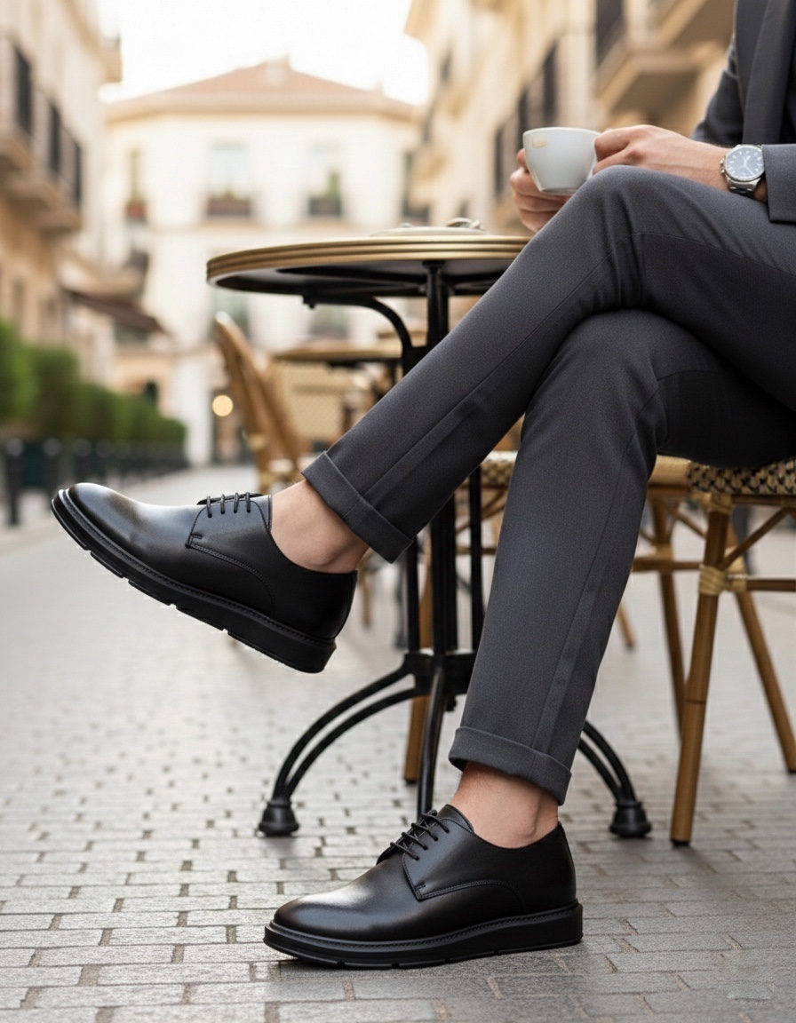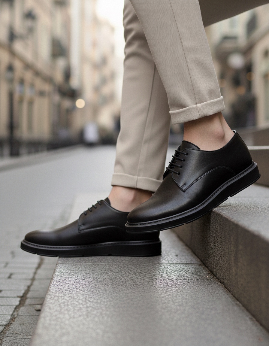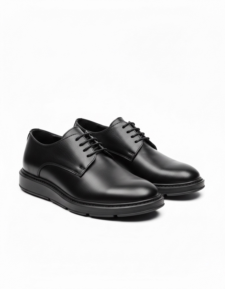 • MirgeShoes Siyah Bağcıklı Klasik Casual Erkek Ayakkabı Cilt Deri Yüksek SYH Taban MRG01060002321