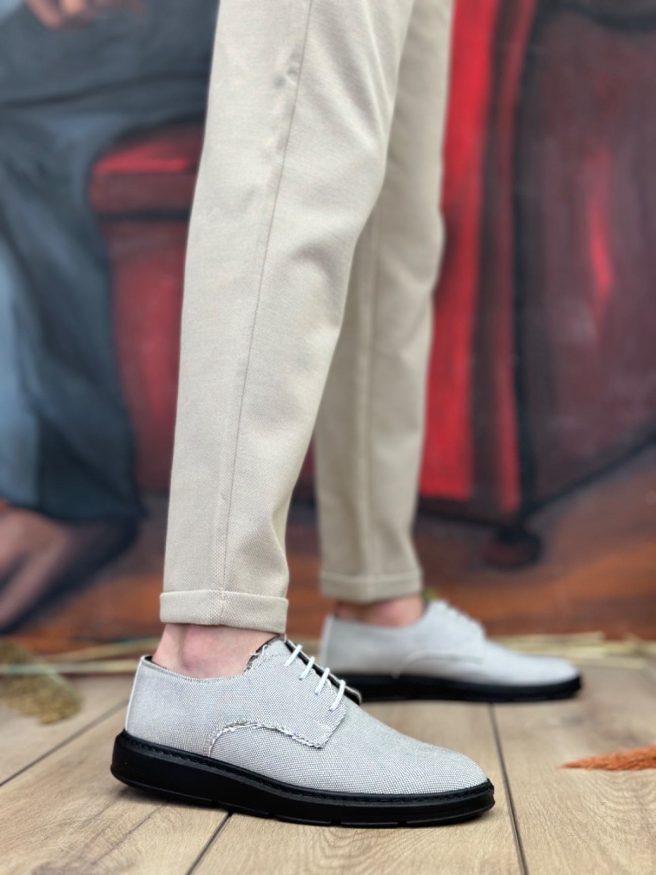 • MirgeShoes Gri Bağcıklı Klasik Casual Erkek Ayakkabı Keten Deri Yüksek SYH Taban MRG01060002321