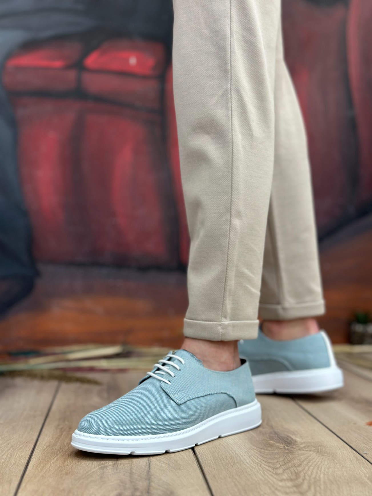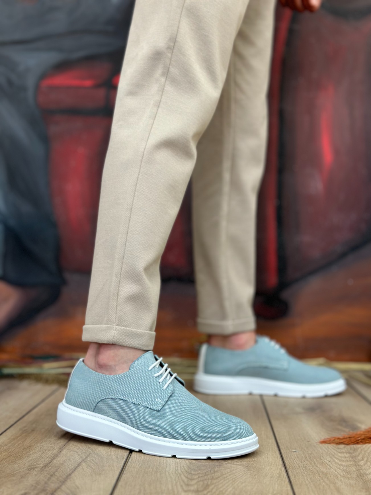 • MirgeShoes Turkuaz Bağcıklı Klasik Casual Erkek Ayakkabı Keten Deri Yüksek BYZ Taban MRG01060002321