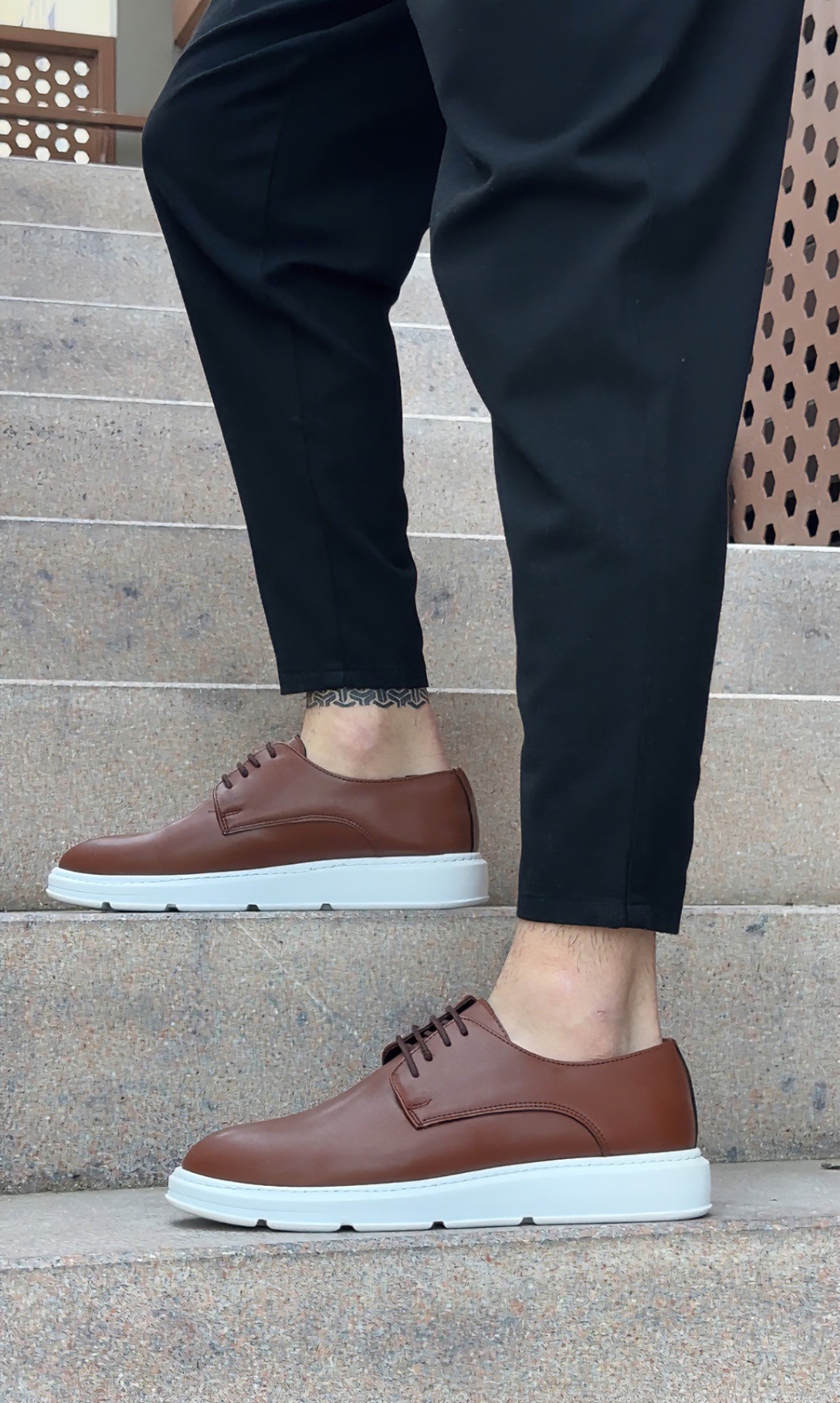 • MirgeShoes Taba Bağcıklı Klasik Casual Erkek Ayakkabı Cilt Deri Yüksek BYZ Taban MRG01060002321