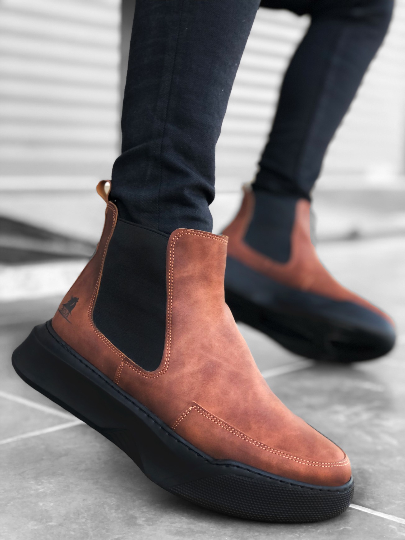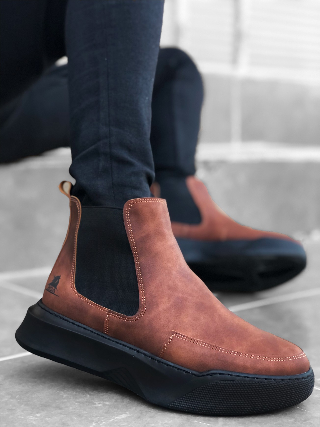 MirgeShoes Koyu Taba Bağcıksız Erkek Spor Bot Süet Deri Yüksek SYH Taban MRG010602468