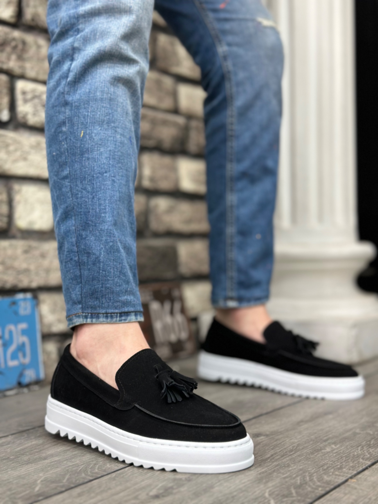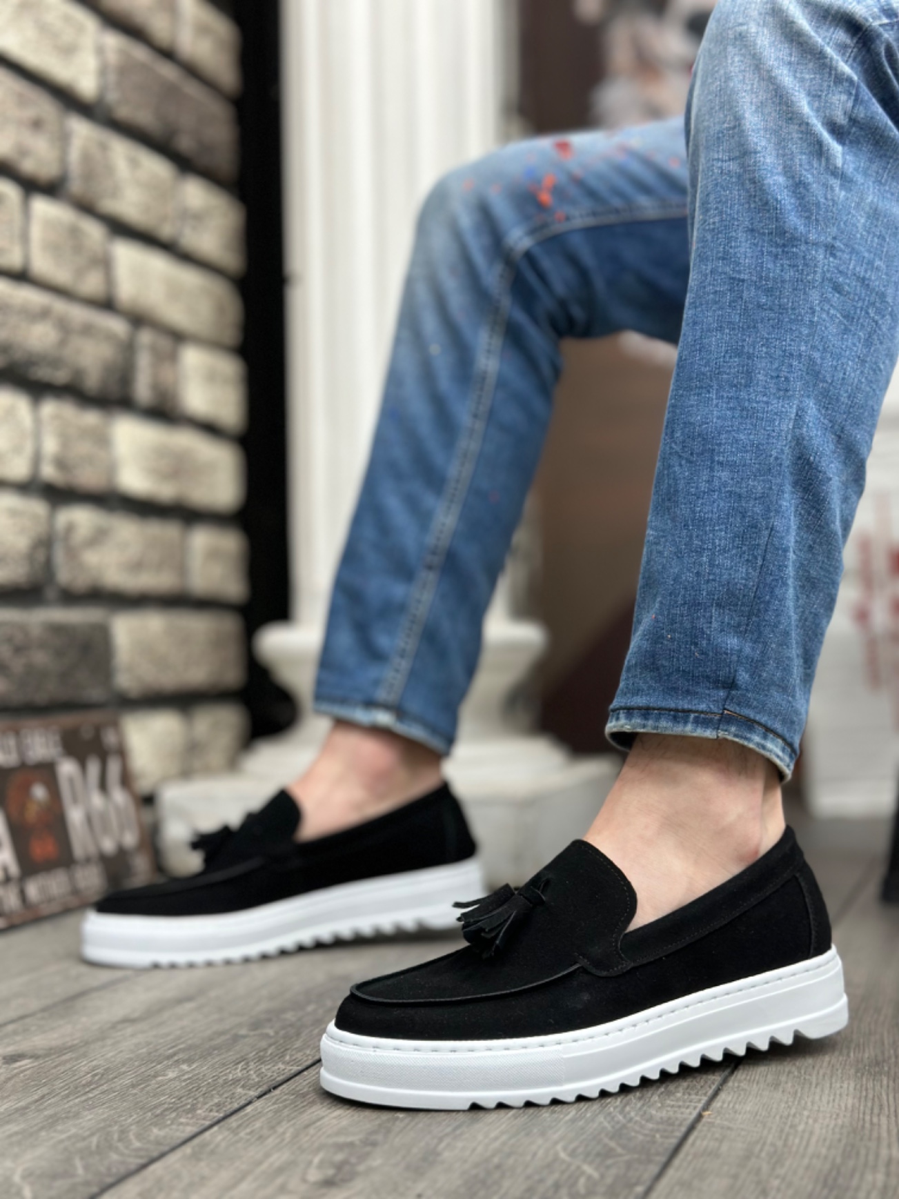 MirgeShoes Siyah Bağcıksız Püsküllü Erkek Casual Ayakkabı Süet Yüksek BYZ Taban MRG010602472