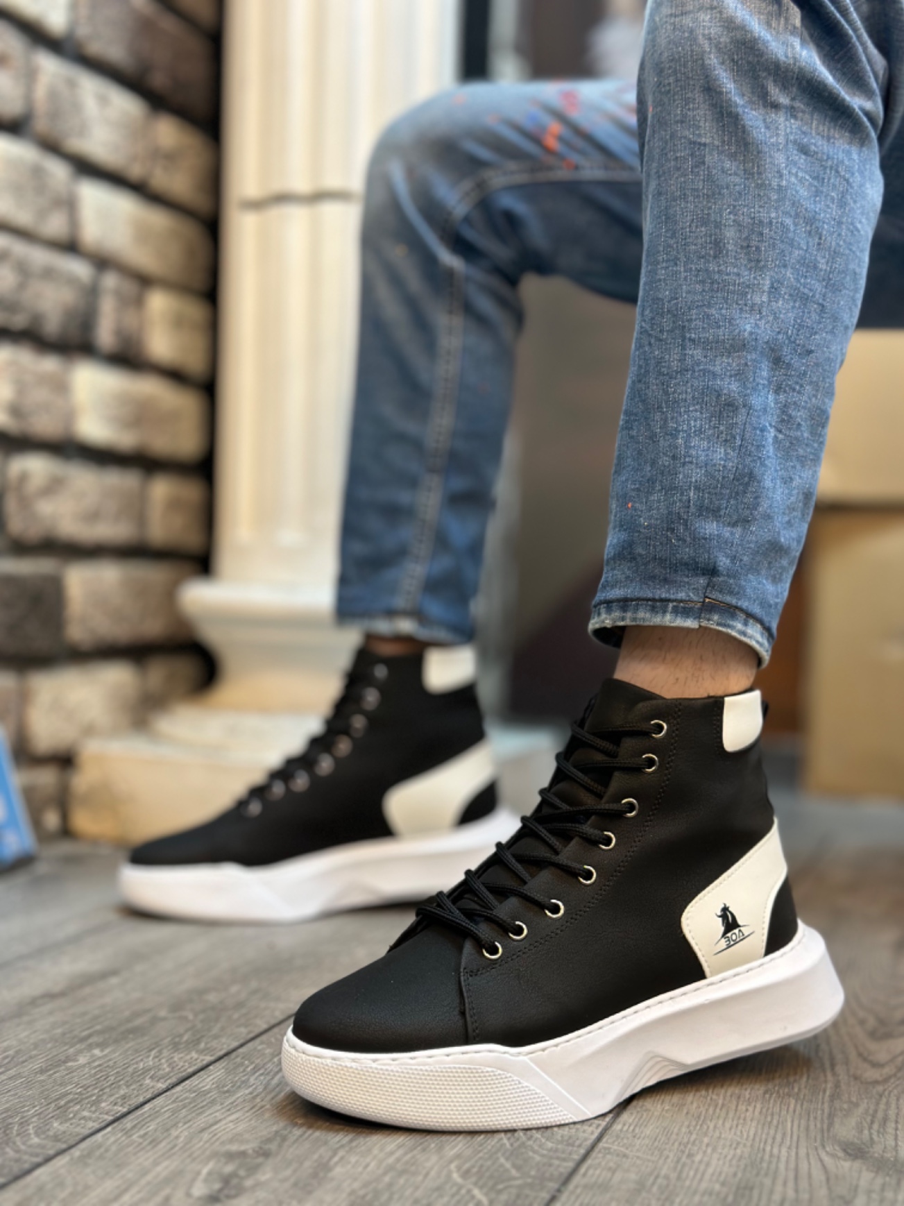 • MirgeShoes Siyah Bağcıklı Erkek Spor Bot Vinnex Yüksek Kalın BYZ Taban MRG010602473