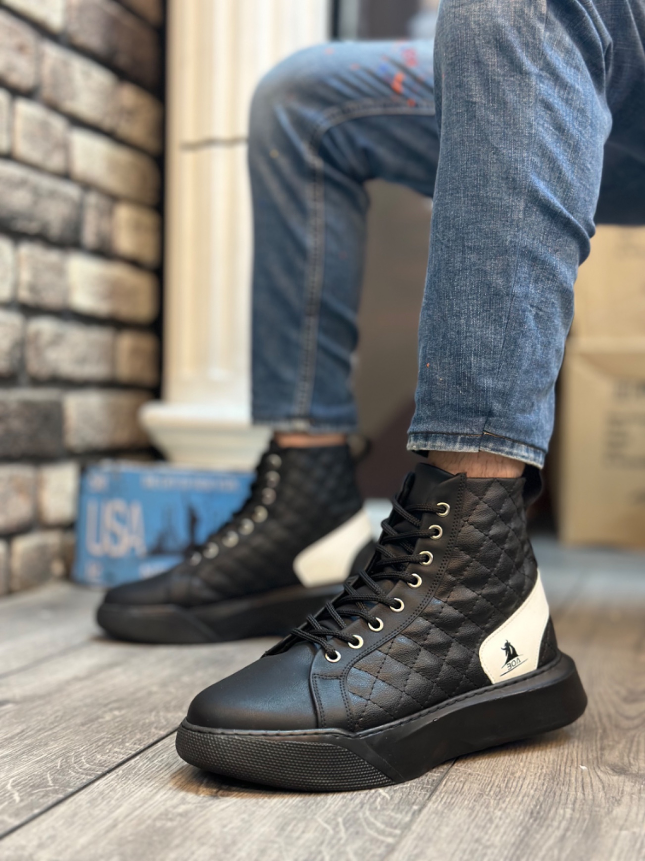 MirgeShoes Siyah-Beyaz Bağcıklı Erkek Spor Bilek Bot Kapitone Yüksek SYH Taban MRG010602477