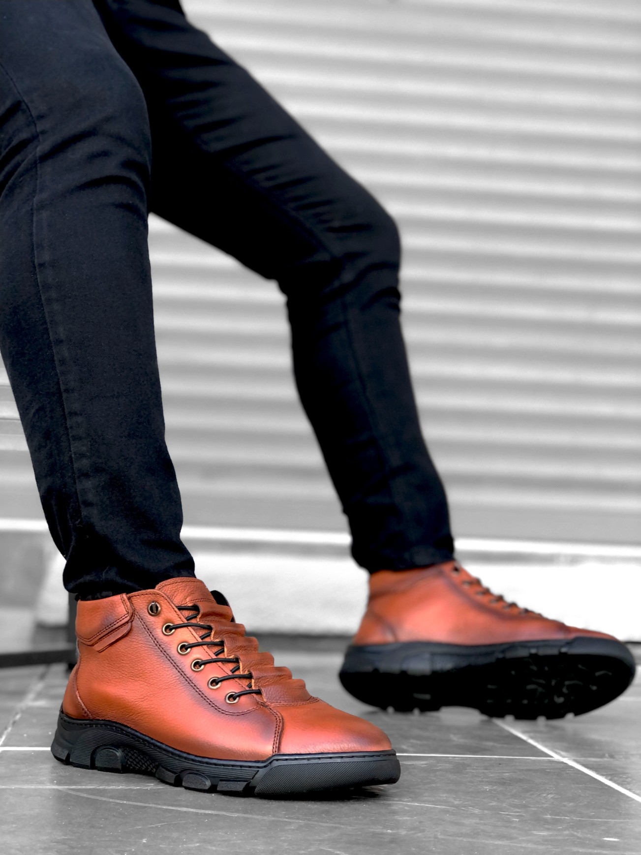 • MirgeShoes Taba Gizli Bağcıklı Erkek Yarım Bilek Bot Hakiki Deri Kalın SYH Taban MRG010602531