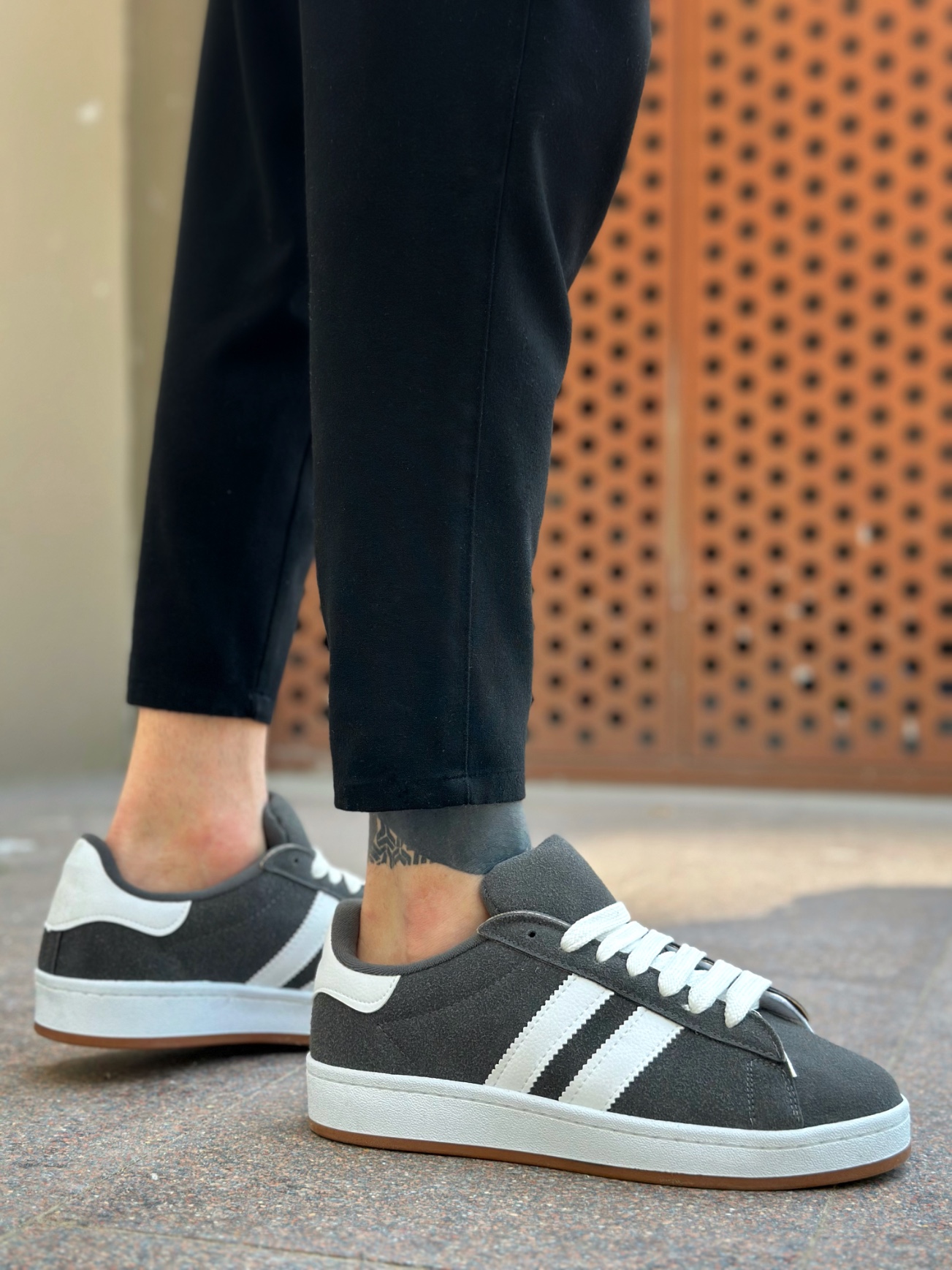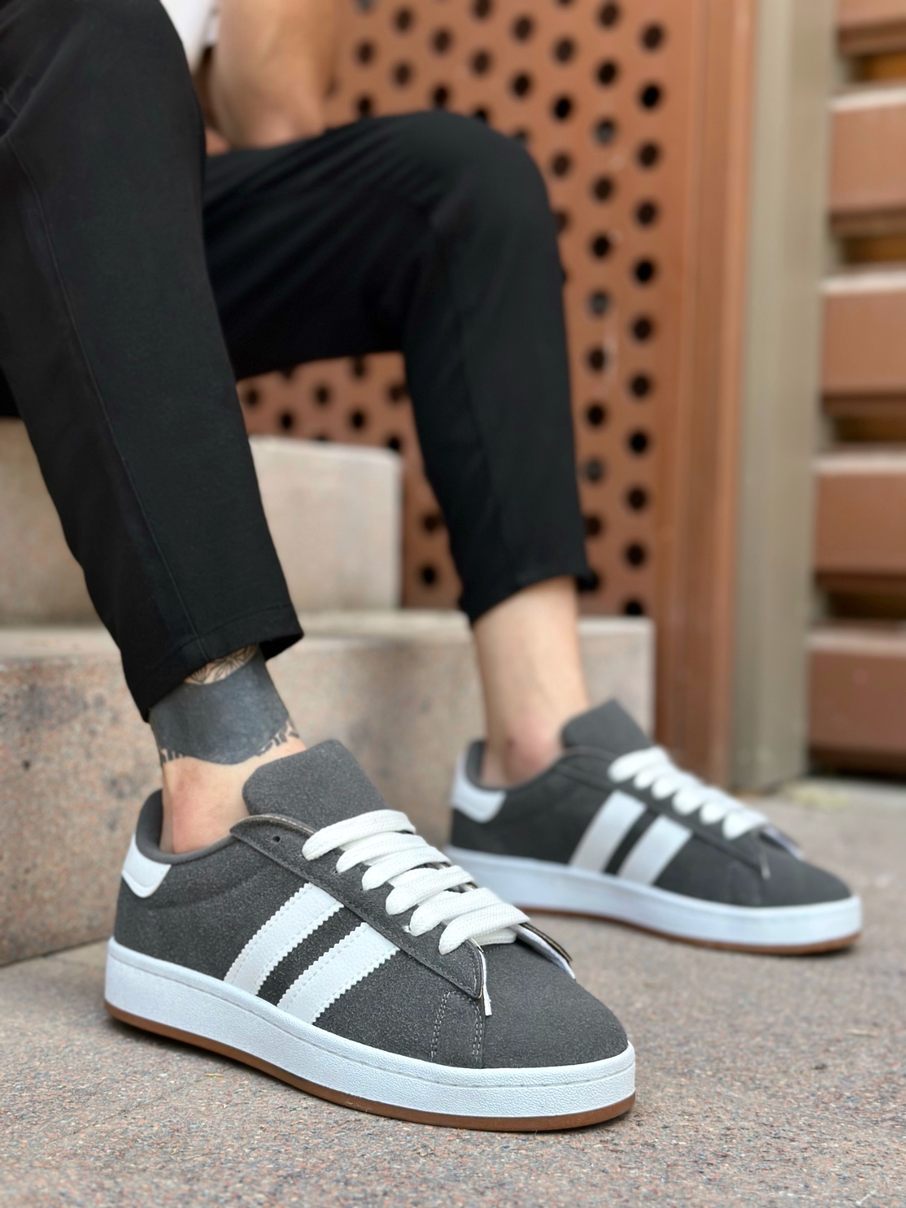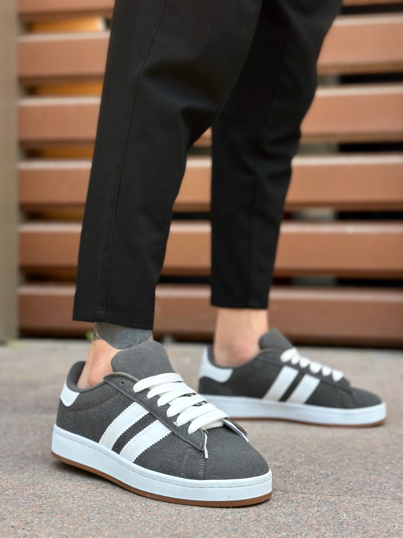 MirgeShoes Füme Bağcıklı Erkek Günlük Ayakkabı İki Çizgili Desen Kalın BYZ Taban MRG010602553
