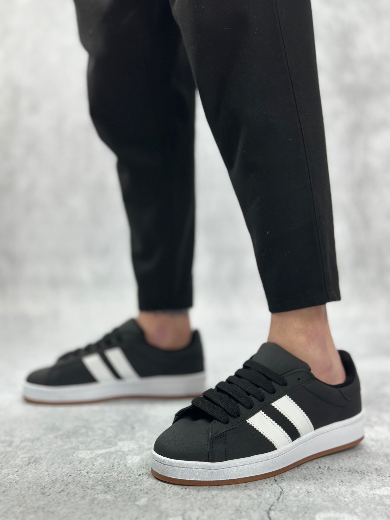 MirgeShoes Siyah Bağcıklı Erkek Günlük Ayakkabı İki Çizgili Desen Kalın BYZ Taban MRG010602553