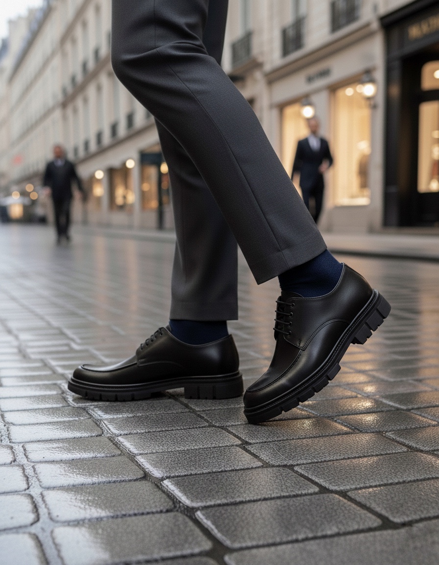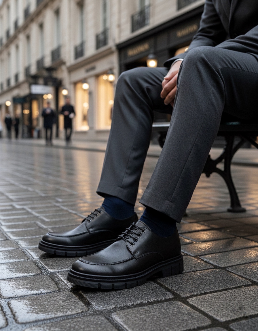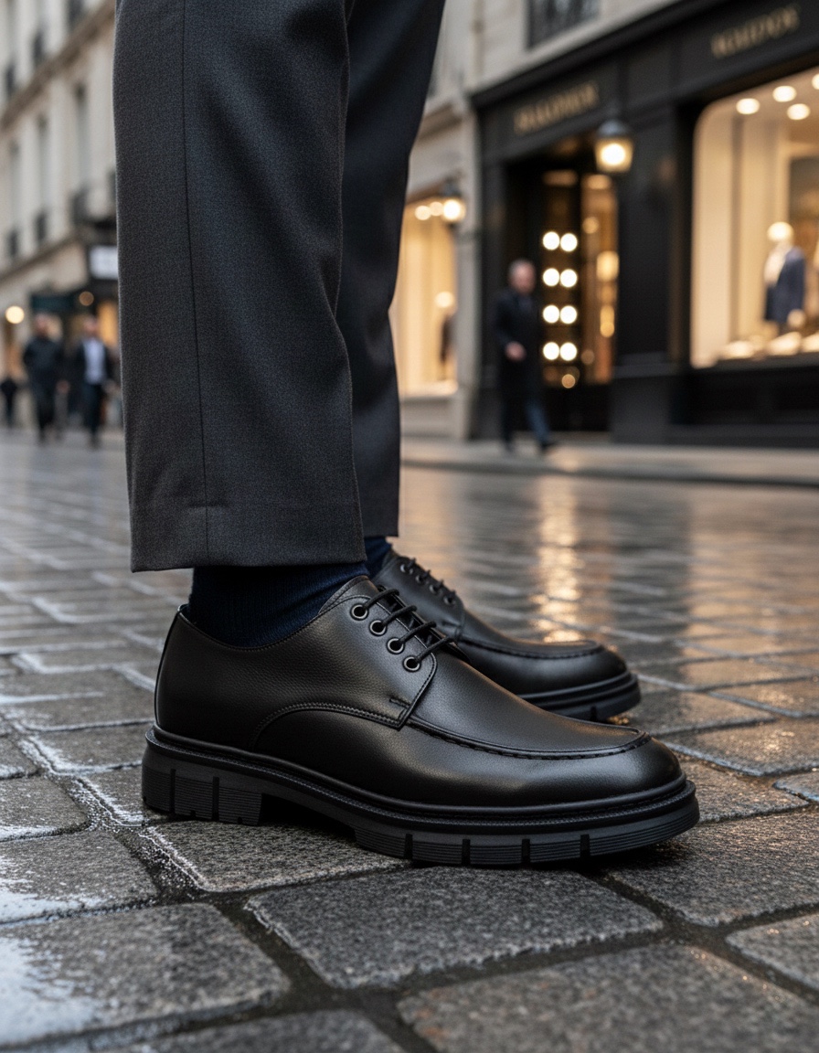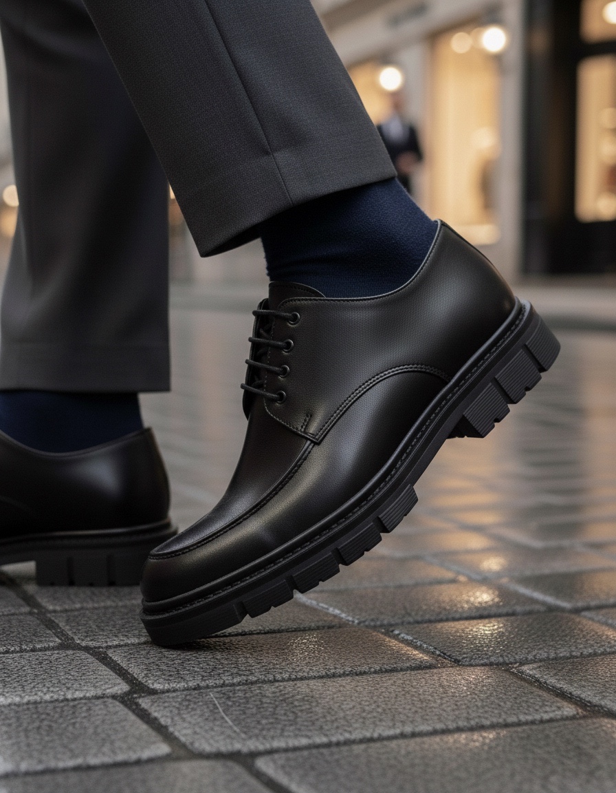 MirgeShoes Siyah Bağcıklı Erkek Klasik Casual Ayakkabı Cilt Yüksek SYH Taban MRG010602555