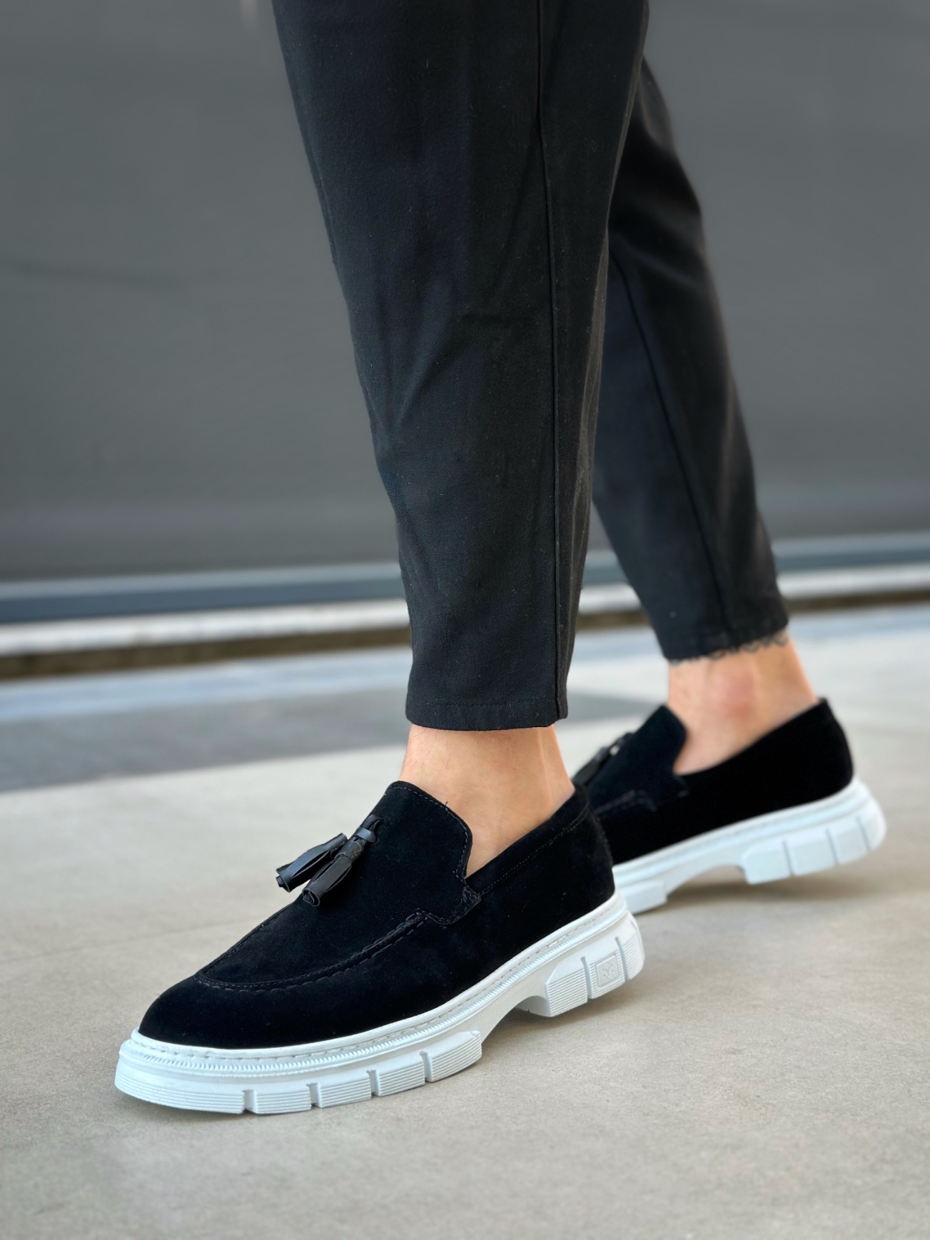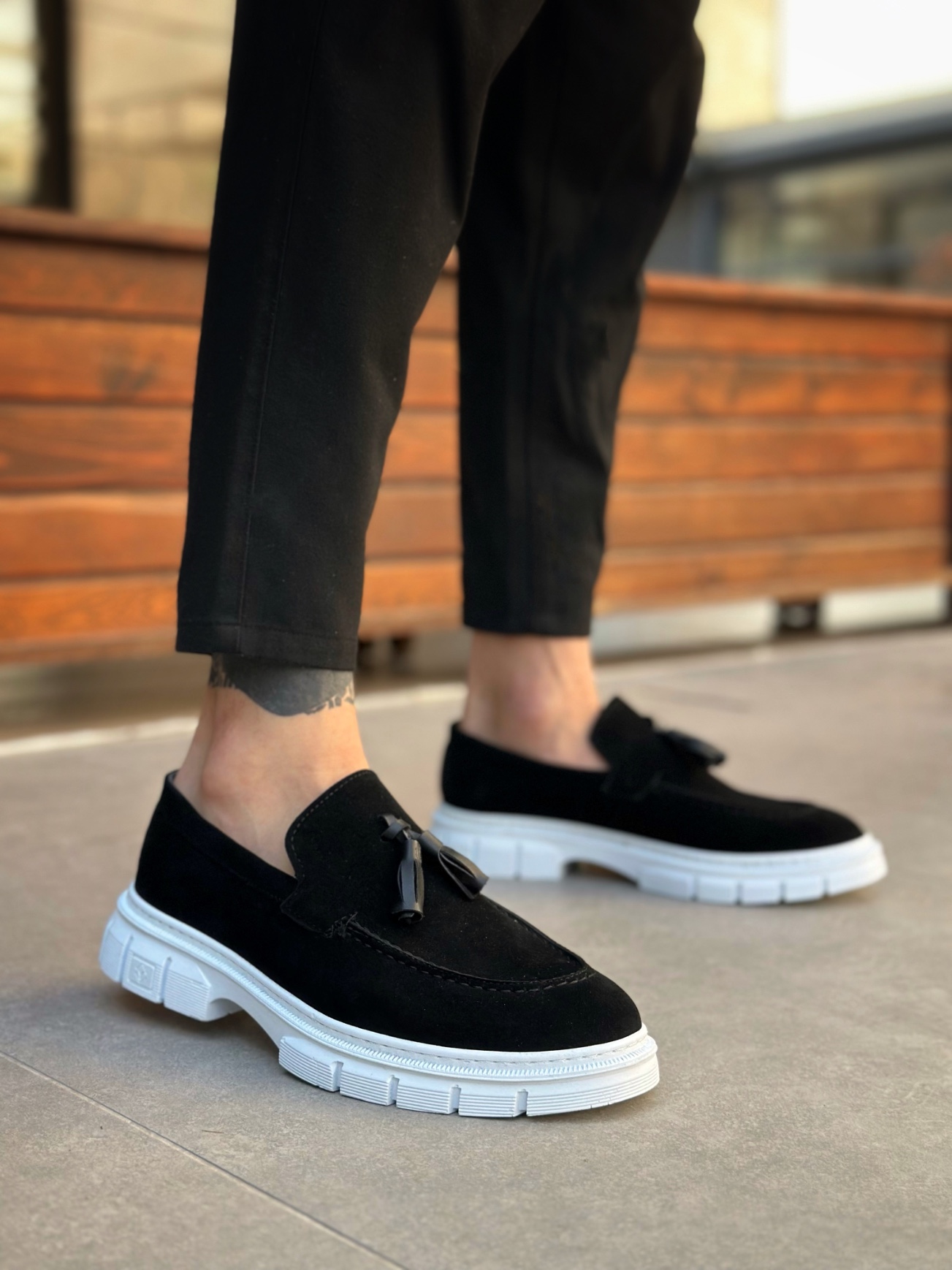 • MirgeShoes Siyah Püsküllü Erkek Klasik Ayakkabı Parlak Süet Kalın BYZ Taban MRG010602558