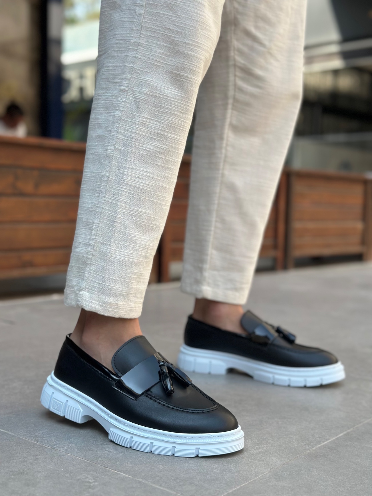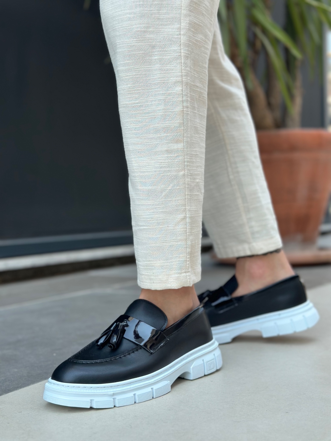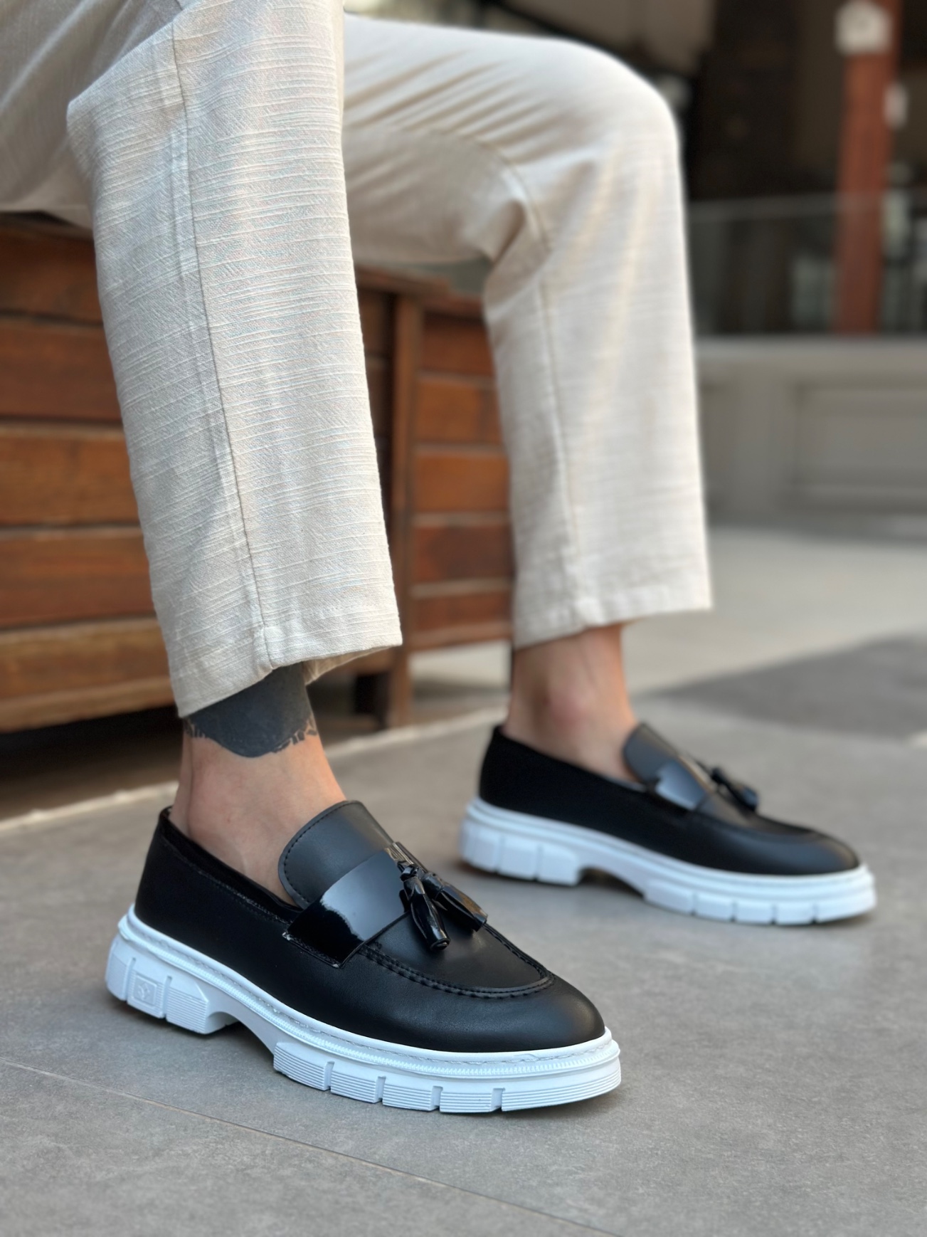 MirgeShoes Siyah Püsküllü Erkek Klasik Ayakkabı Parlak Cilt Kalın BYZ Taban MRG010602558