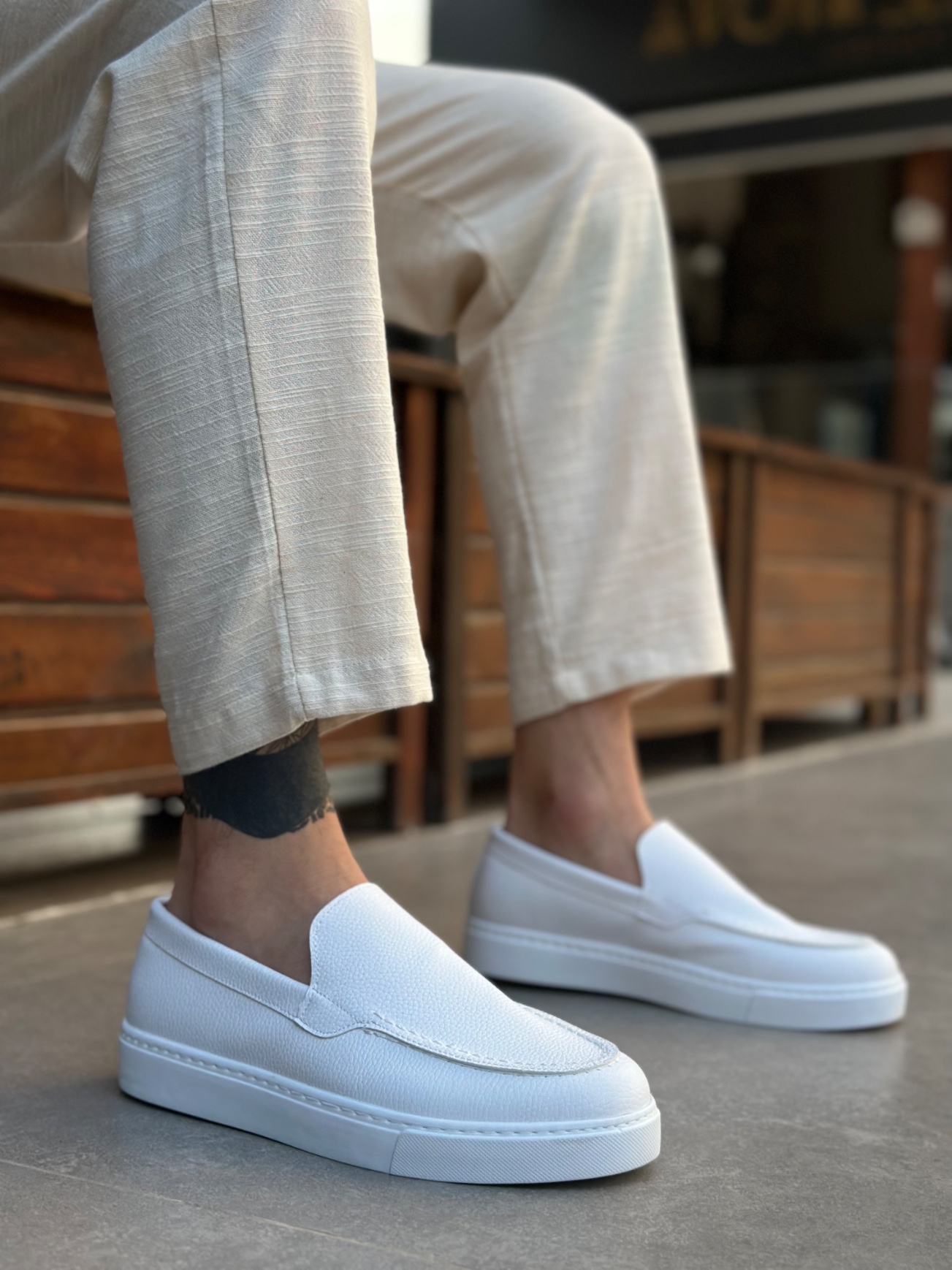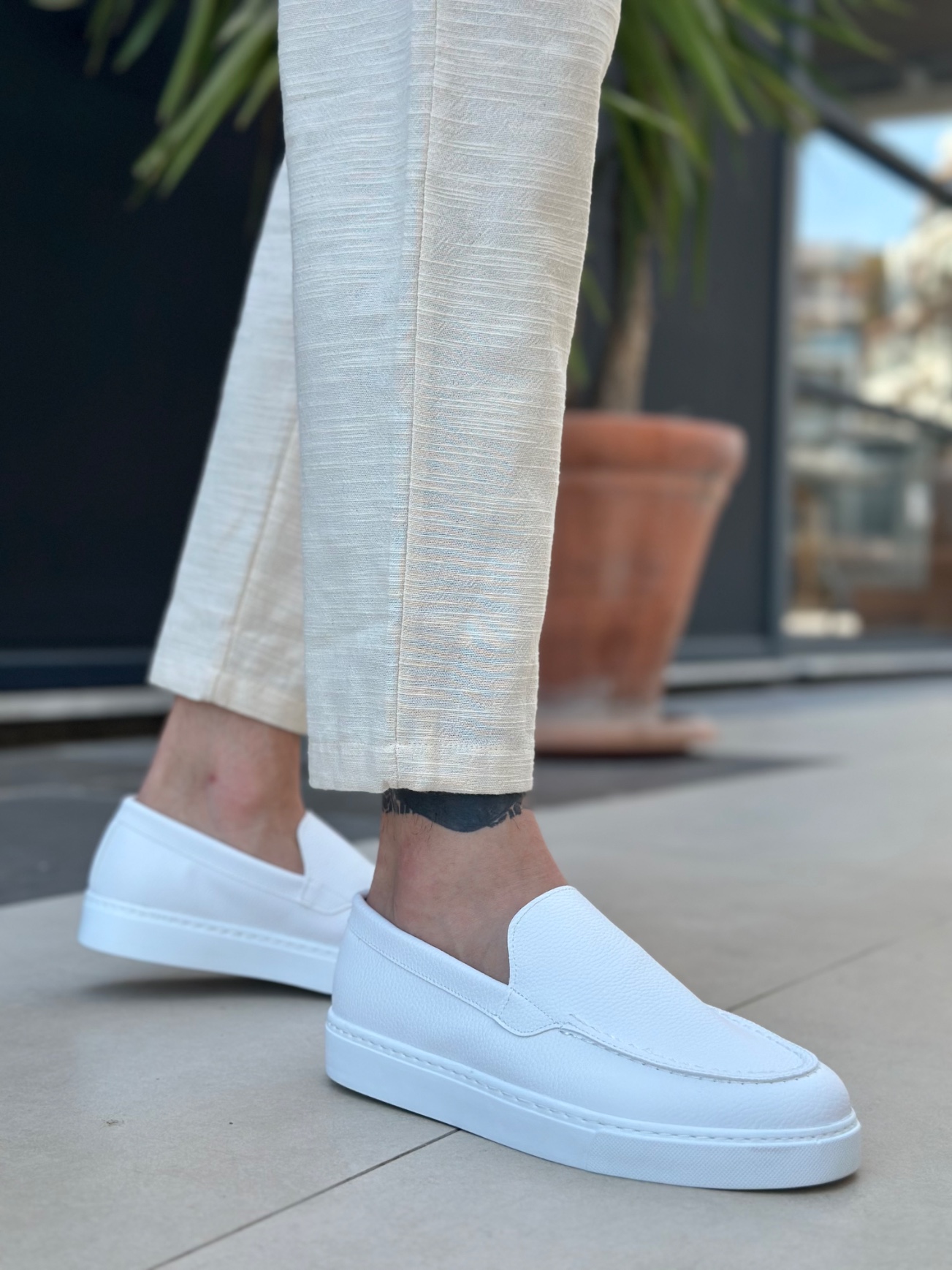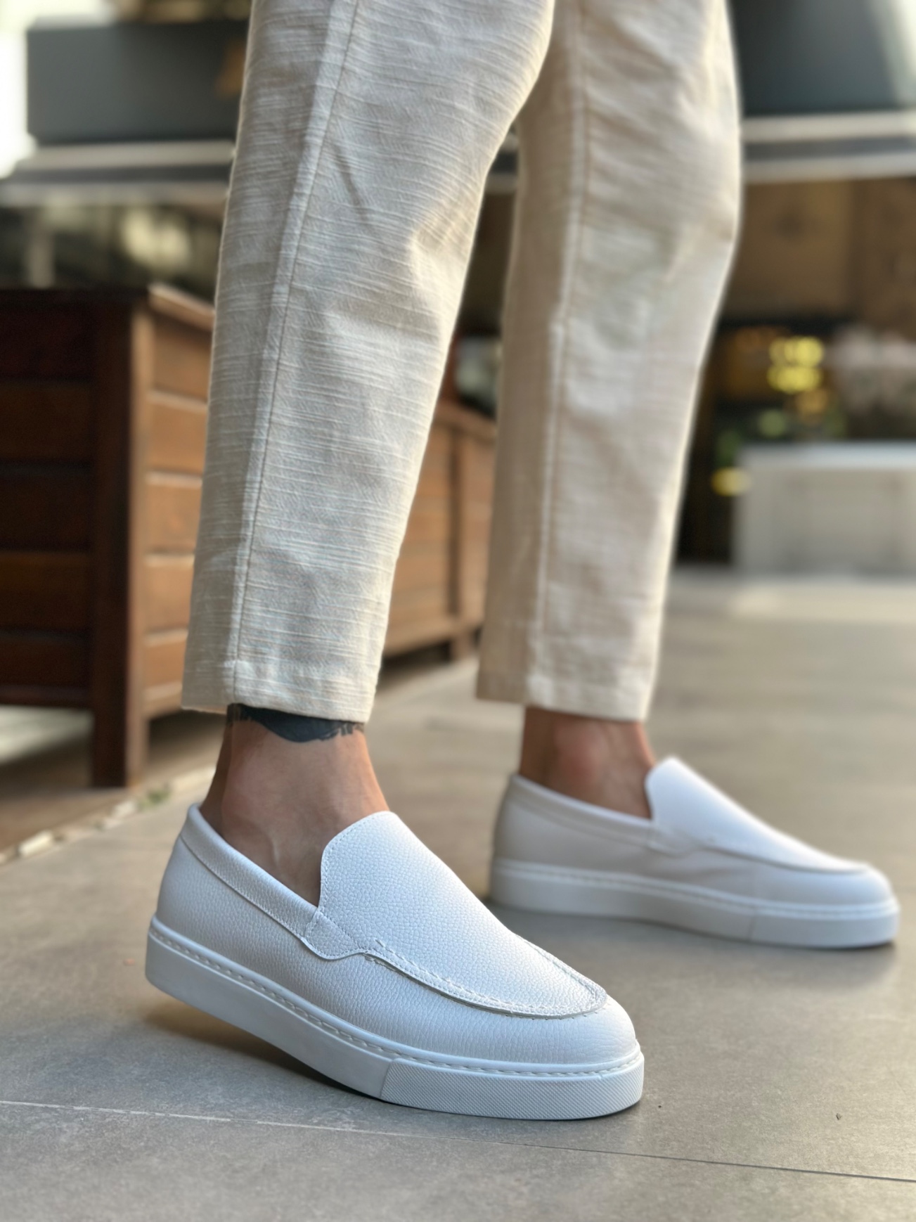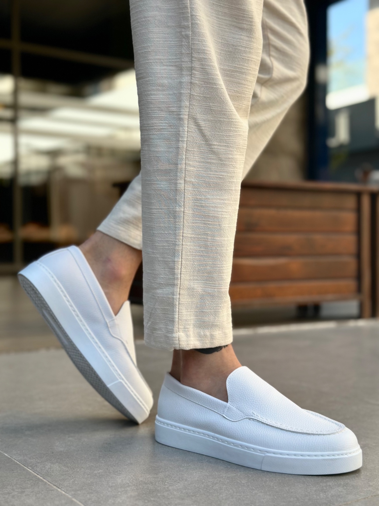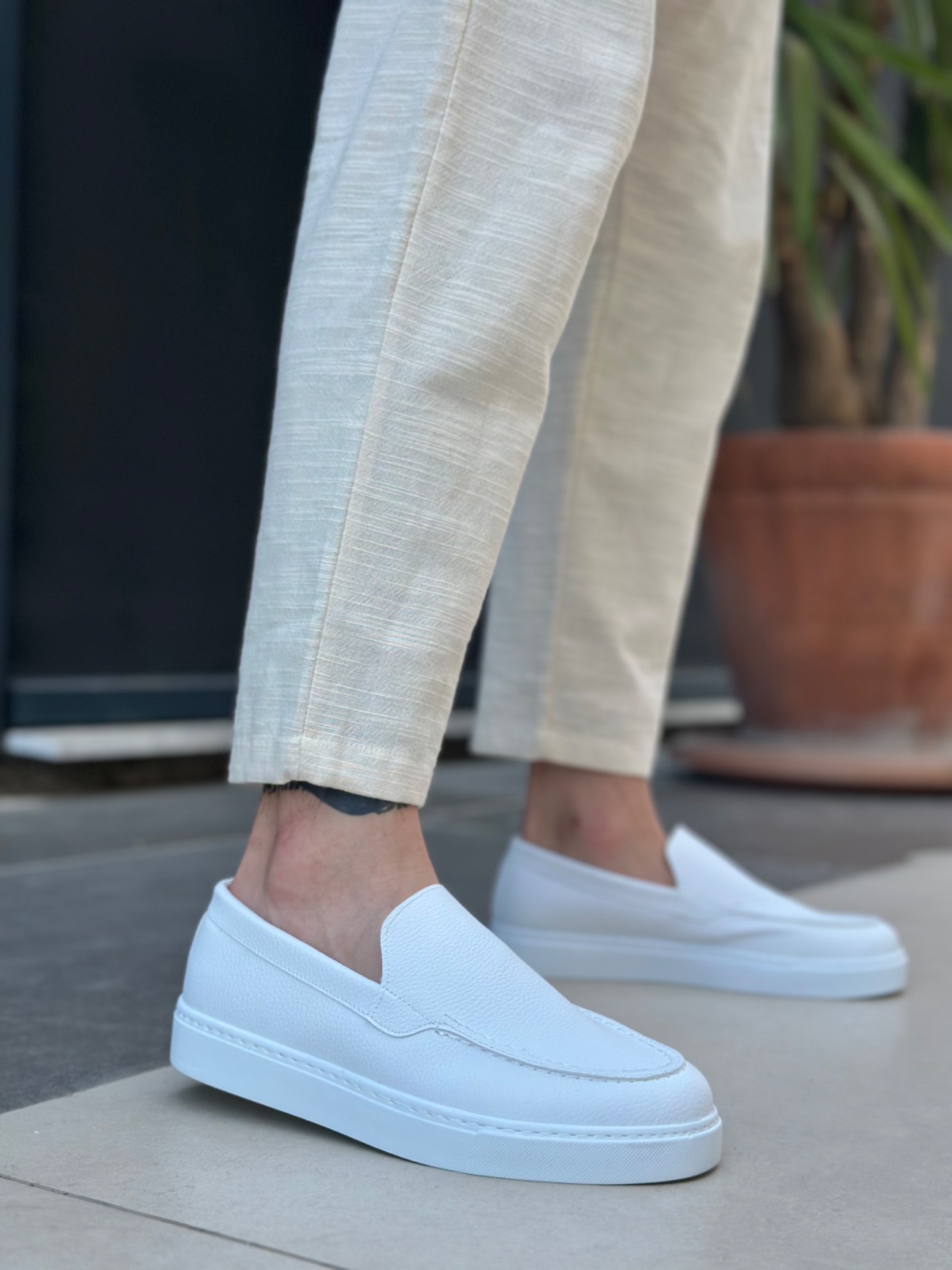 • MirgeShoes Beyaz Bağcıksız Erkek Loafer Ayakkabı Kalın BYZ Taban MRG010602559
